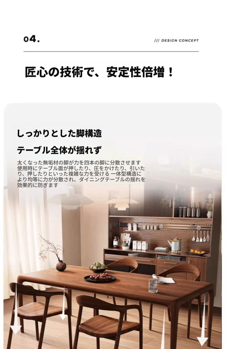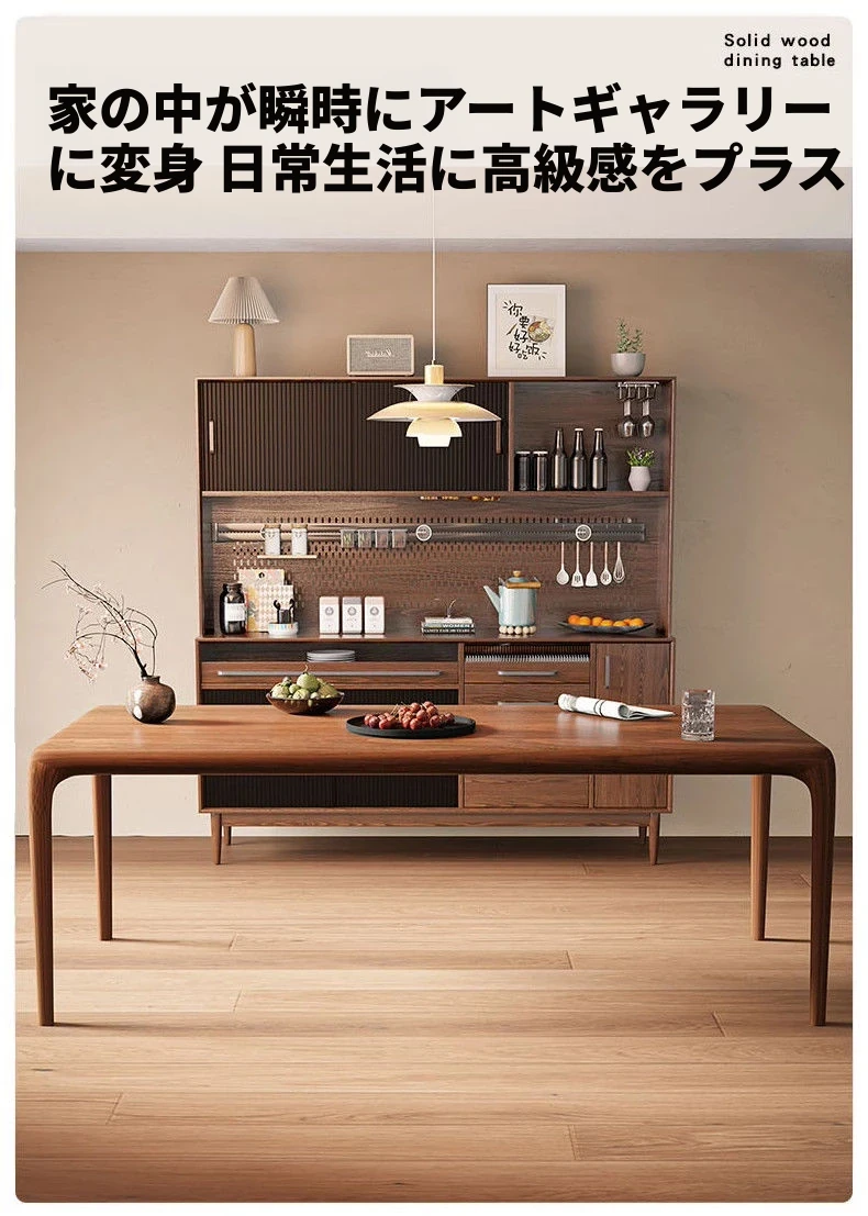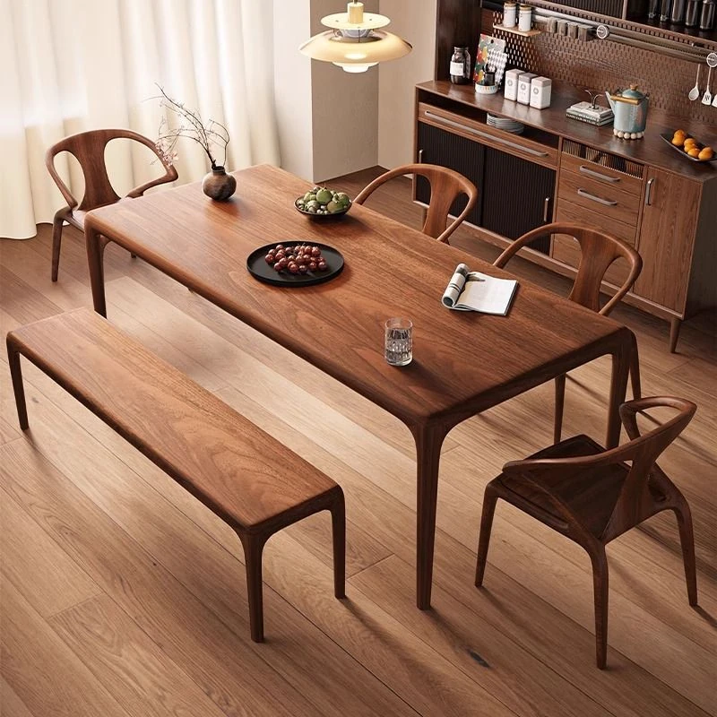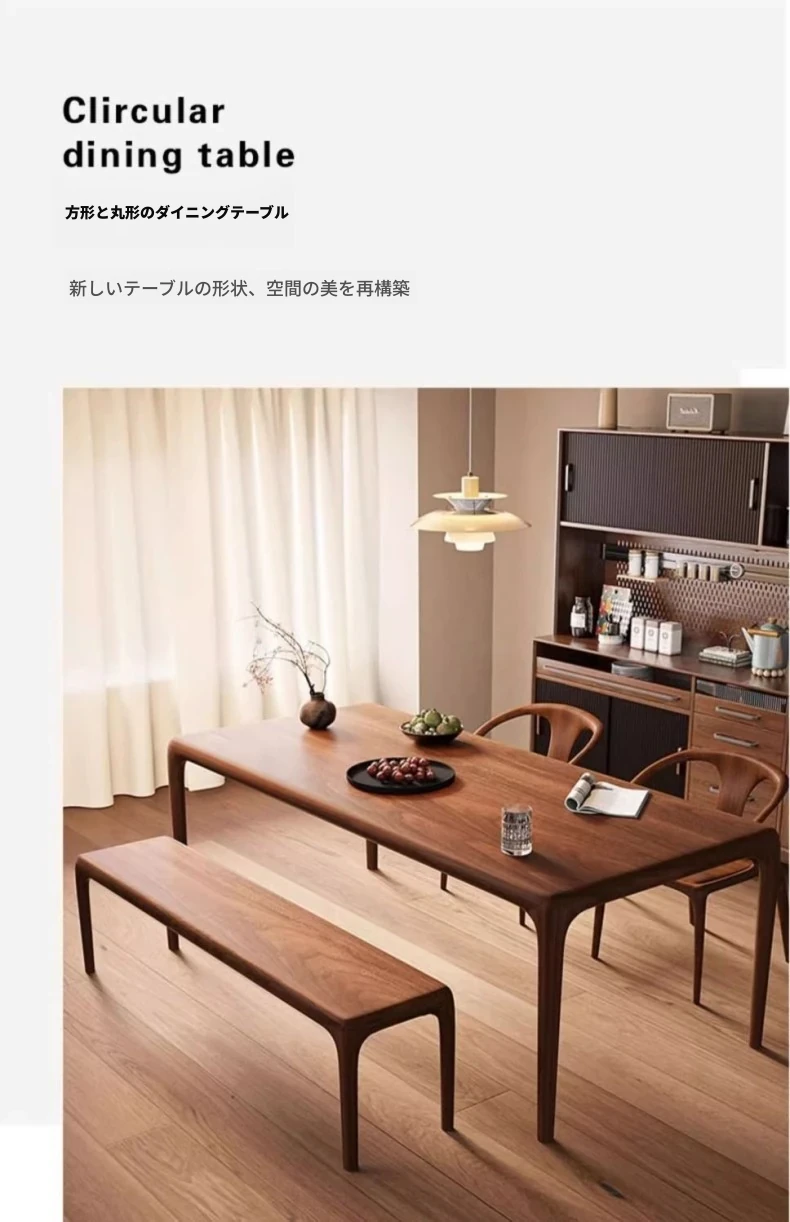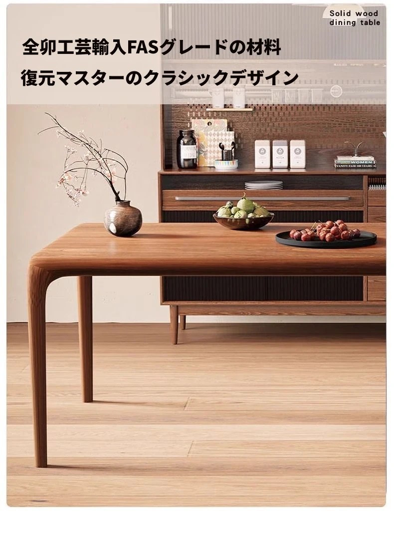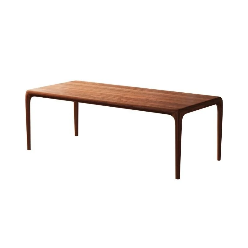 輸入されたウォールナット材のモダンミニマリストスタイルの高級天然木製ダイニングテーブル - シンプルで洗練された長方形デザイン、食事や書斎、ティータイムに最適な一品!