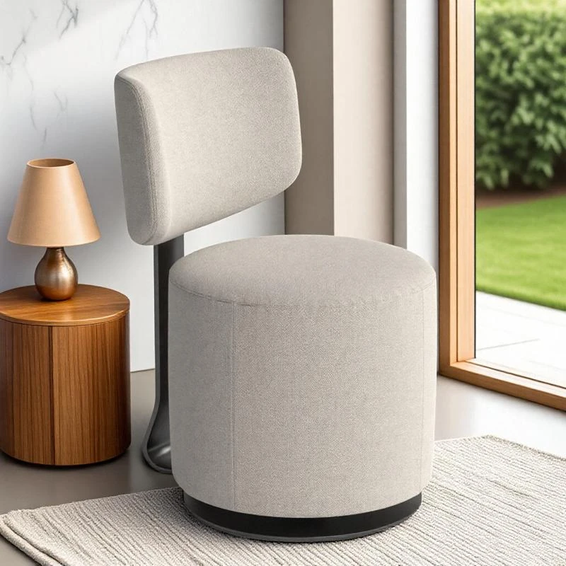 イタリアンラグジュアリー回転バックチェア - モダンで洗練されたデザイン、小型住宅に最適なデザイナーズ寝室用ドレッシングスツール・メイクアップラウンドスツール。快適さとスタイルを兼ね備えた一品!