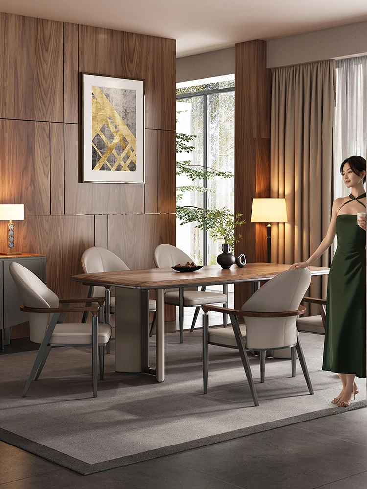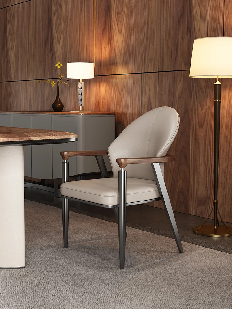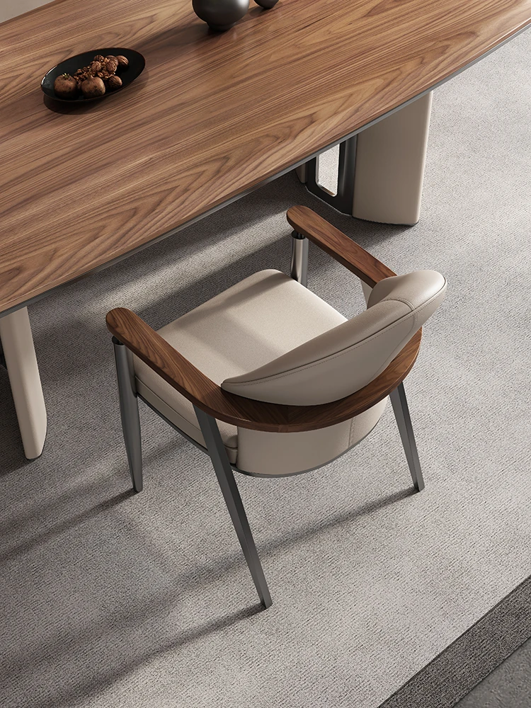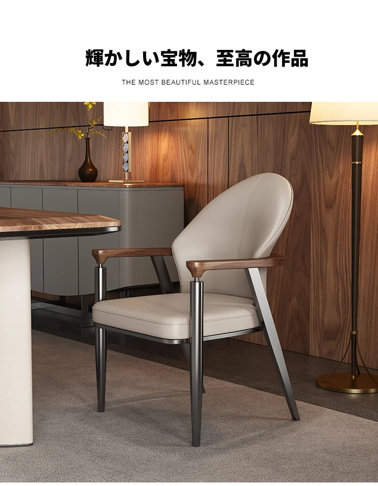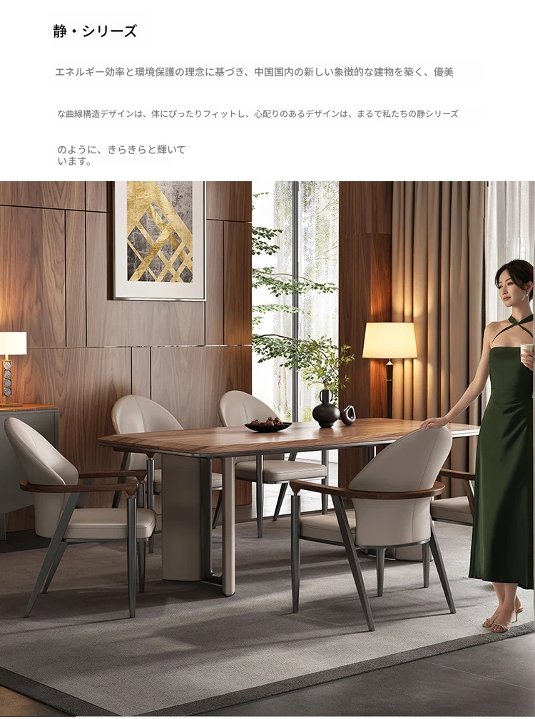 イタリアンライトラグジュアリーの無垢材ハンドル付きティーチェア&テーブルセット 2025年新作 - 贅沢なひとときを演出する、背もたれ付きのティーチェアとお客様用椅子を含むおしゃれな茶室の必需品!