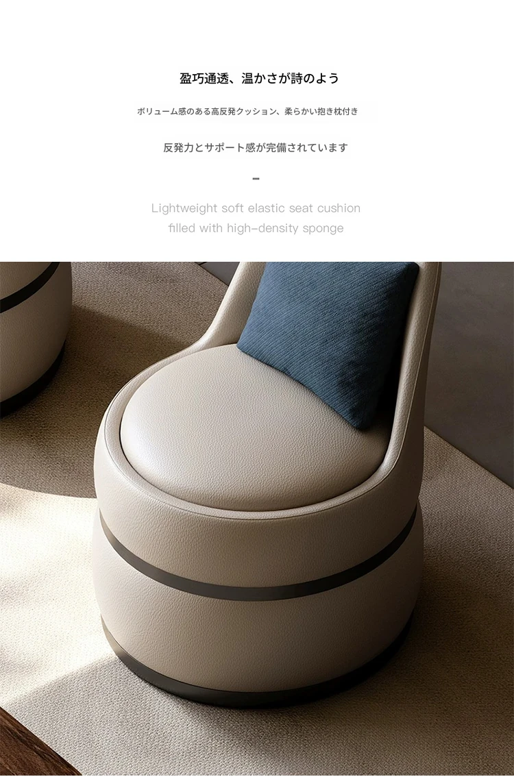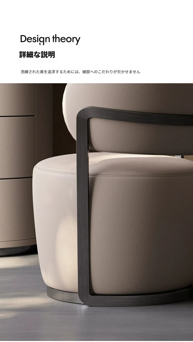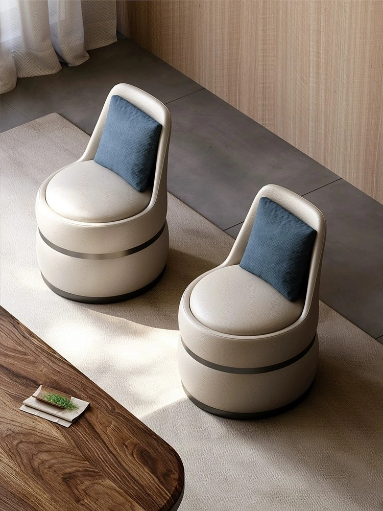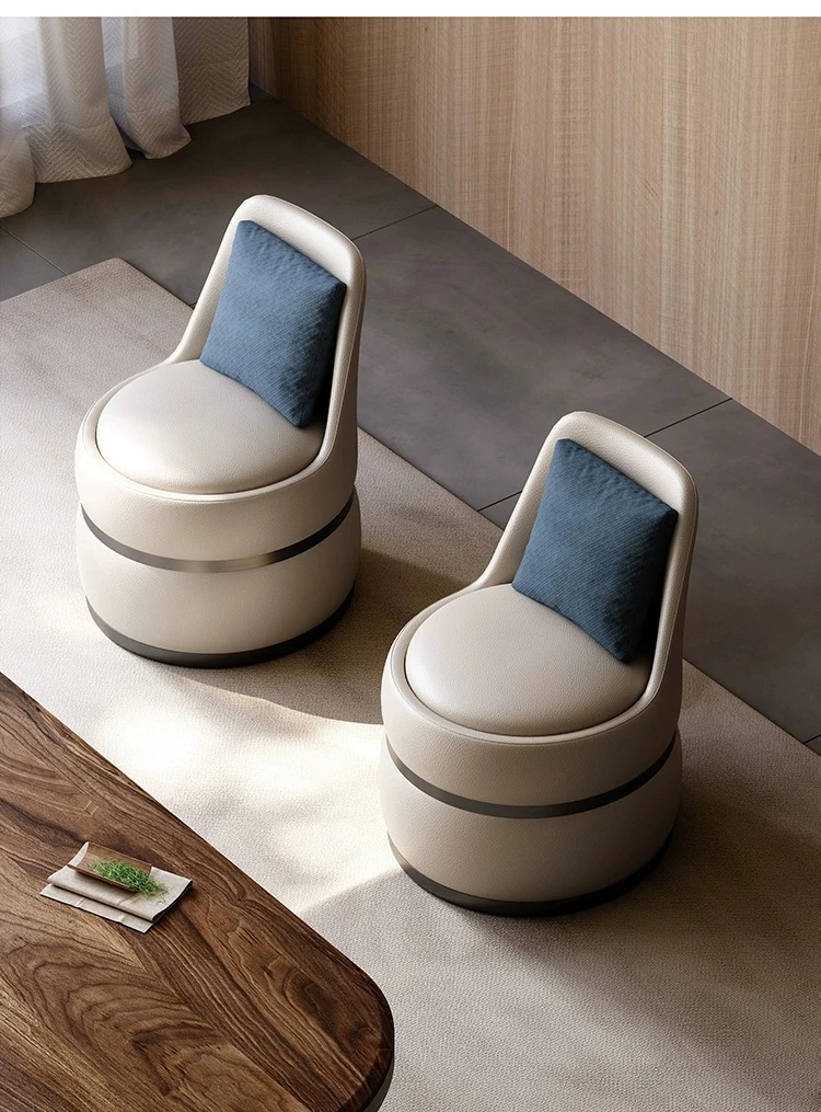 2024年新作!エレガントなイタリアンラグジュアリー茶室用真皮チェア&ラウンドテーブルセット - 背もたれ付きの快適な丸椅子で、贅沢なティータイムを演出します。