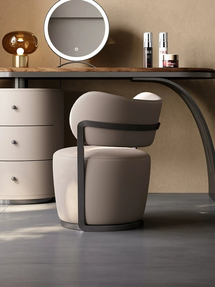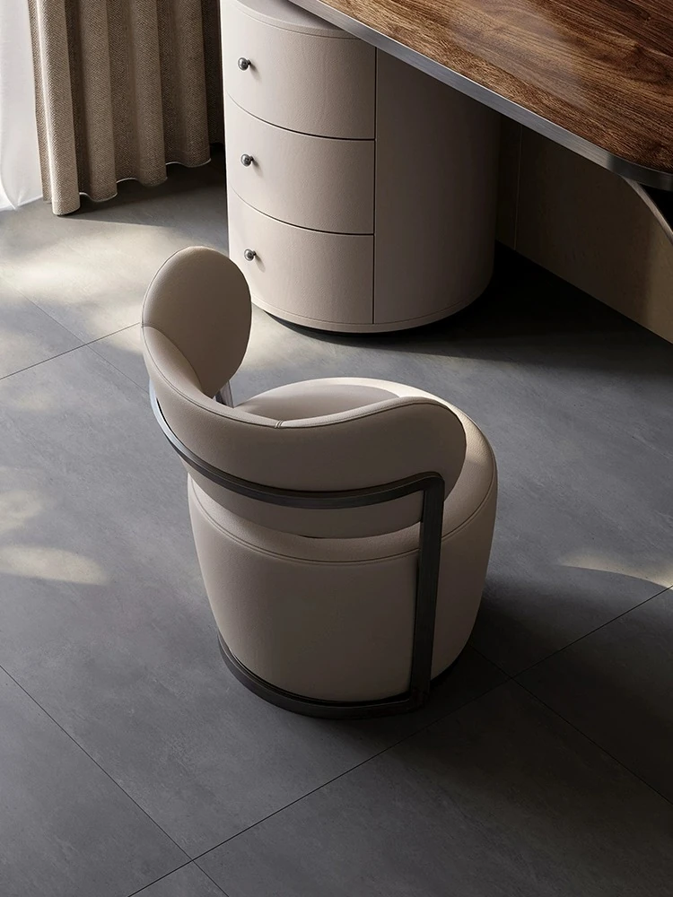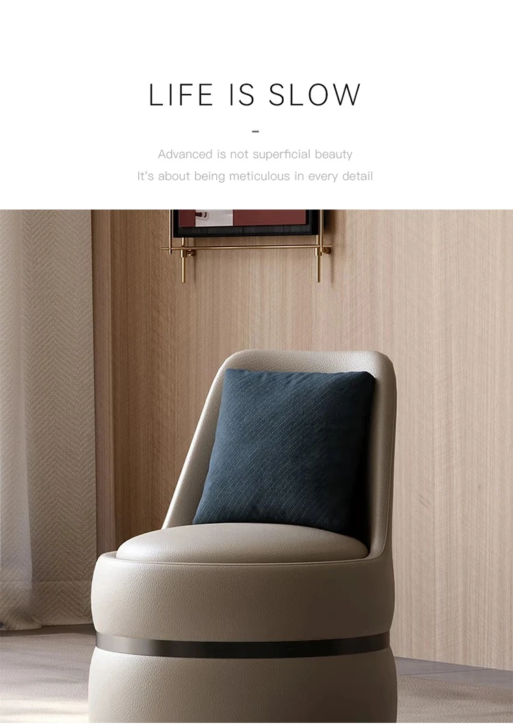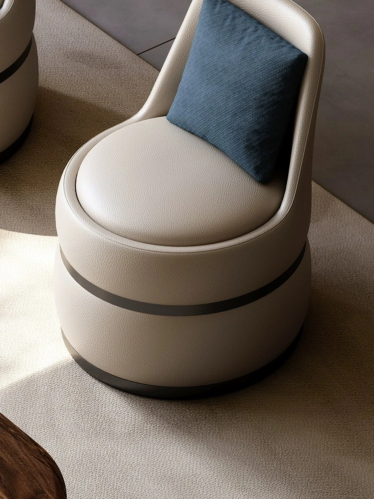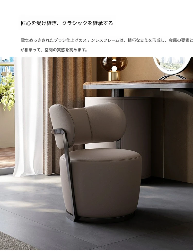 2024年新作!エレガントなイタリアンラグジュアリー茶室用真皮チェア&ラウンドテーブルセット - 背もたれ付きの快適な丸椅子で、贅沢なティータイムを演出します。