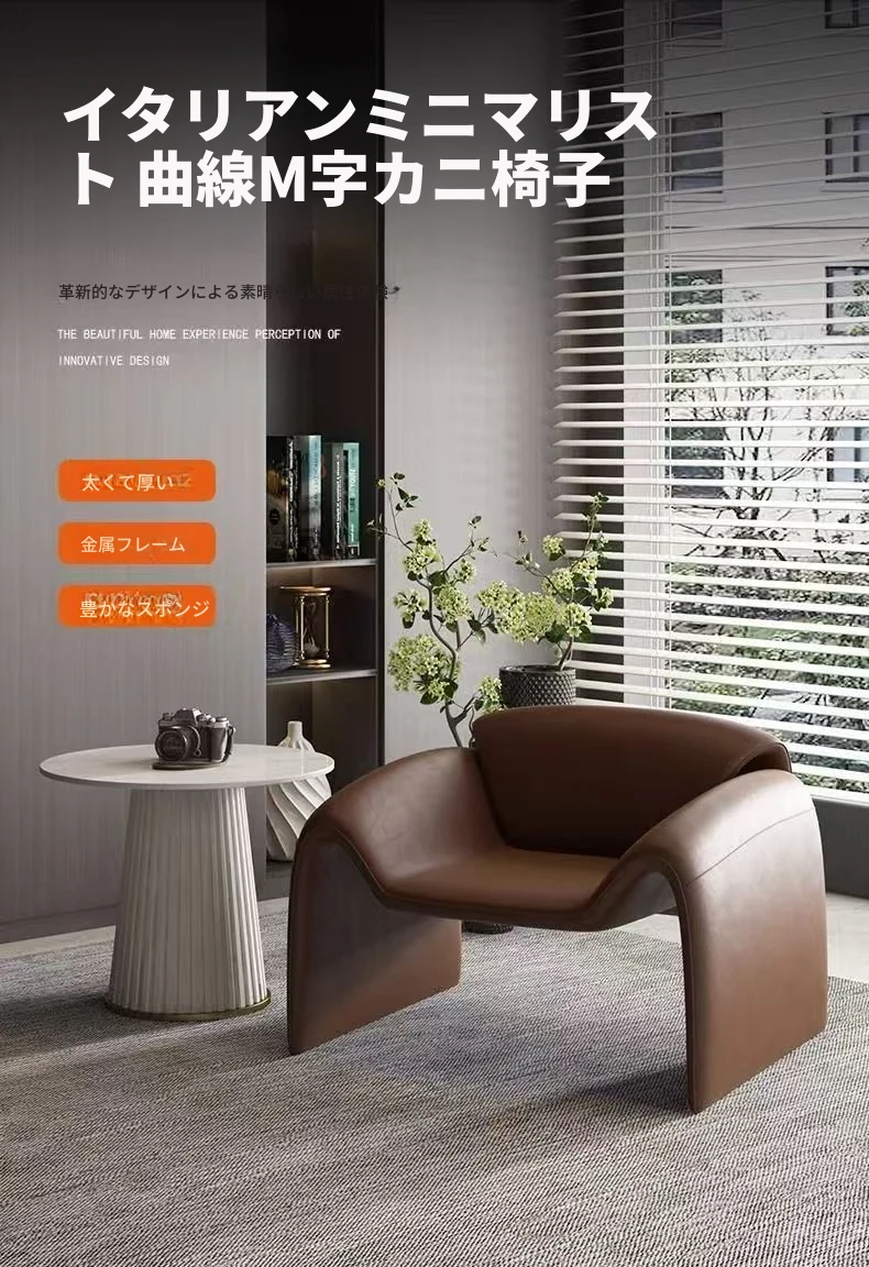 イタリアンミニマルデザインのリラックス一人掛けソファチェア - おしゃれなクレイジークラブチェアとトラチェアで、宿泊施設やリビングに最適な癒しの空間を提供します!