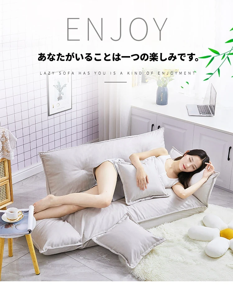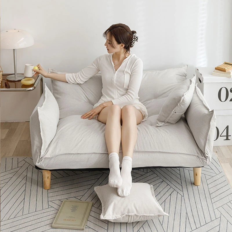 一人用脚なし/淡いグレー/コットンリネン/パン椅子