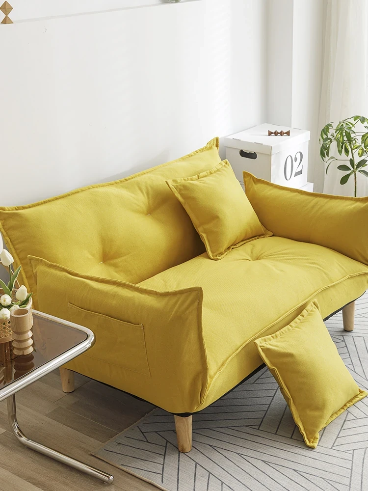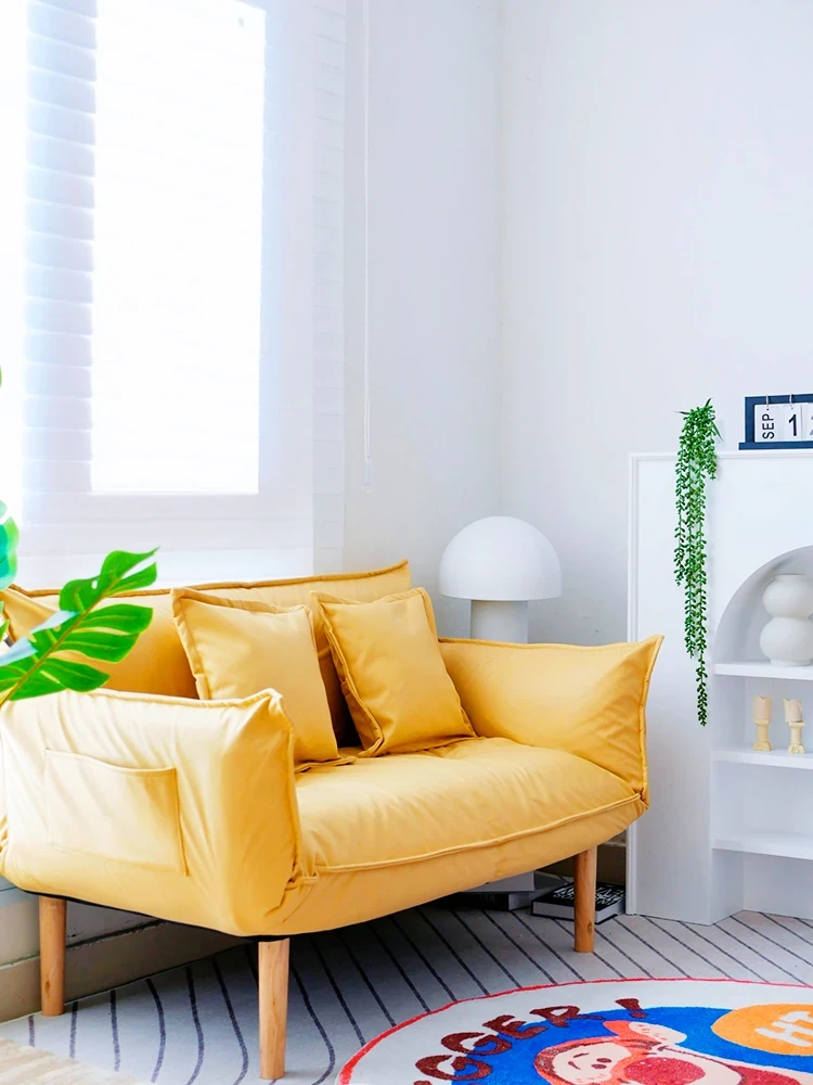 一人用脚なし/明るい黄色/コットンリネン/パン椅子