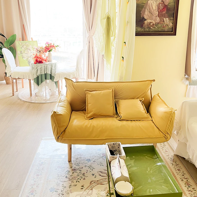 二人用脚なし/レモンイエロー/コットンリネン/パン椅子