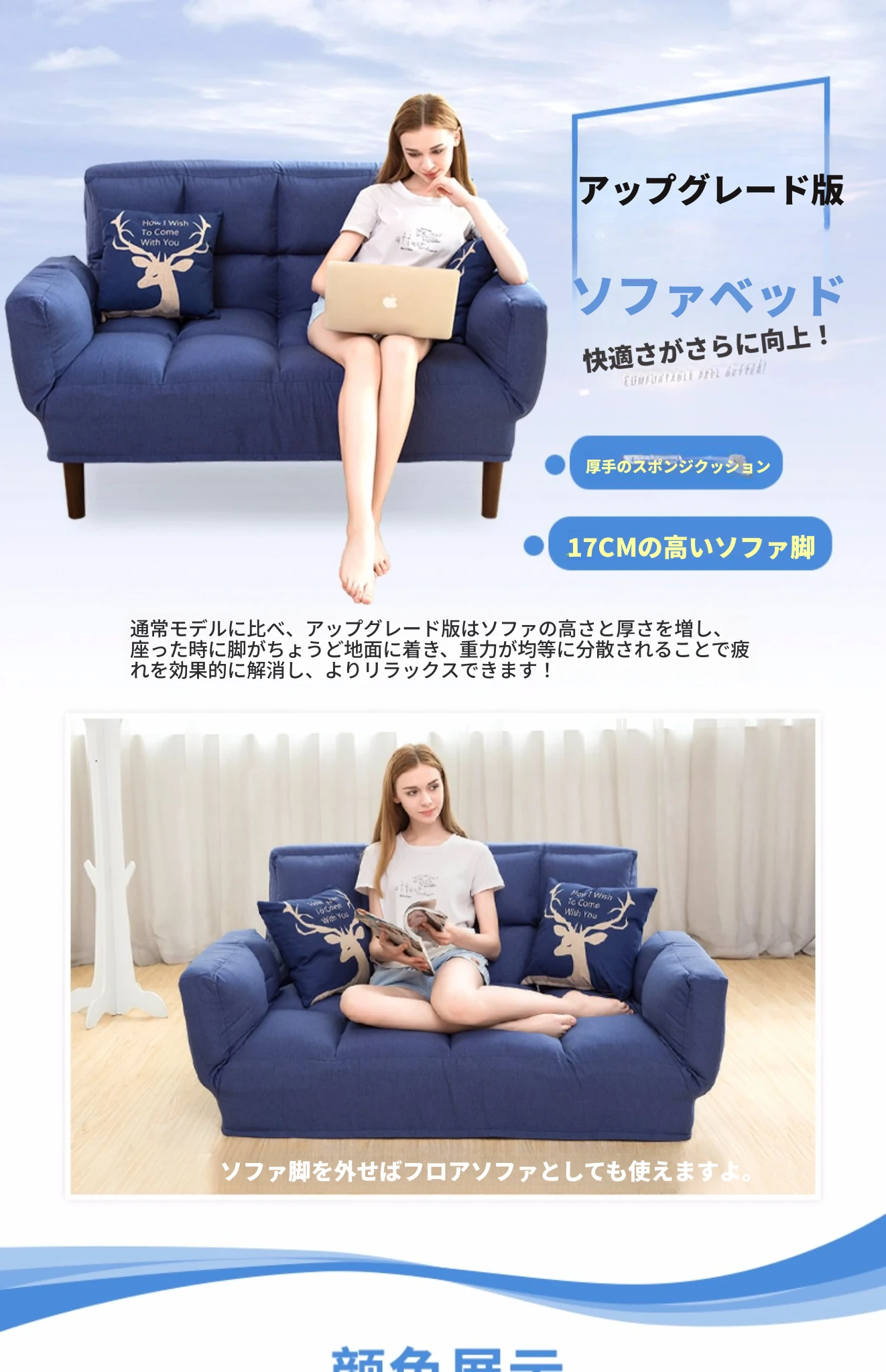 豪華モデル-浅青色【スプリング柔らか】