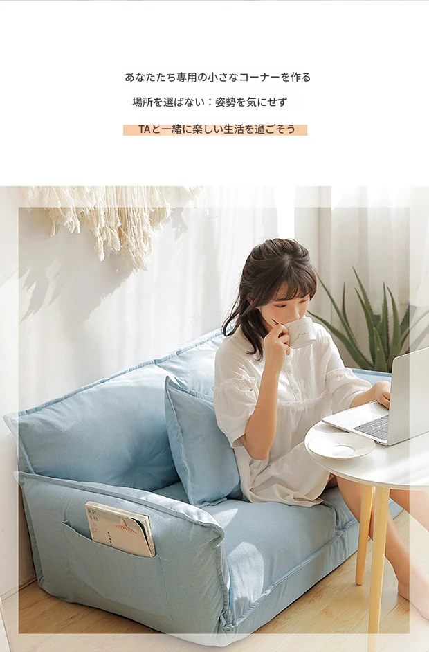 ダブル木脚/ ライトブルー/ コットンリネン/
