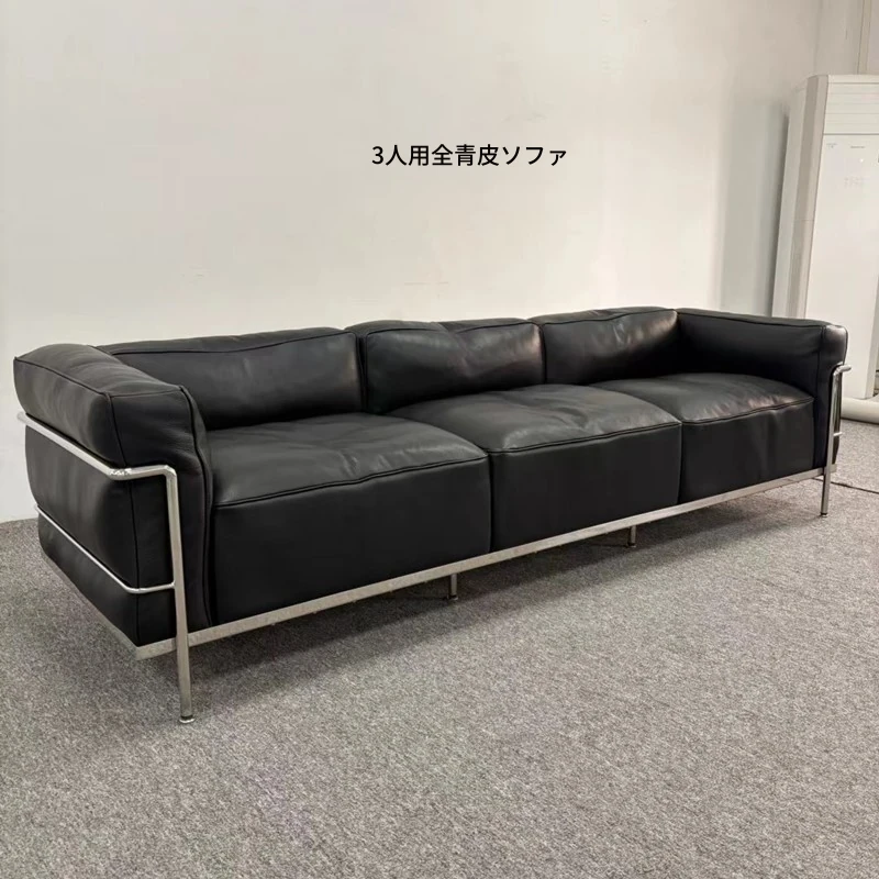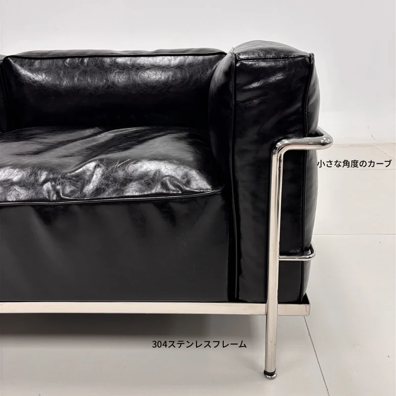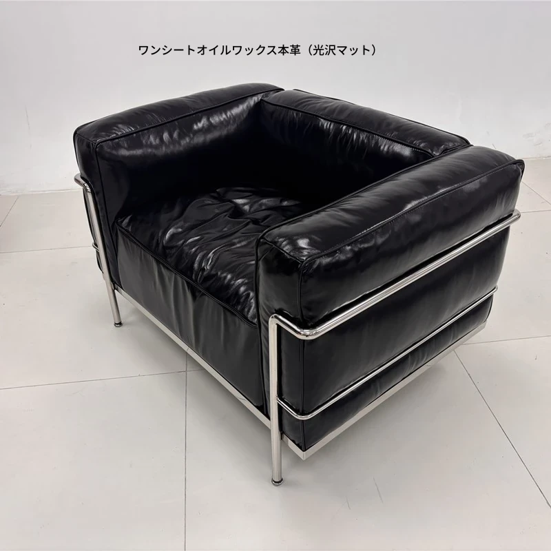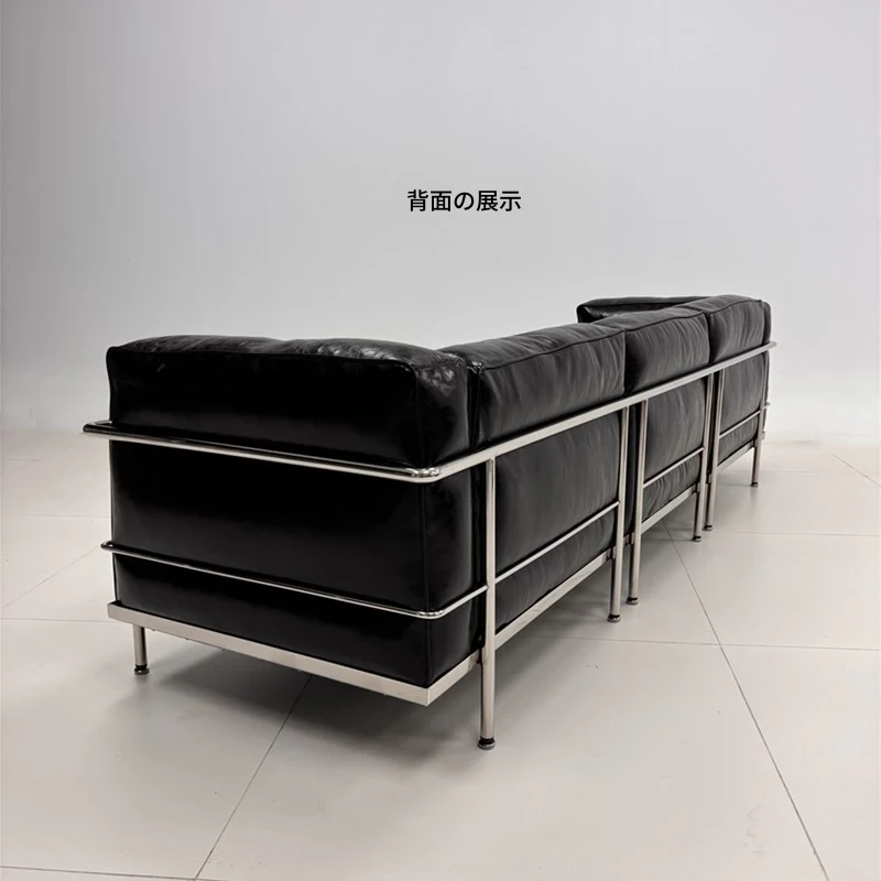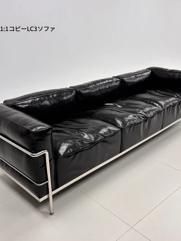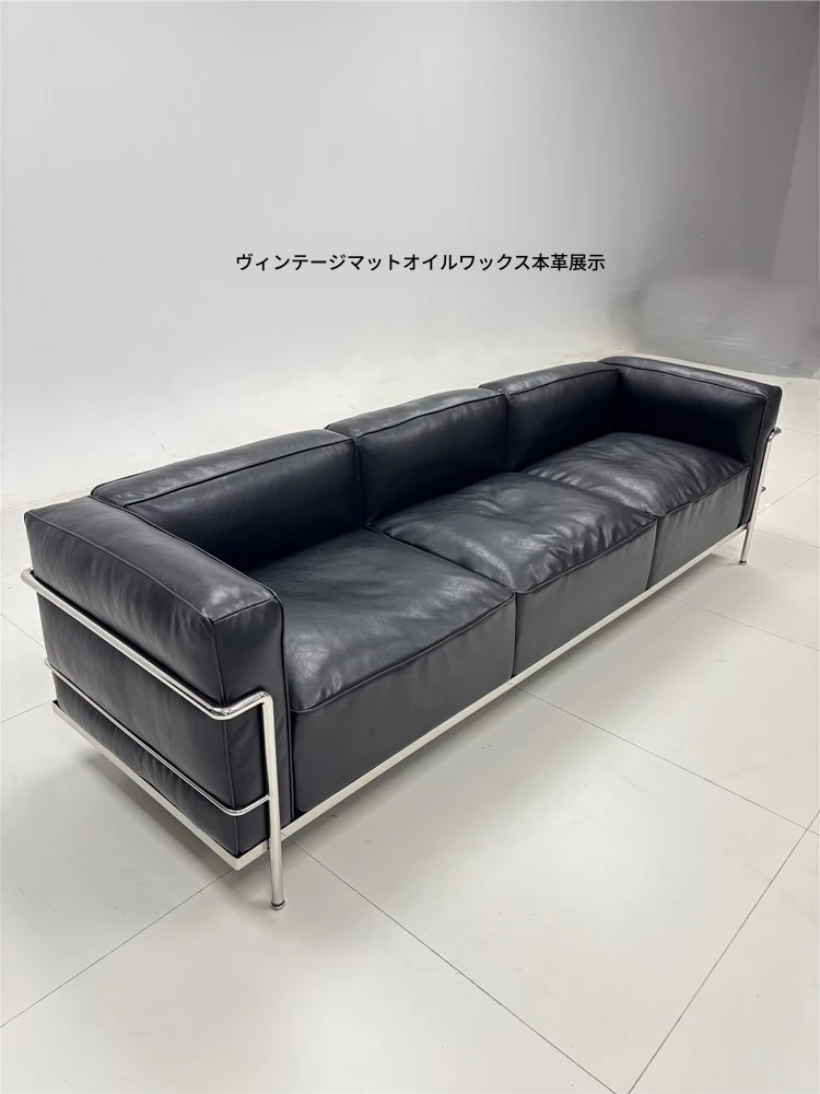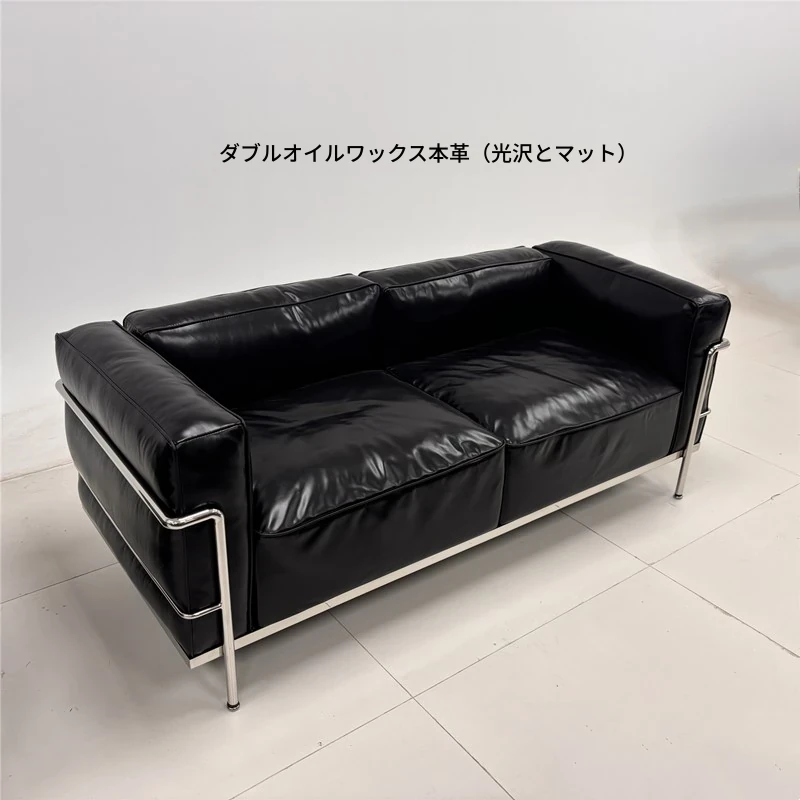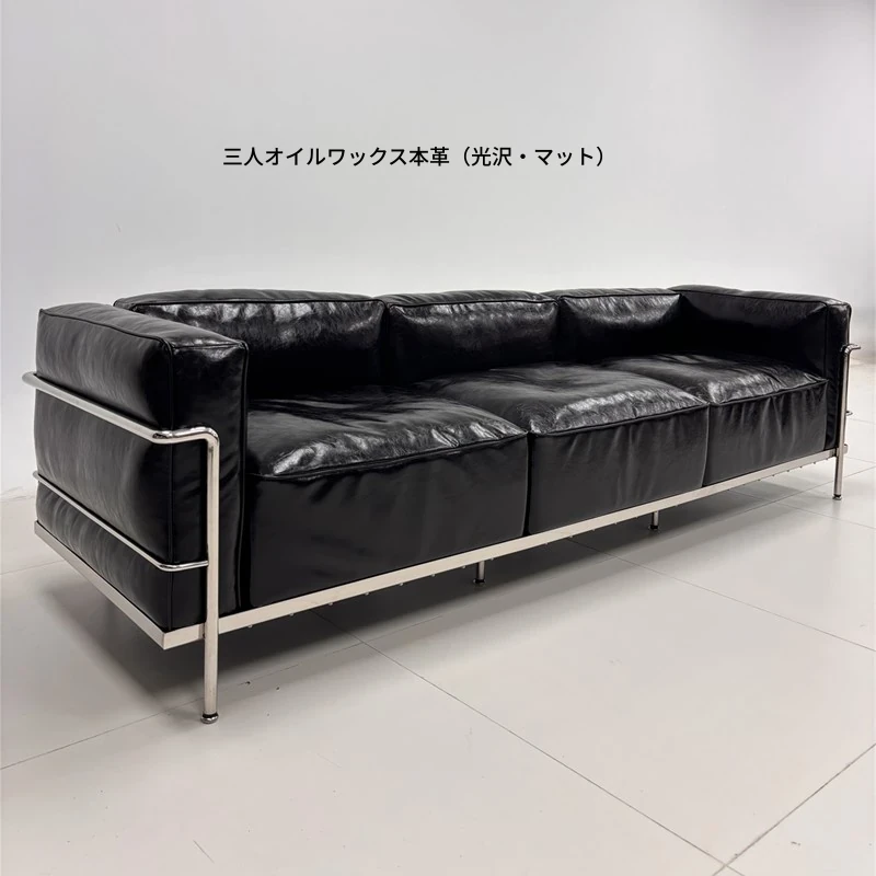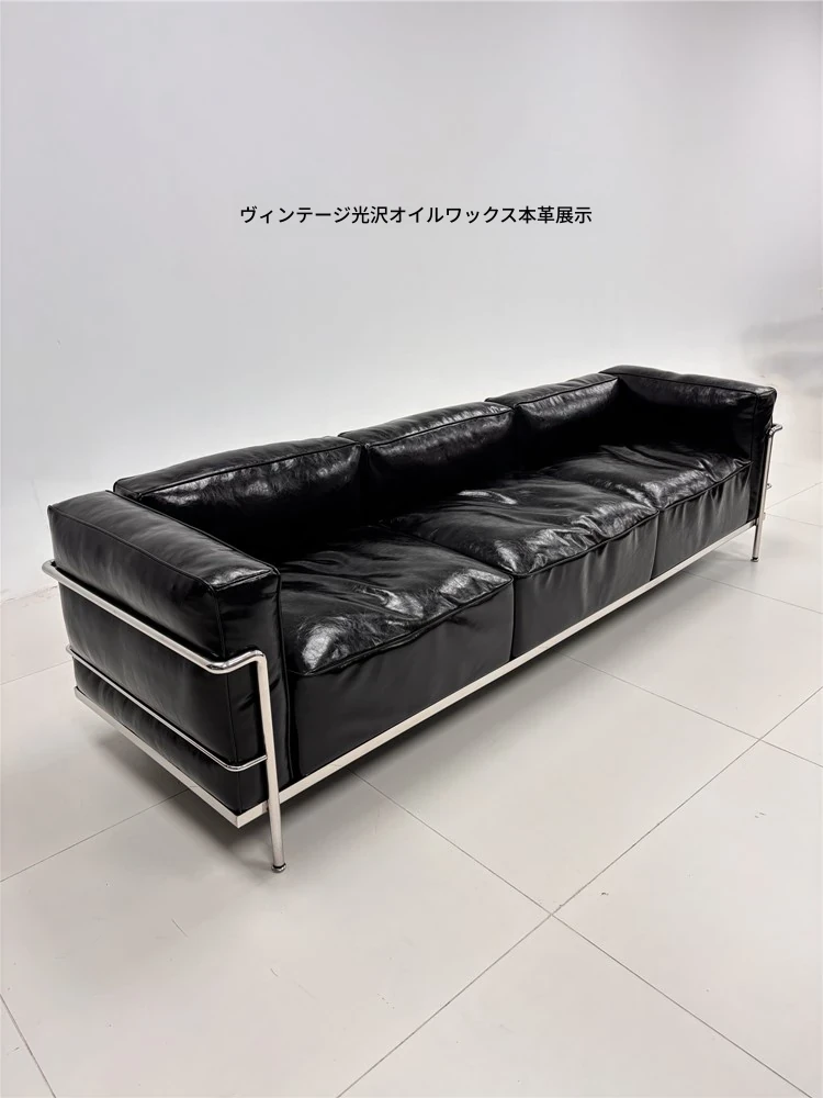 ル・コルビュジエ LC3 ソファ - シンプルで快適なデザイン、デザイナーによるリラックスしたミッドセンチュリー風、バウハウススタイルのオイルワックス本革ソファ。