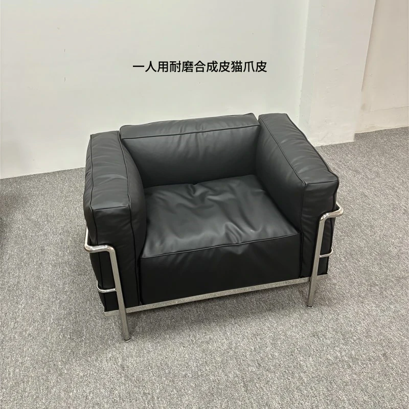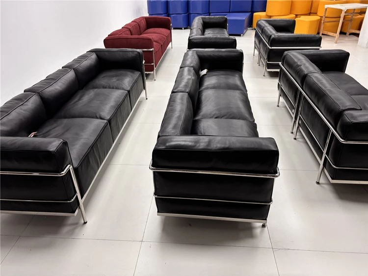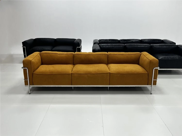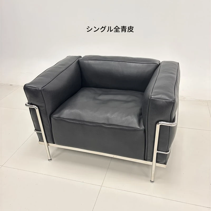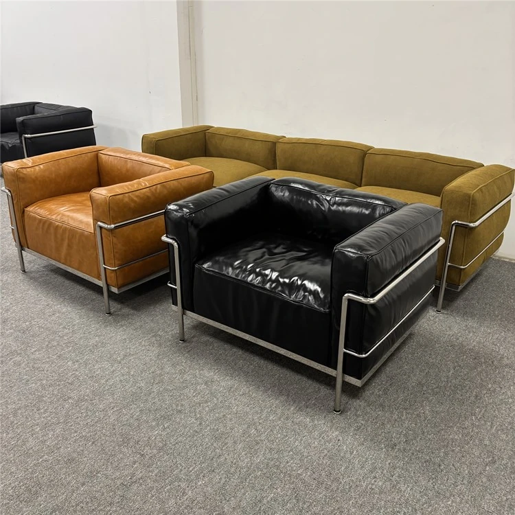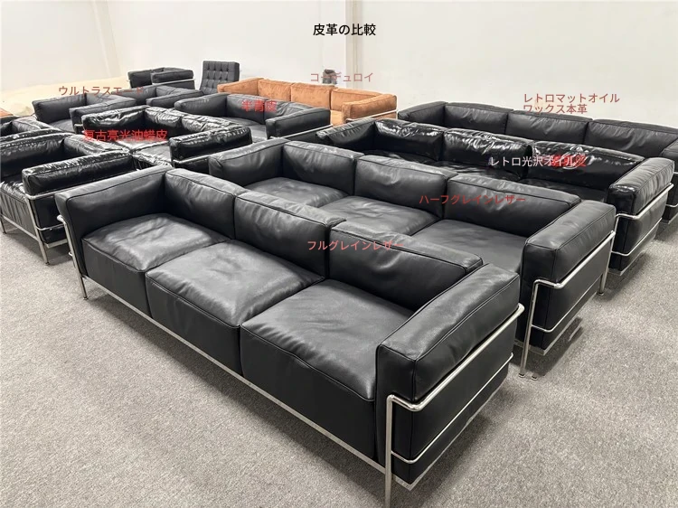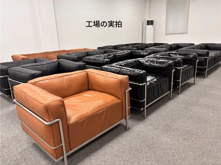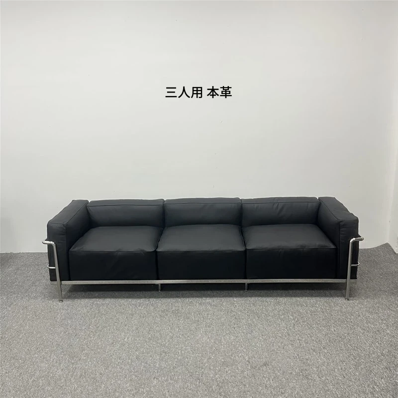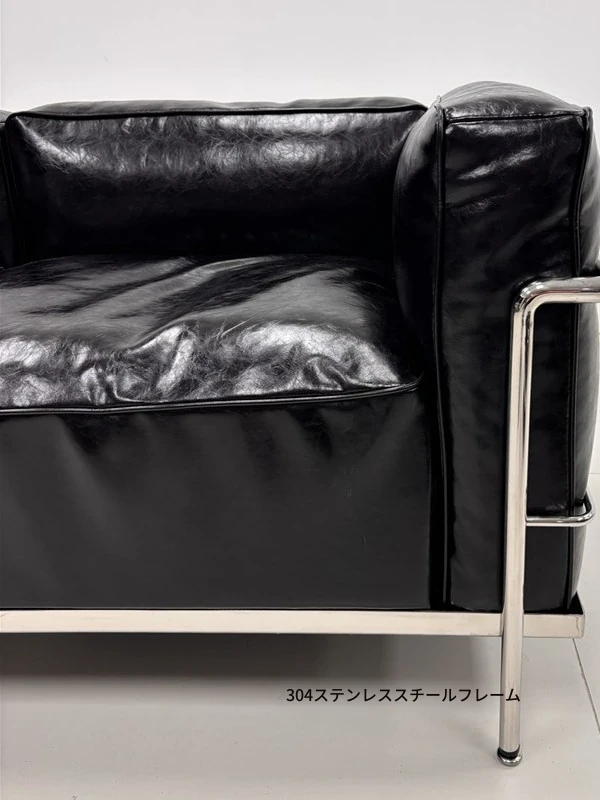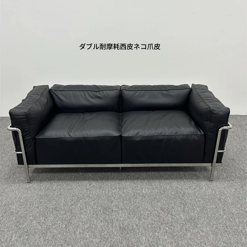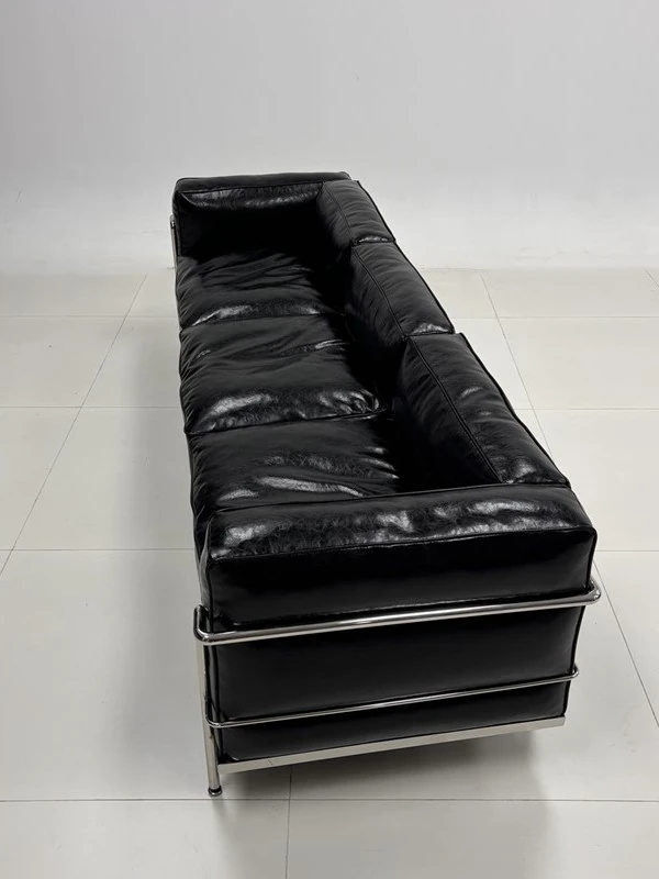 ル・コルビュジエ LC3 ソファ - シンプルで快適なデザイン、デザイナーによるリラックスしたミッドセンチュリー風、バウハウススタイルのオイルワックス本革ソファ。