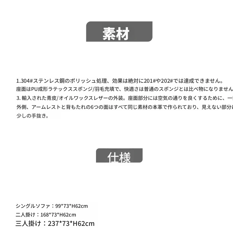 三人用 接触面復古オイルワックス真皮