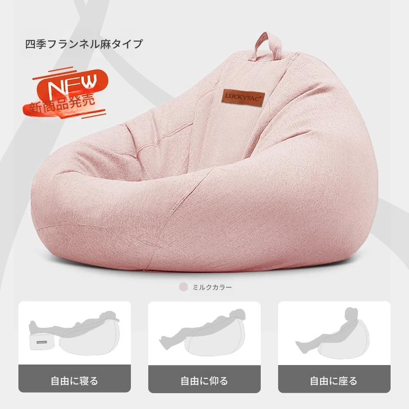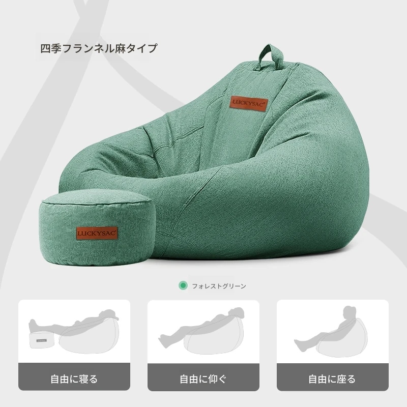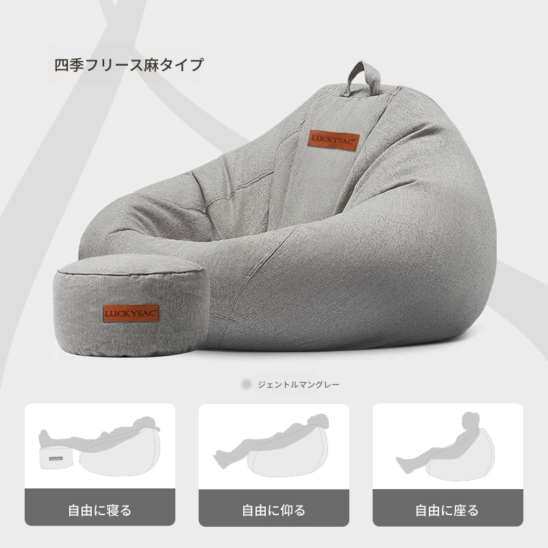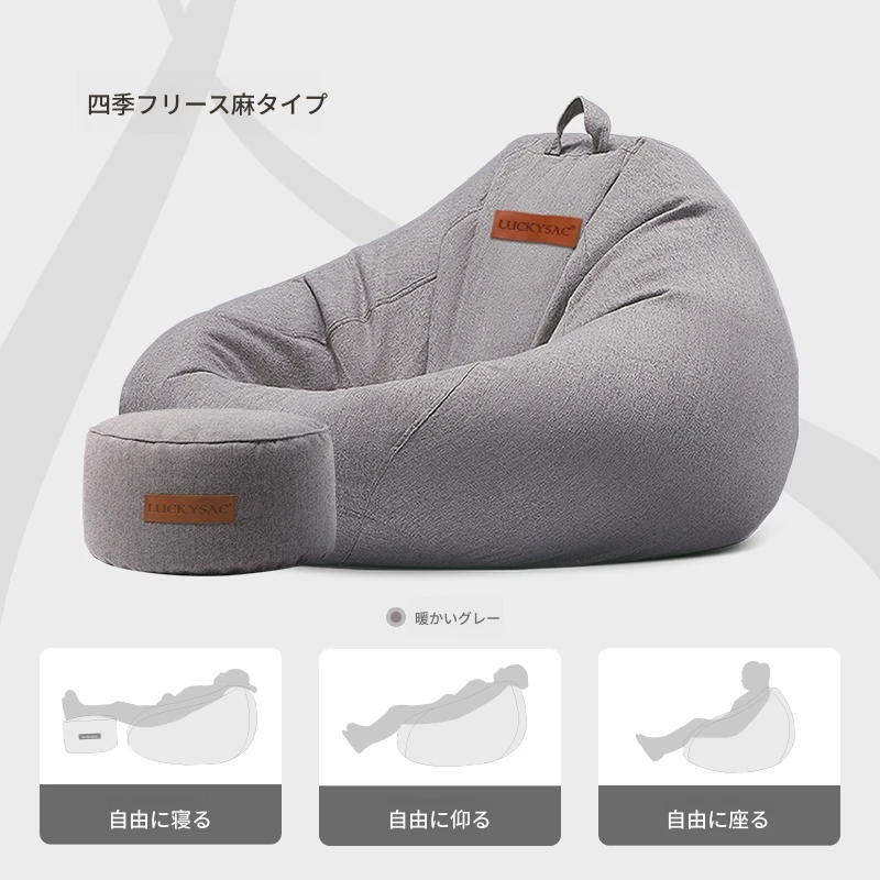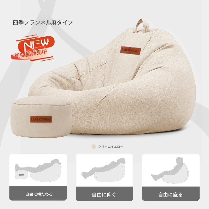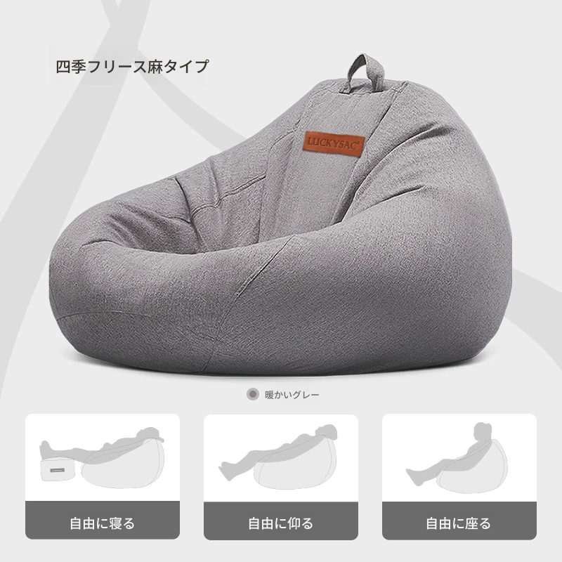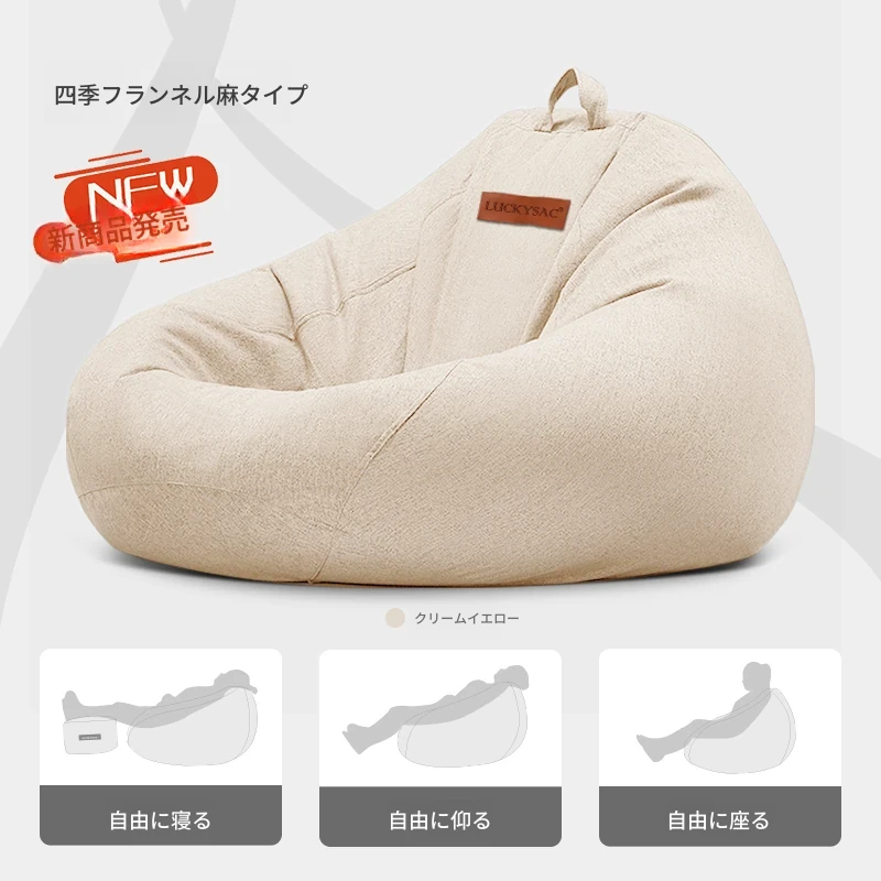 ラクシーサック ライフスタイルを変える!リラックス&快適な一人用ソファ、寝転びながらくつろげるバルコニー用チェア。豆袋タイプで、寝室や畳の上でも大活躍!あなたのリラックスタイムをサポートします!