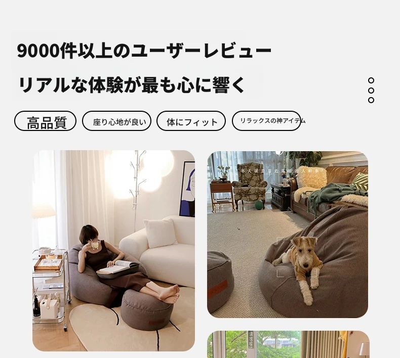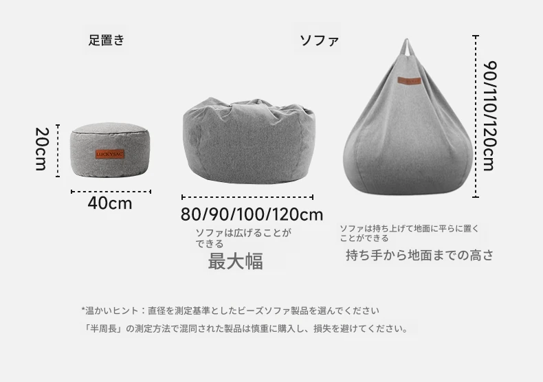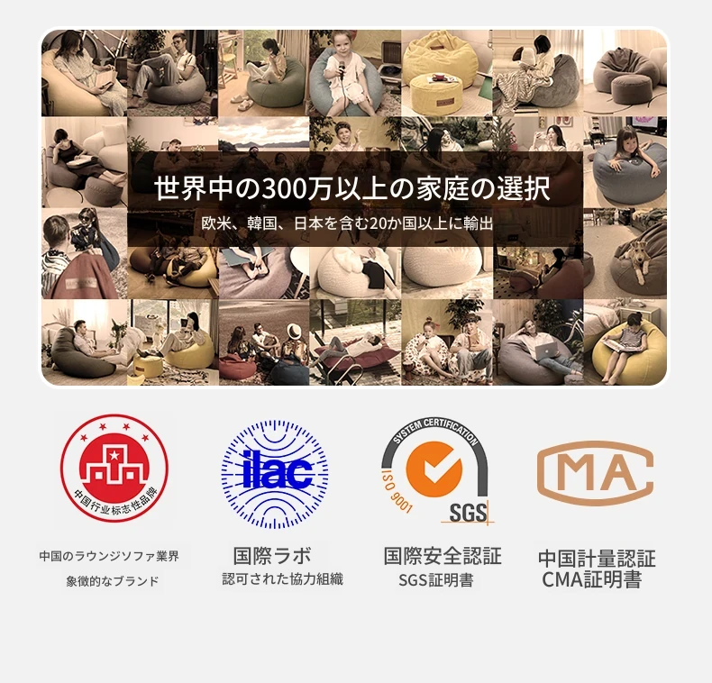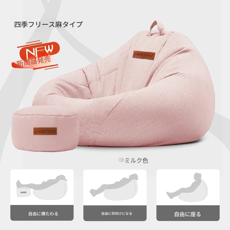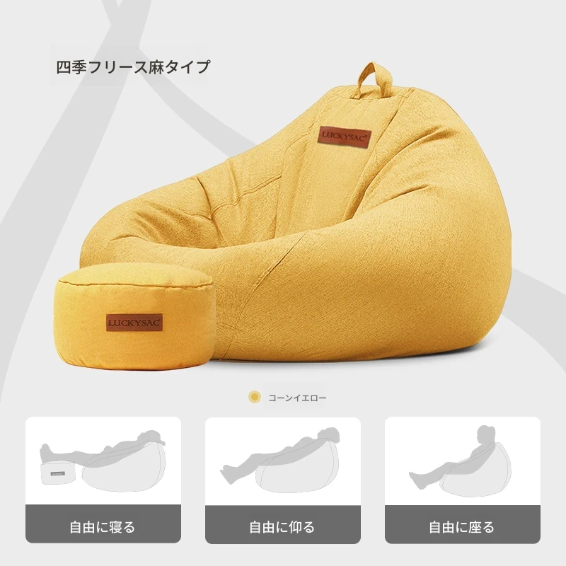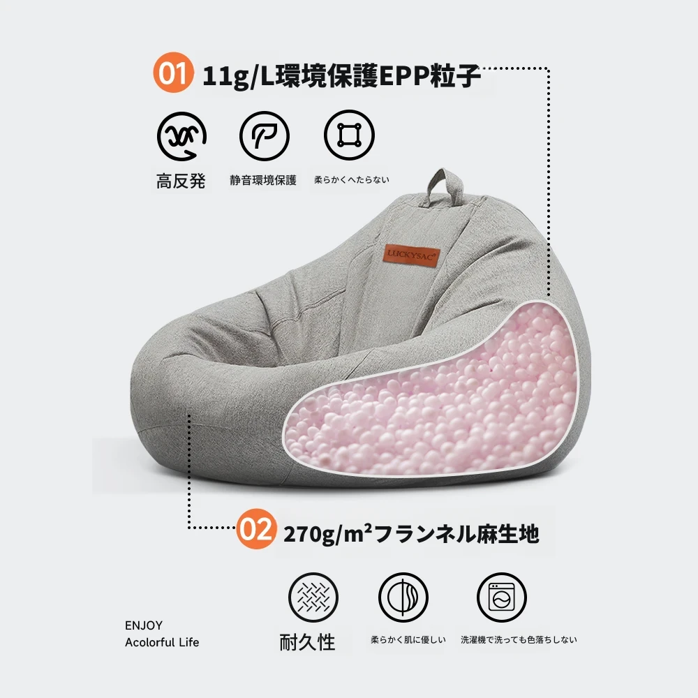 ラクシーサック ライフスタイルを変える!リラックス&快適な一人用ソファ、寝転びながらくつろげるバルコニー用チェア。豆袋タイプで、寝室や畳の上でも大活躍!あなたのリラックスタイムをサポートします!