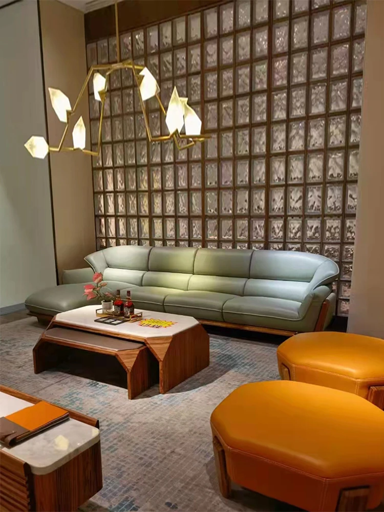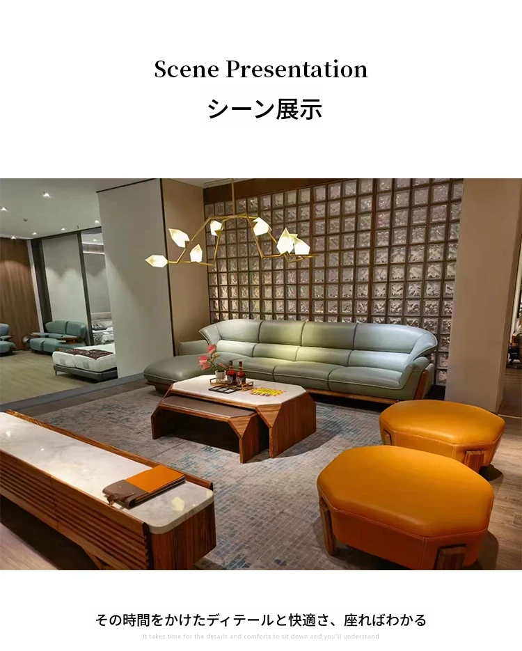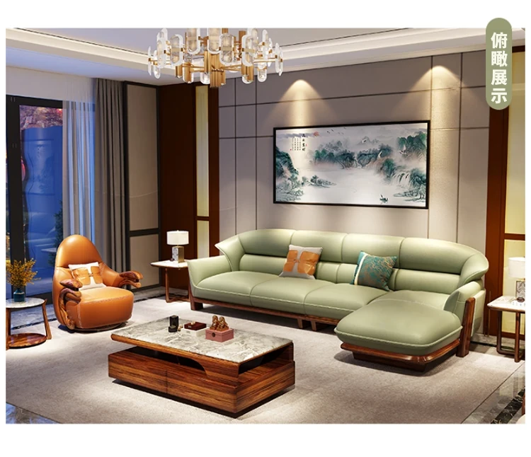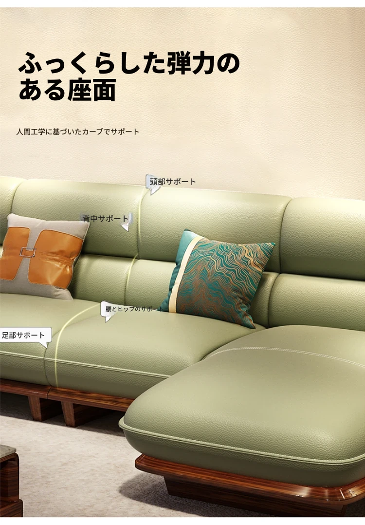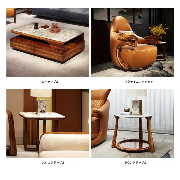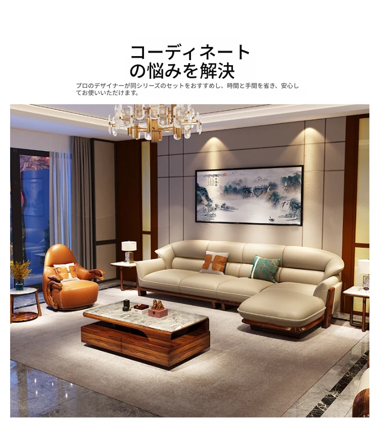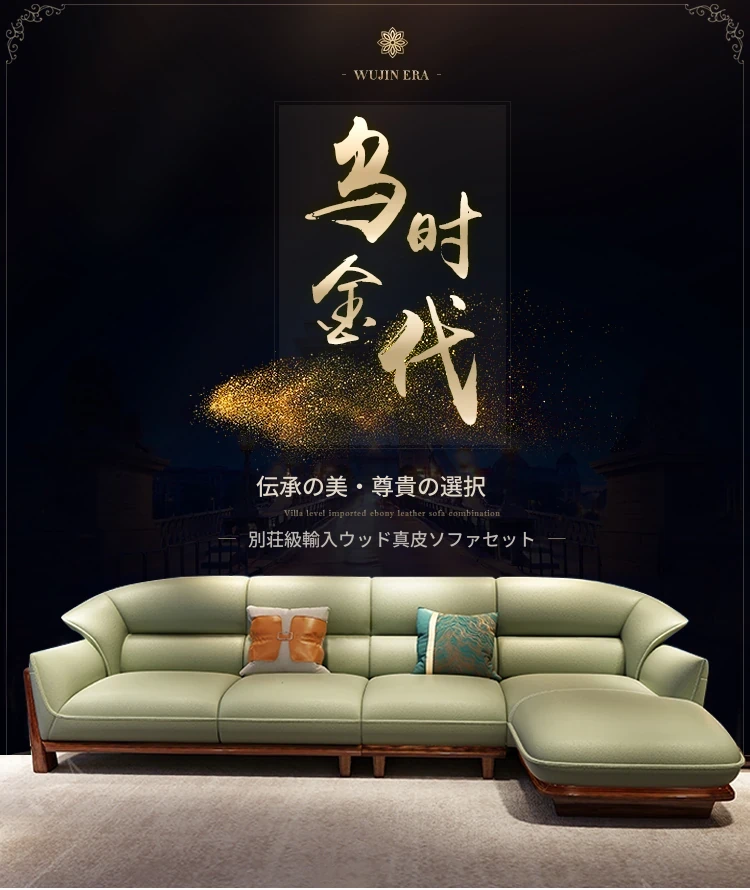 ウッドブラックソファ 欧風高級実木 別荘豪邸向け 一級本革家具 ラグジュアリーL型コーナーリビングセットで、スタイリッシュな空間を演出!