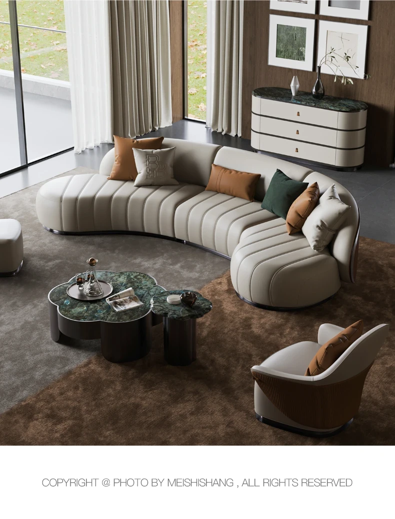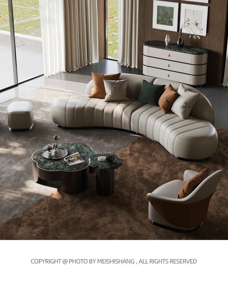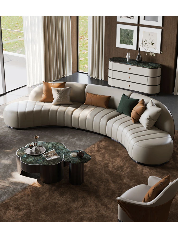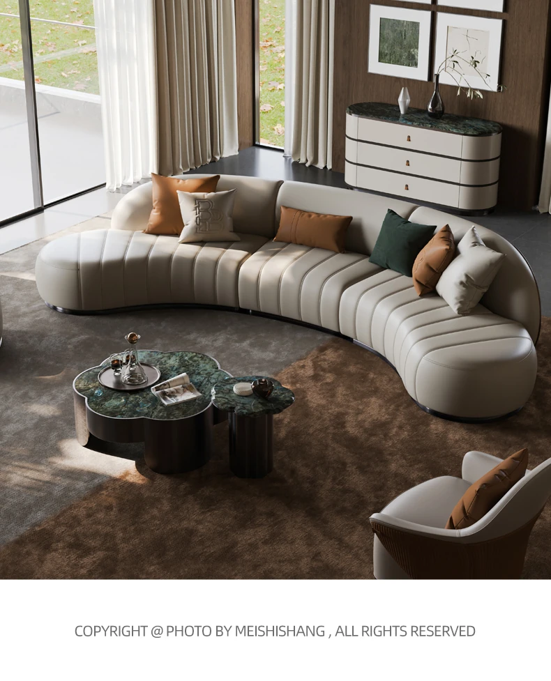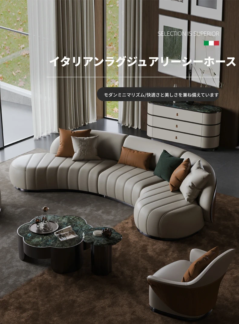 魅時尚Seahorオリジナルデザイナー別荘向け高級ユニークシェイプの大きなソファー 本革アーチ型ソファー - 贅沢な居心地とスタイルを兼ね備えた、あなたの特別な空間を演出します!