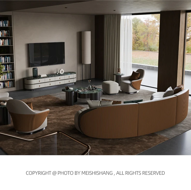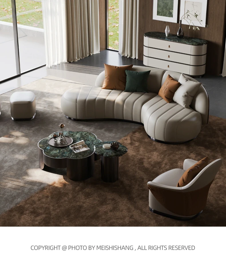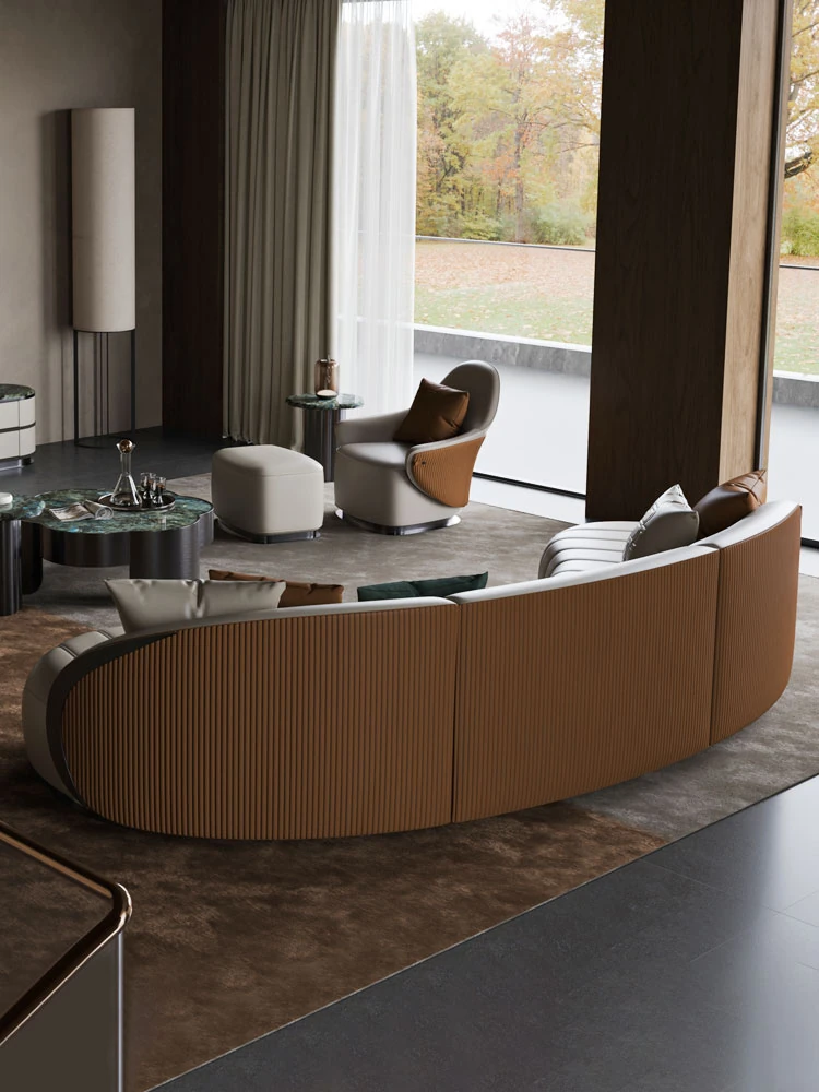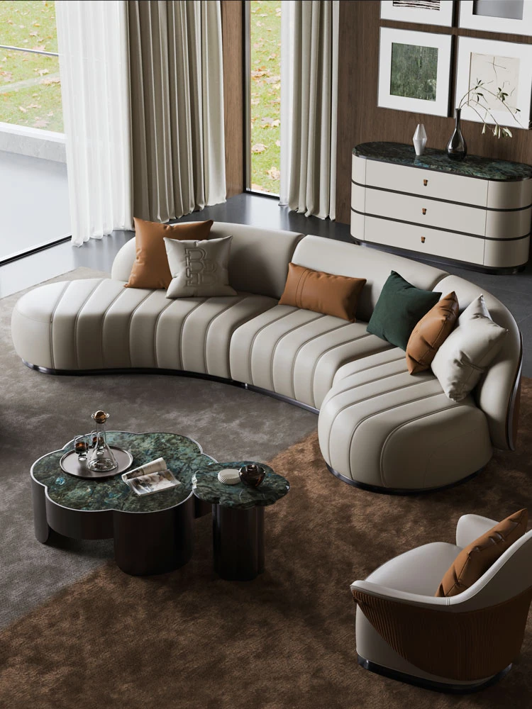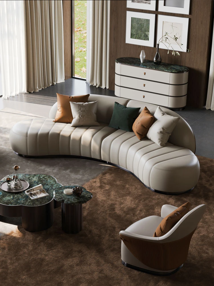 魅時尚Seahorオリジナルデザイナー別荘向け高級ユニークシェイプの大きなソファー 本革アーチ型ソファー - 贅沢な居心地とスタイルを兼ね備えた、あなたの特別な空間を演出します!