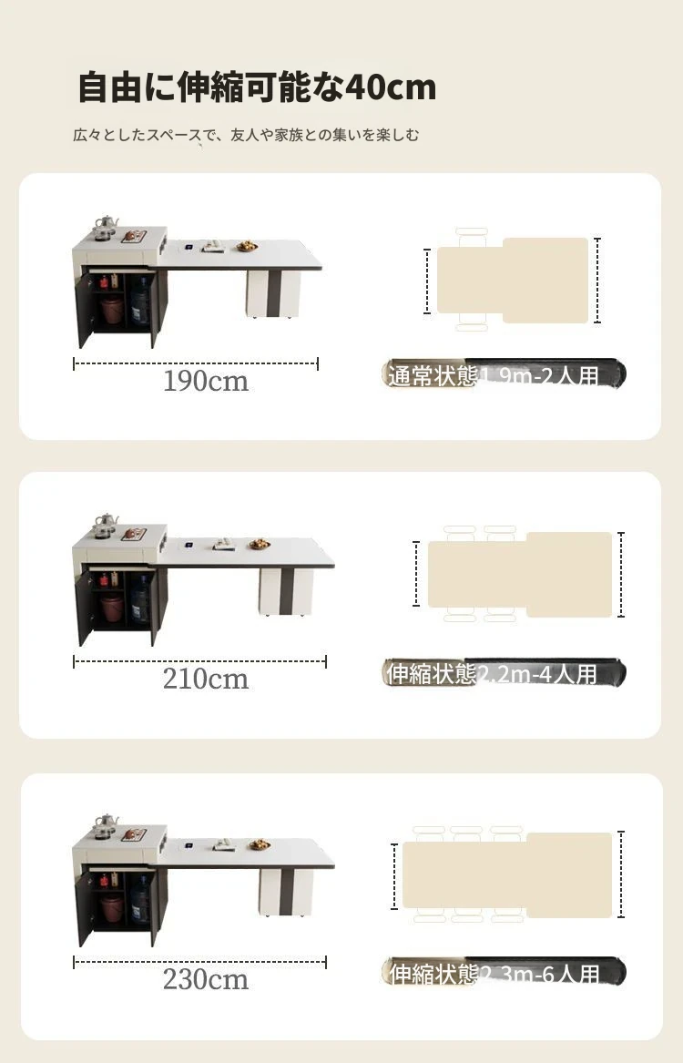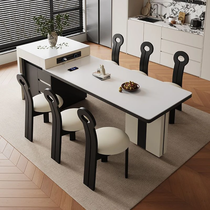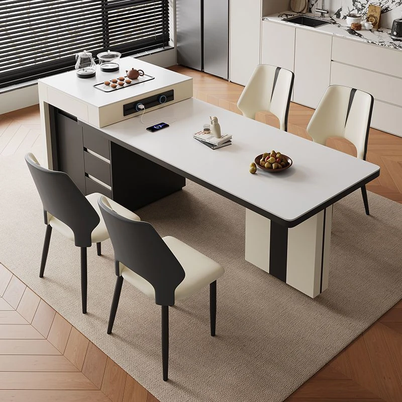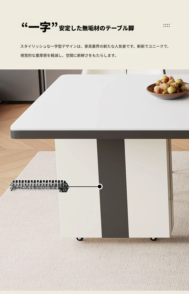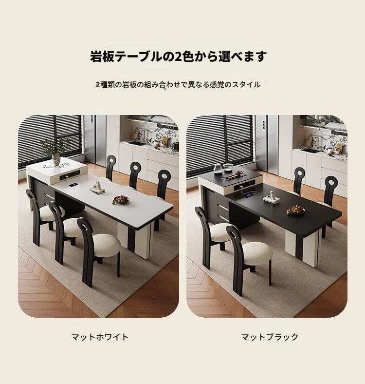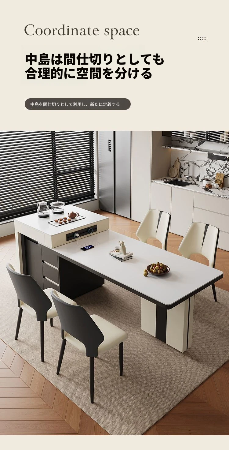 シンプルでラグジュアリーな伸縮式アイランドダイニングテーブル - 小型住宅に最適なモダンで多機能な食卓。高級感あふれるデザインで、食事をより特別なひとときに演出します!