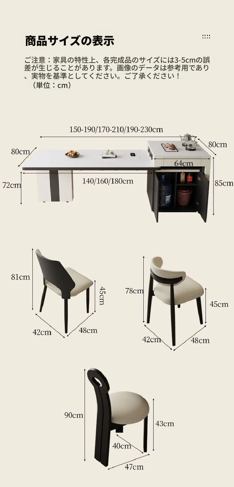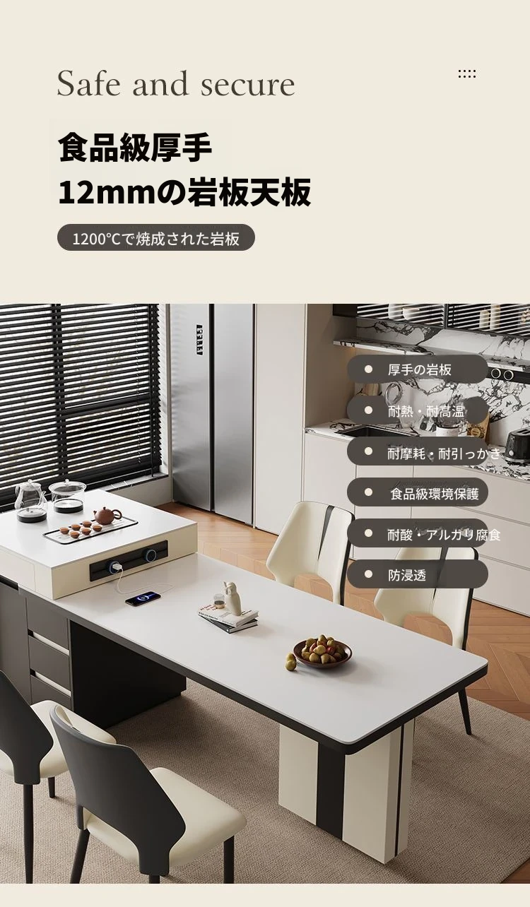 1.8*0.8*0.72m【2種類のテーブルトップから選択可能】/ 岩板テーブルトップ【通常のコンセント】
