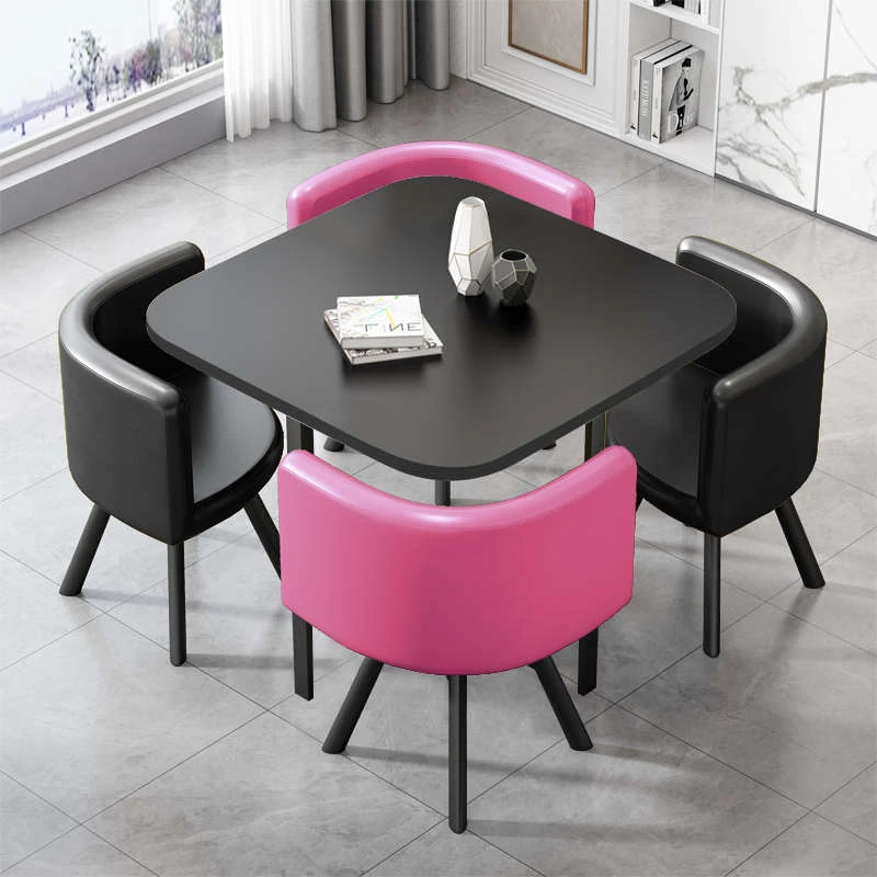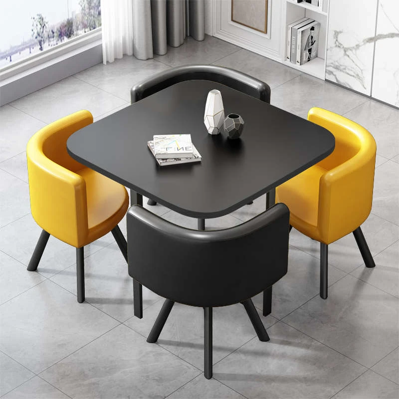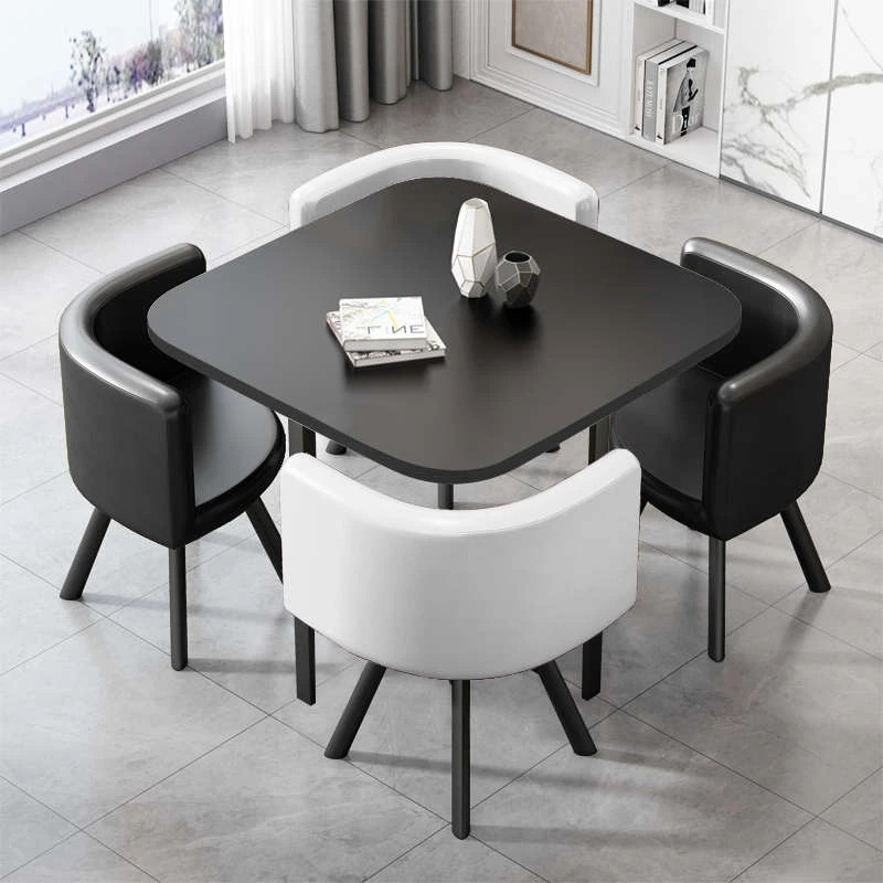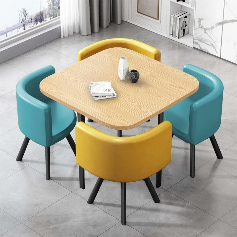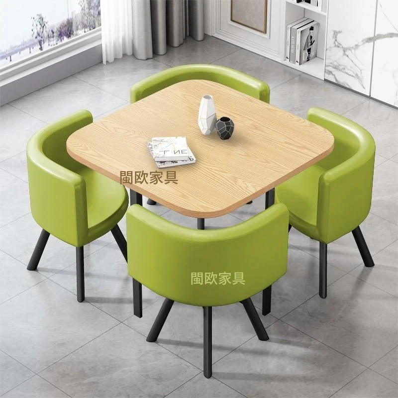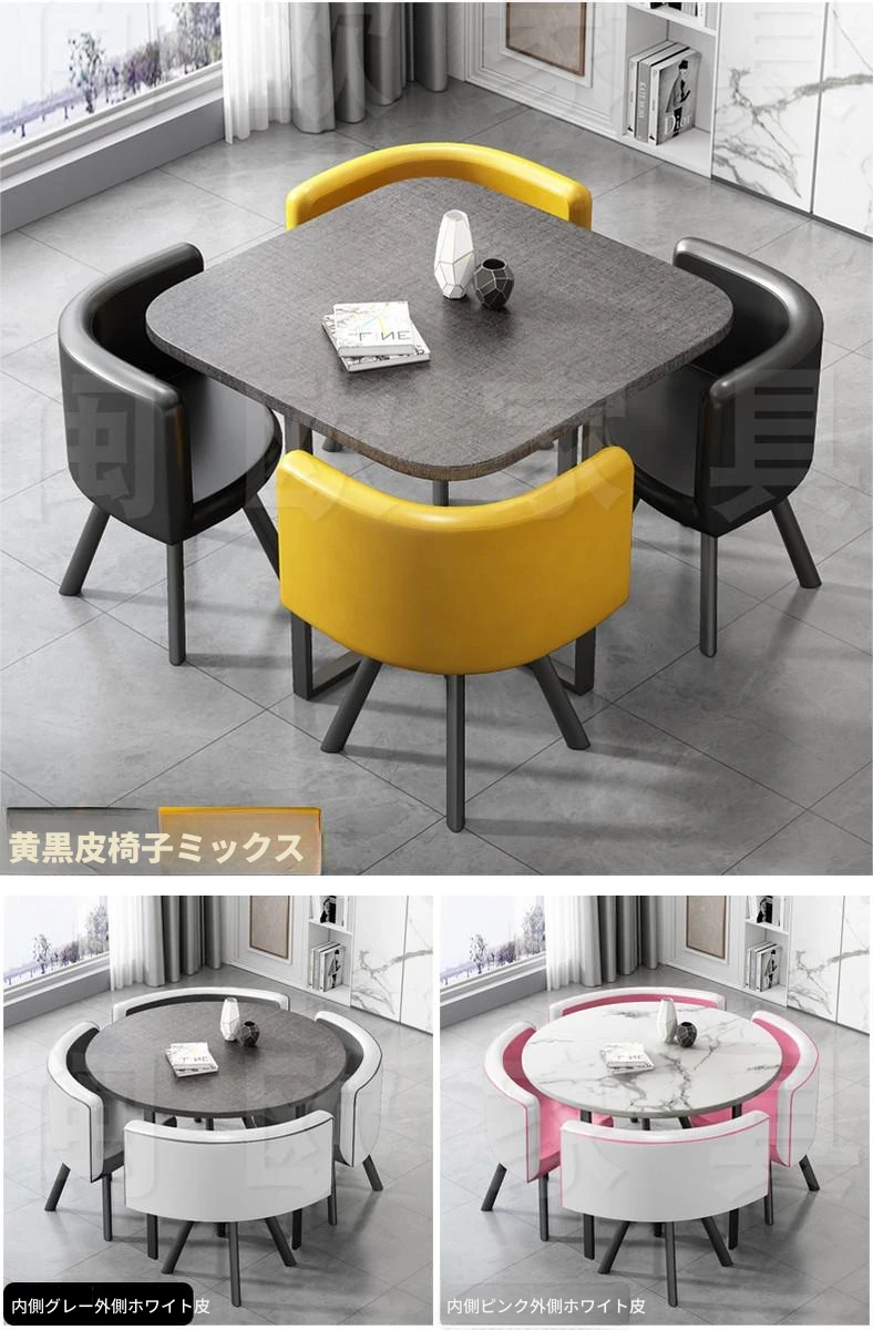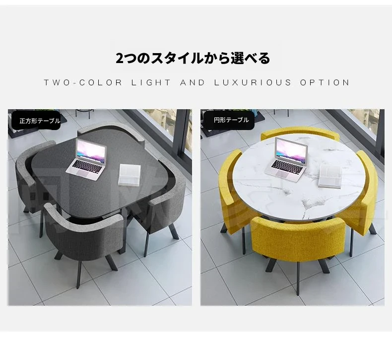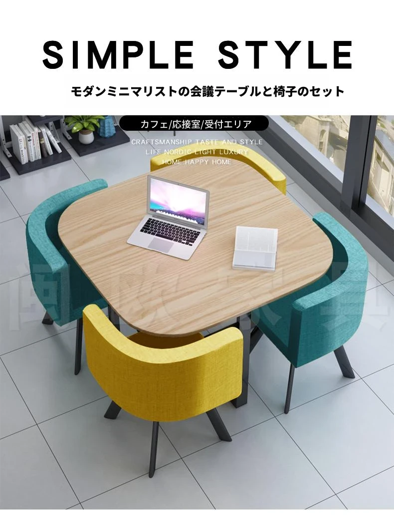 北欧スタイルのシンプルなオフィス用四角テーブルと椅子のセット。会議やカジュアルな打ち合わせに最適な小型ラウンドテーブルと椅子のコンビネーション。おしゃれで機能的なデザインが、店舗やオフィスの雰囲気を引き立てます!