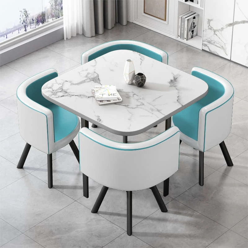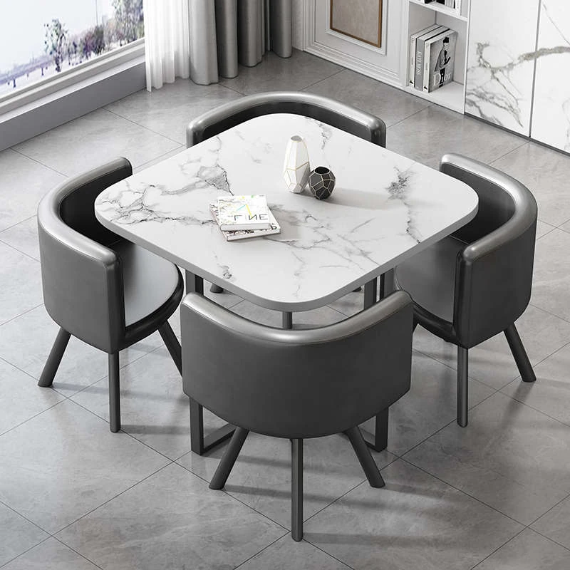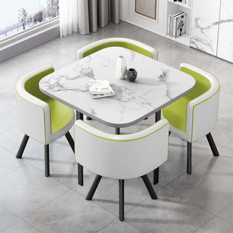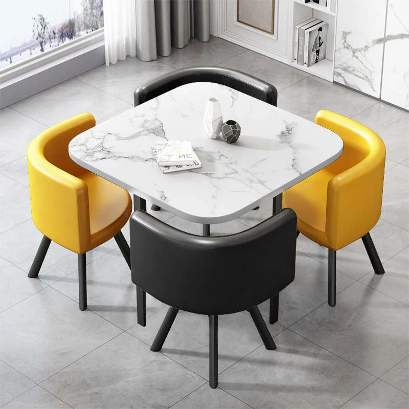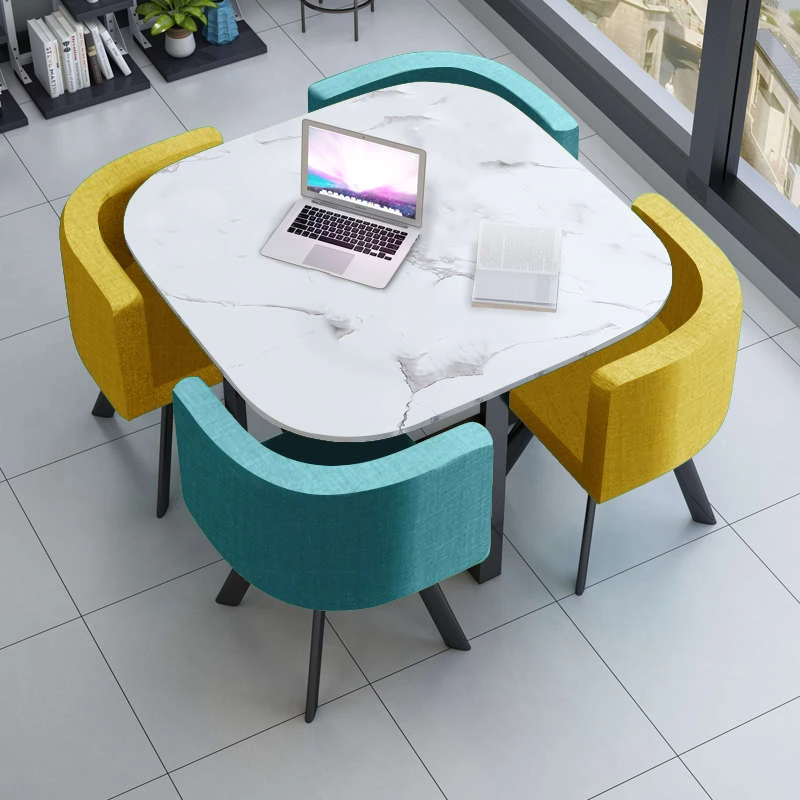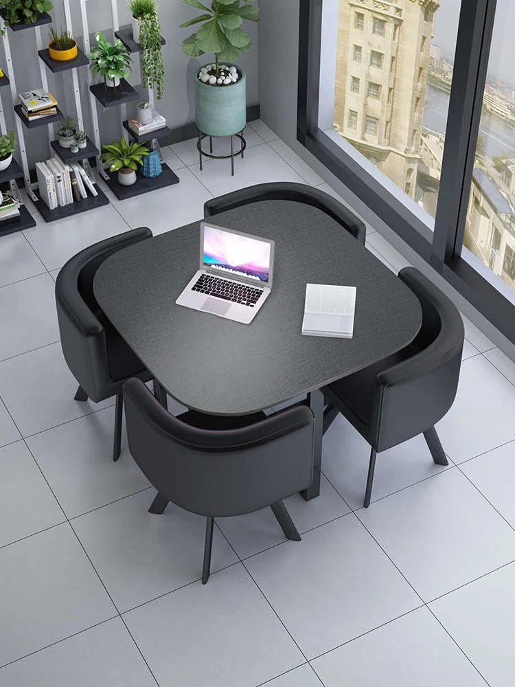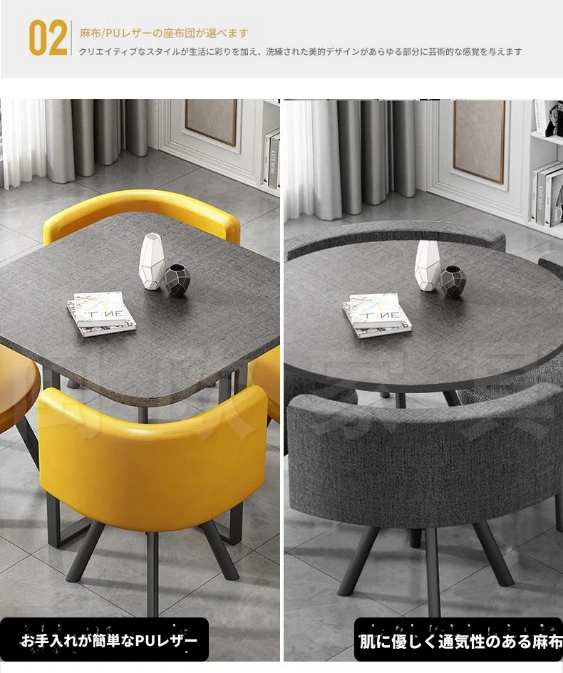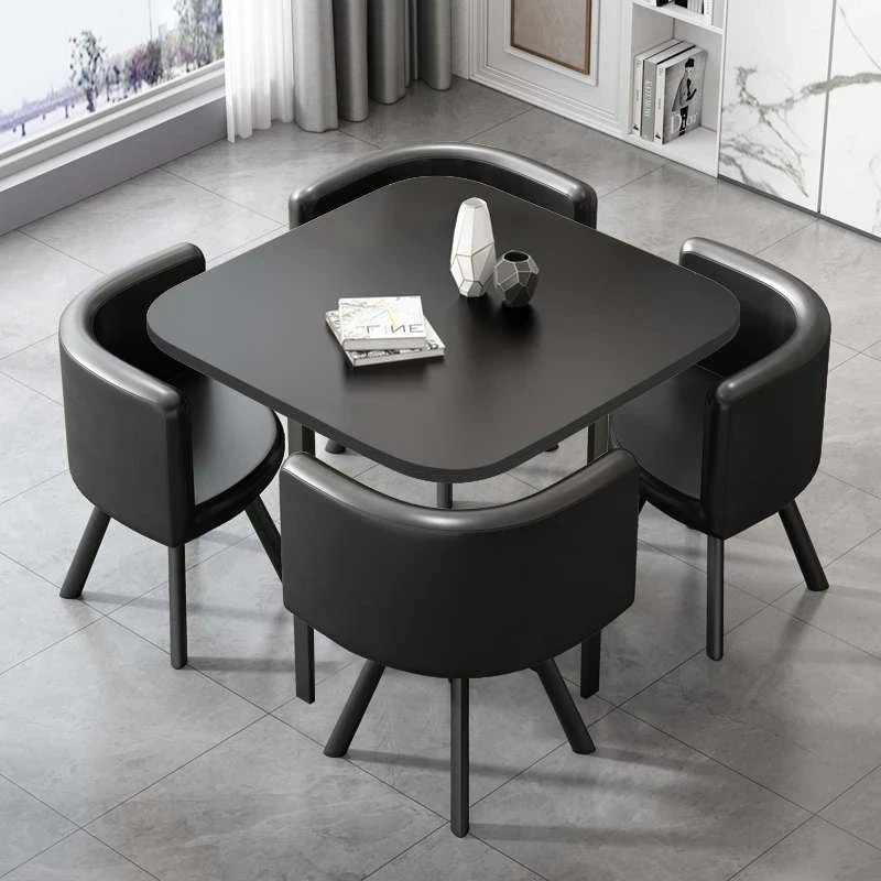 北欧スタイルのシンプルなオフィス用四角テーブルと椅子のセット。会議やカジュアルな打ち合わせに最適な小型ラウンドテーブルと椅子のコンビネーション。おしゃれで機能的なデザインが、店舗やオフィスの雰囲気を引き立てます!