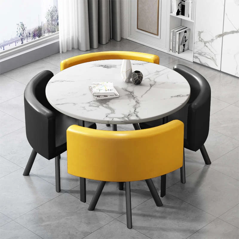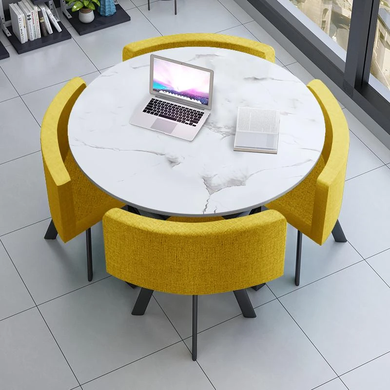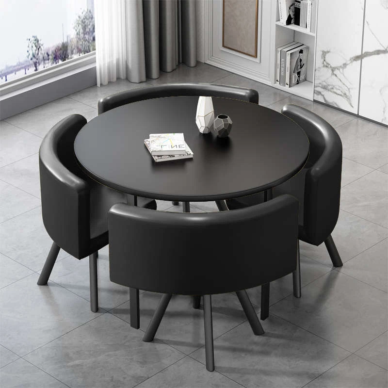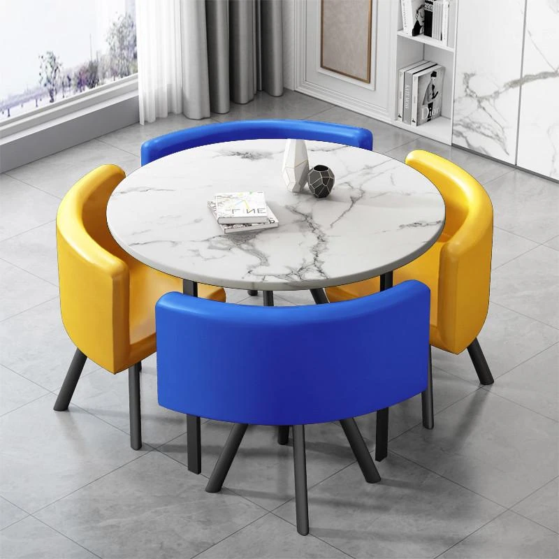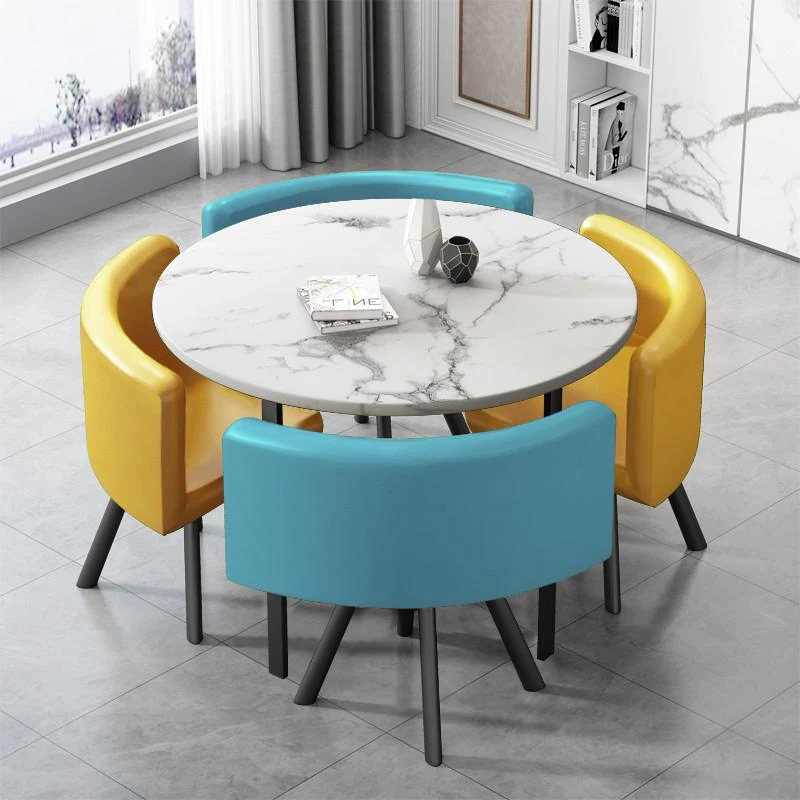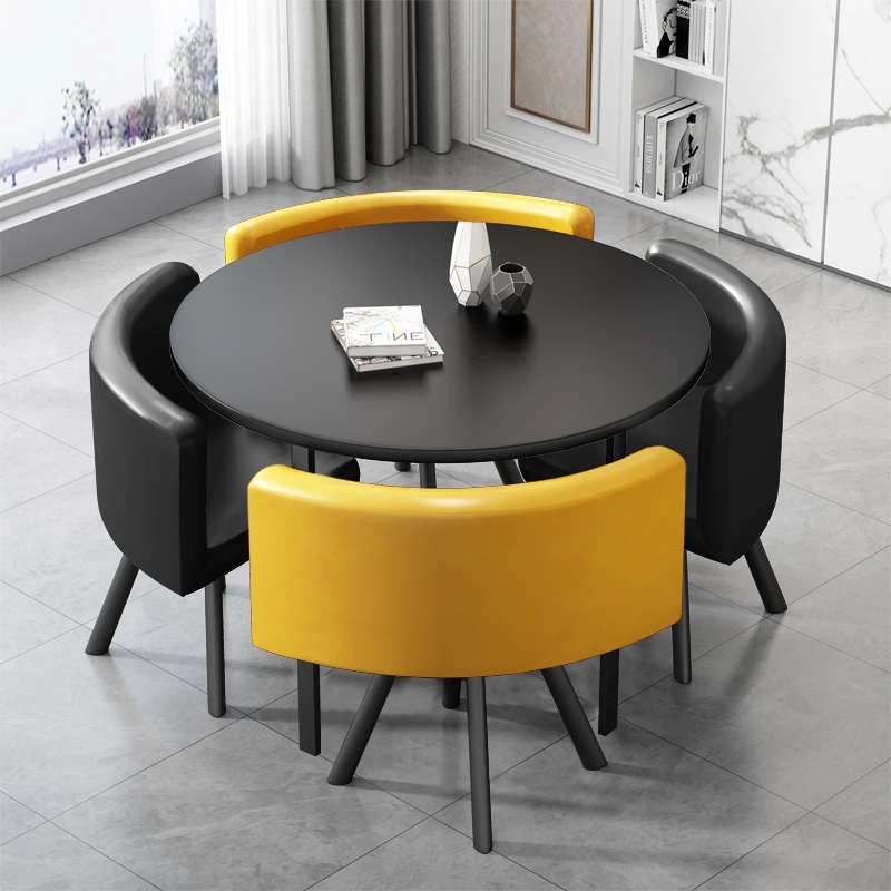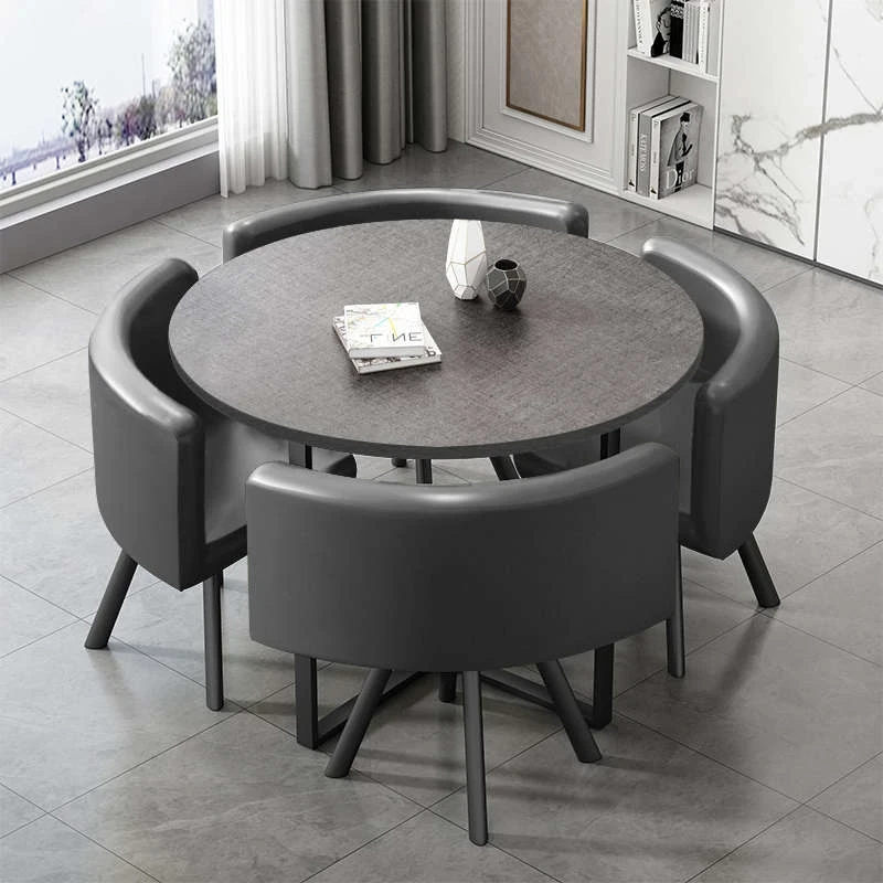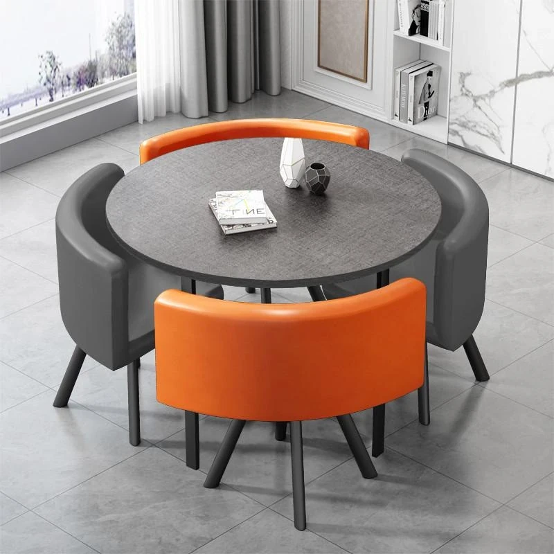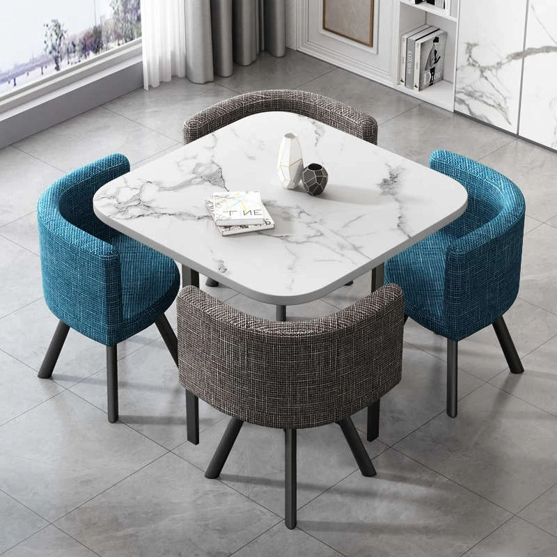 北欧スタイルのシンプルなオフィス用四角テーブルと椅子のセット。会議やカジュアルな打ち合わせに最適な小型ラウンドテーブルと椅子のコンビネーション。おしゃれで機能的なデザインが、店舗やオフィスの雰囲気を引き立てます!
