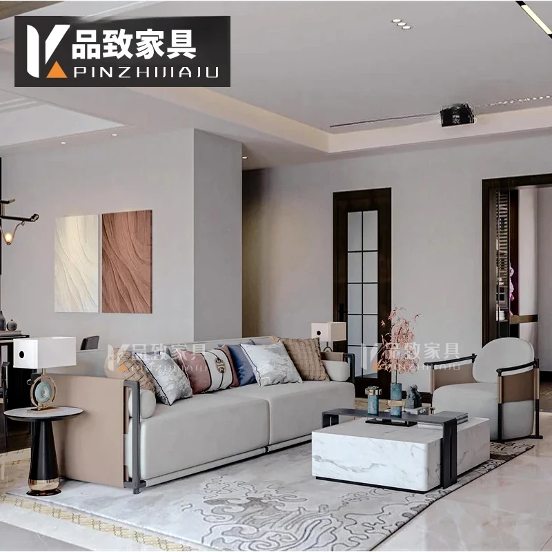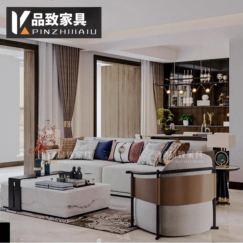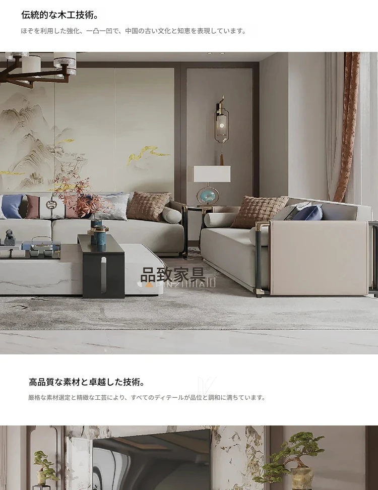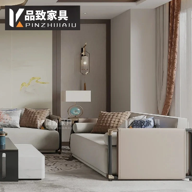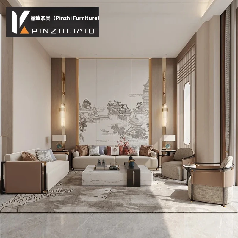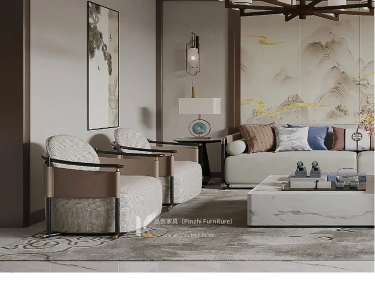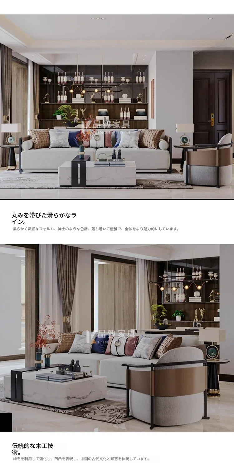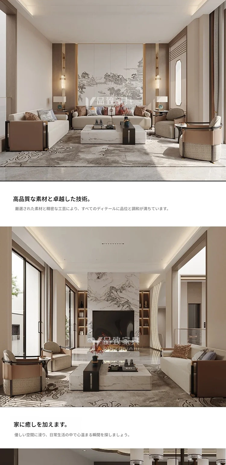 新中式スタイルのシンプルでモダンなソファセット - 高級感あふれるデザインで、モデルルームや別荘、ホテル、会所にぴったりの実木家具。快適な空間を演出し、心地よいひとときをお届けします。