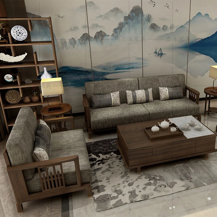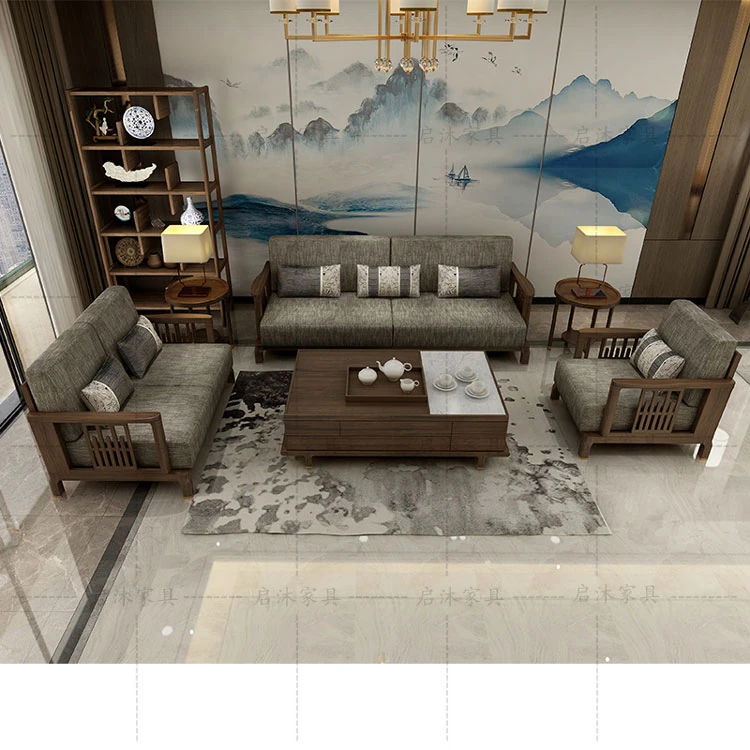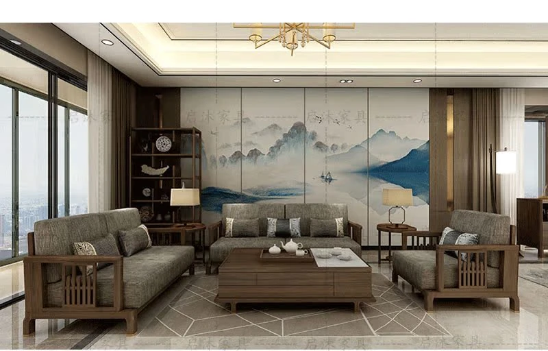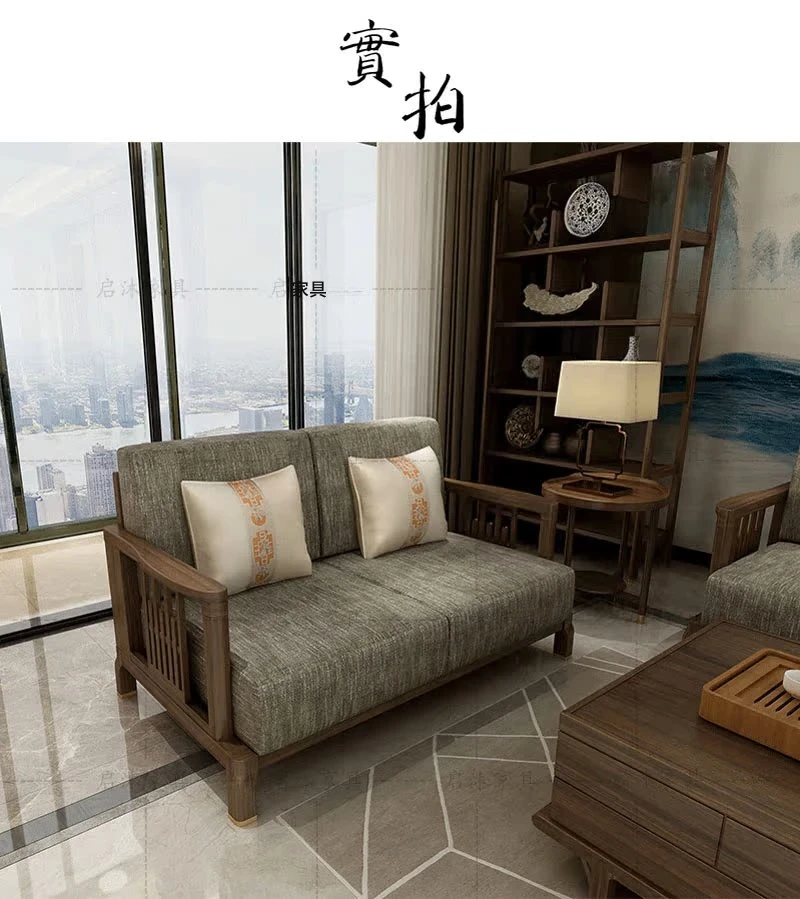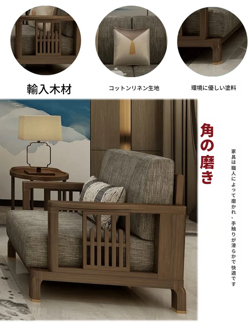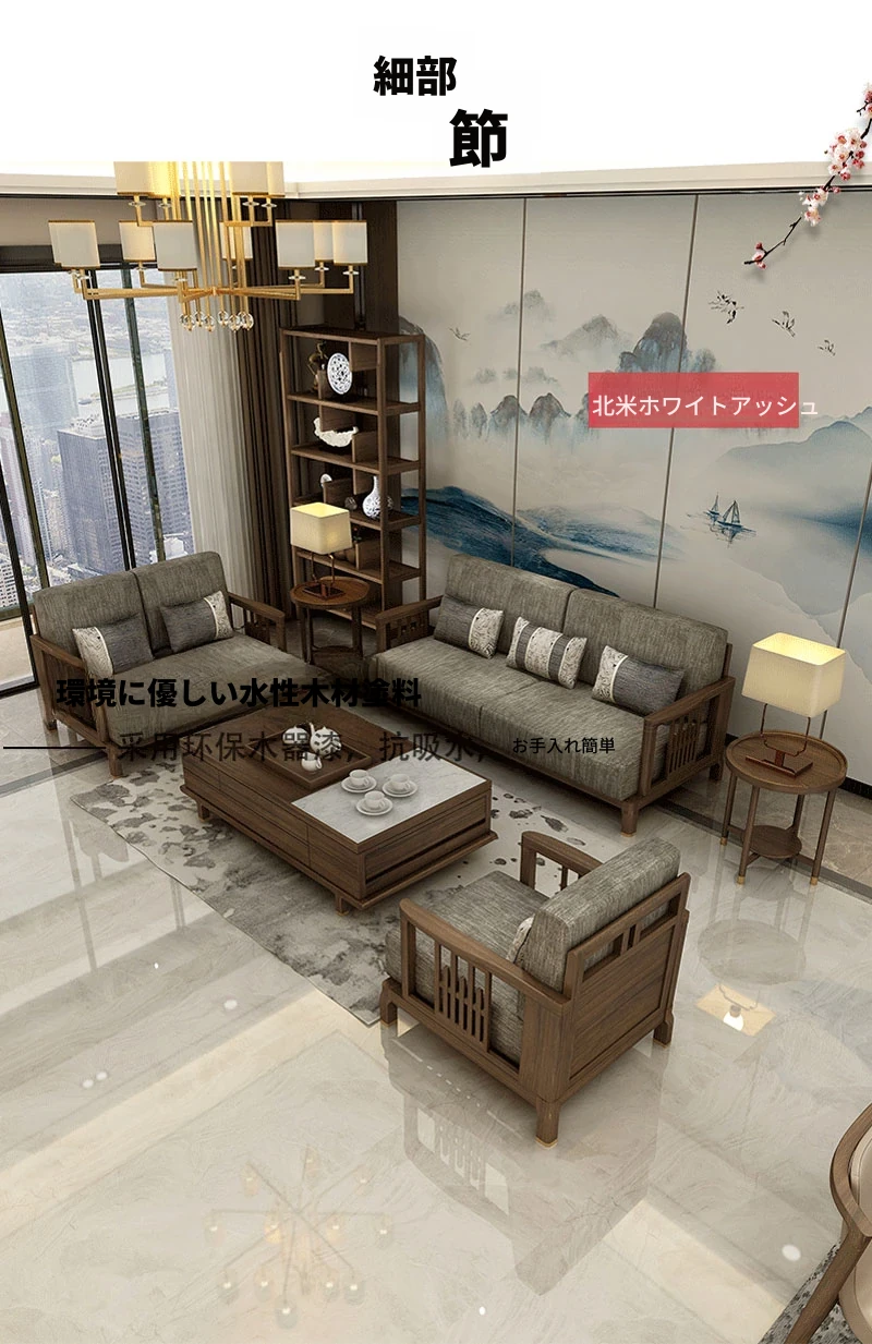 新中式デザインの無垢材ソファセット|現代的なビジネスオフィスや商談、モデルルーム、クラブの接待に最適な高級家具。心地よい空間を演出し、訪れる人々に印象を与えます。