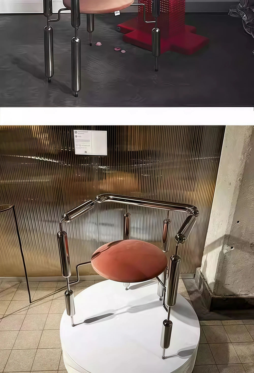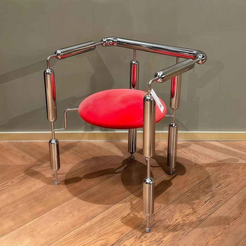 現代的なクリエイティブステンレススチール製ビションフリーゼデザインのダイニングチェア、スタイリッシュなアームレスト付きのリラックス一人掛け椅子。洗練された空間にぴったりの一品!