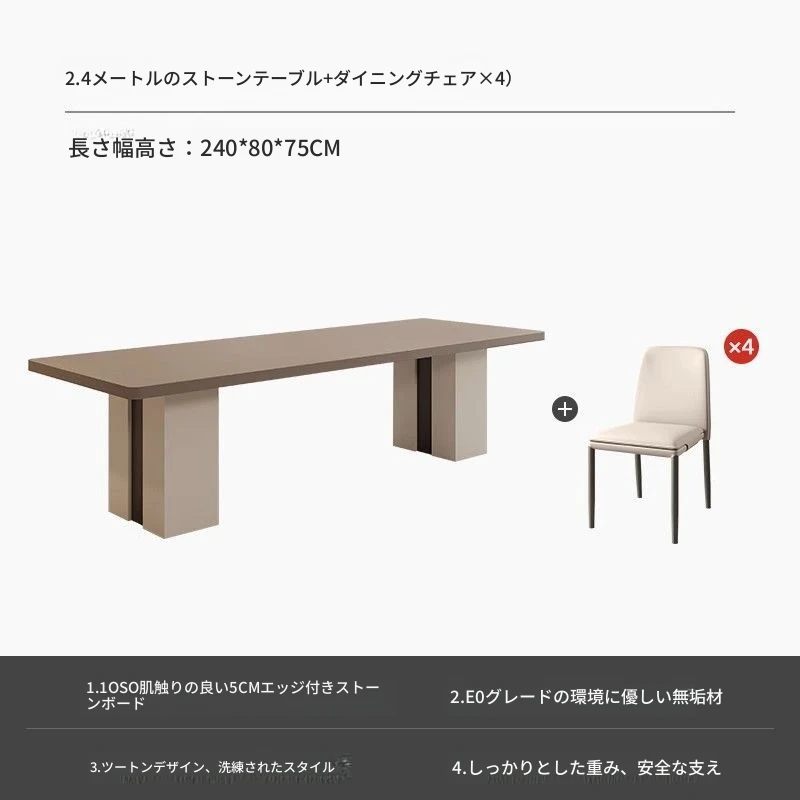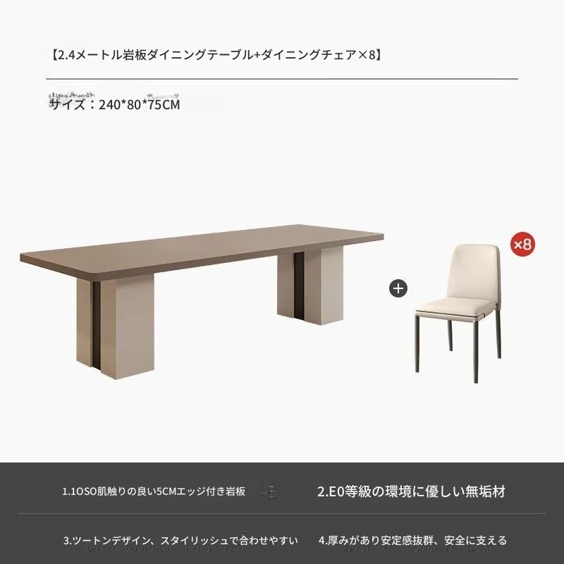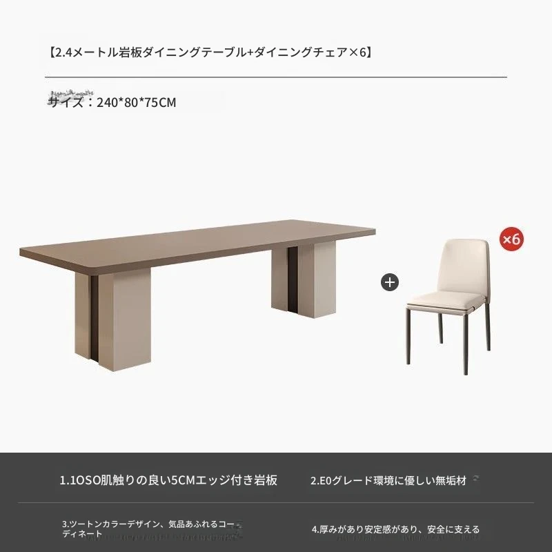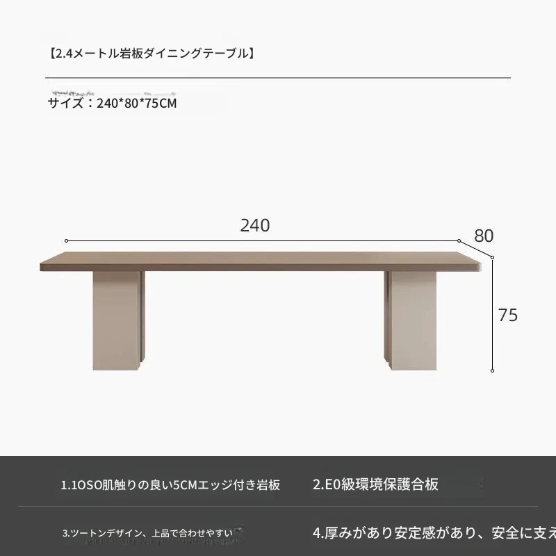 2.4メートルのダイニングテーブル【岩板5cmエッジ付き】