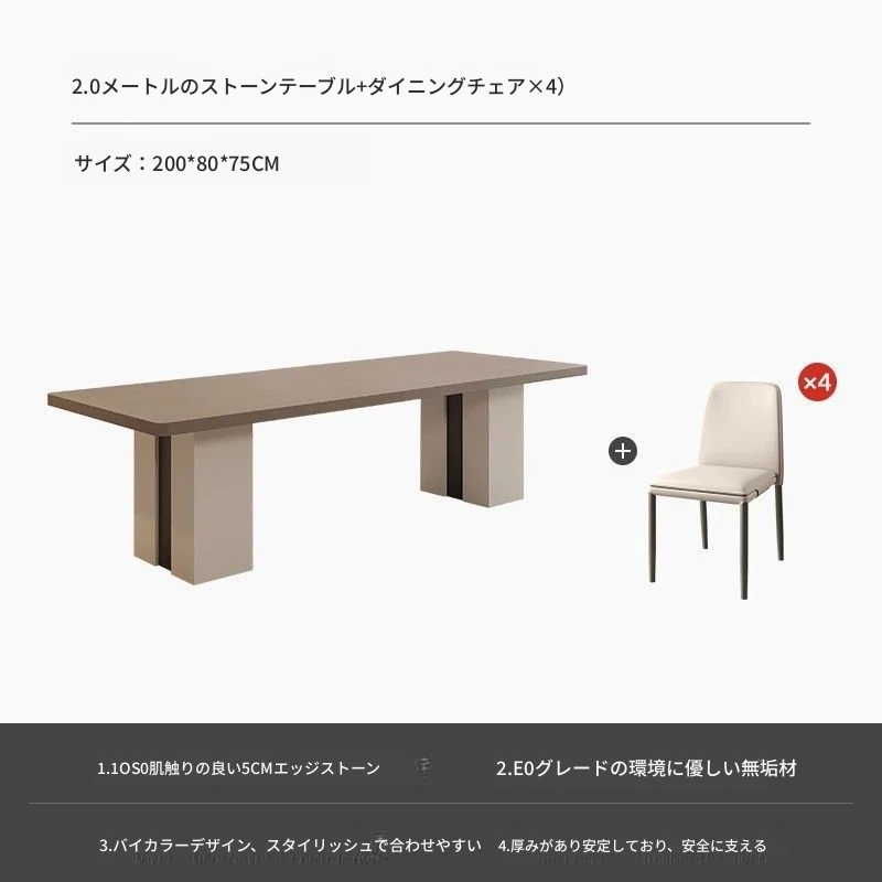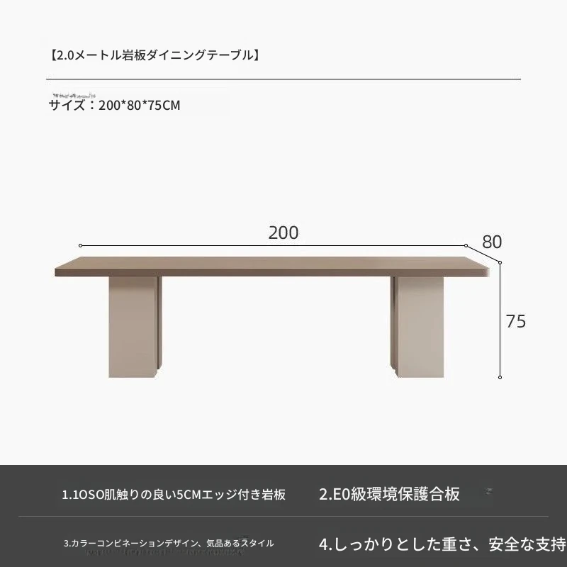 2メートルのダイニングテーブル【岩板5cmエッジ付き】