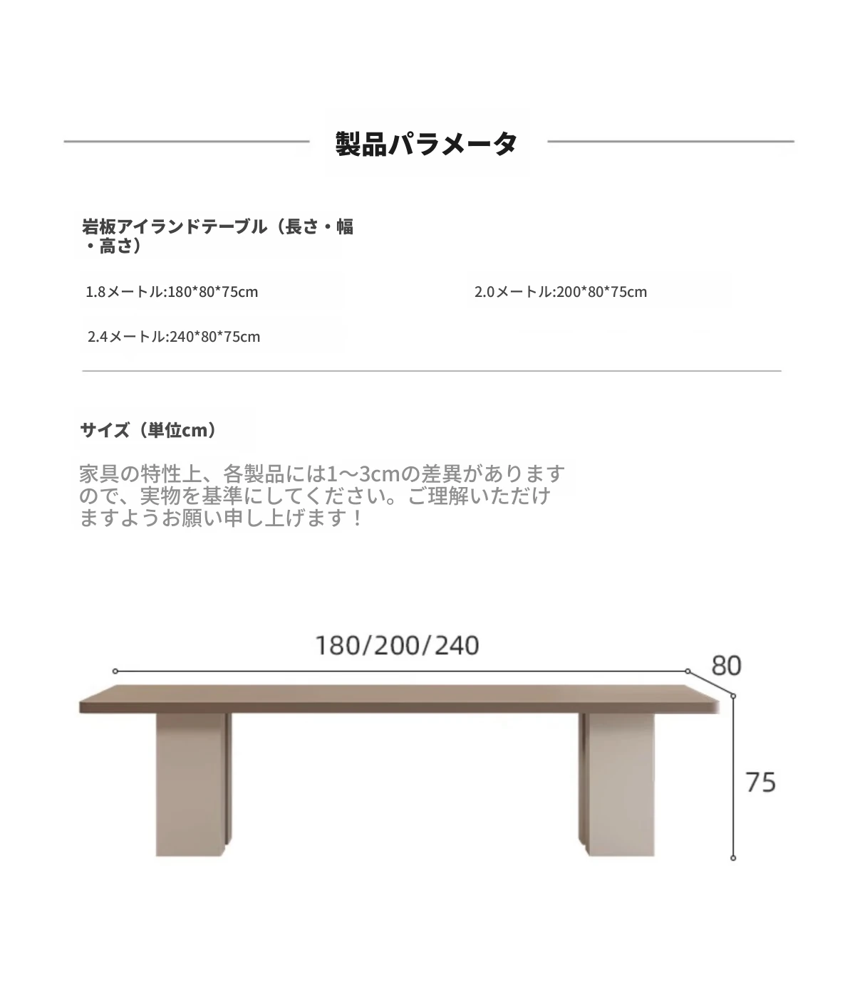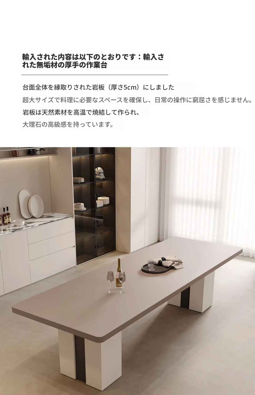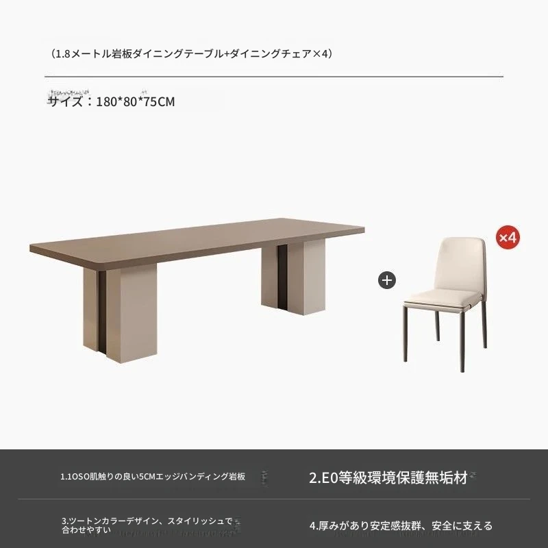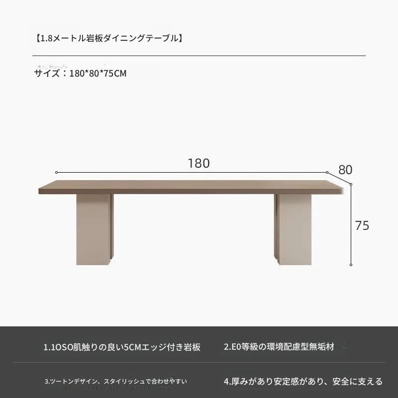 1.8メートルのダイニングテーブル【岩板5cmエッジ付き】