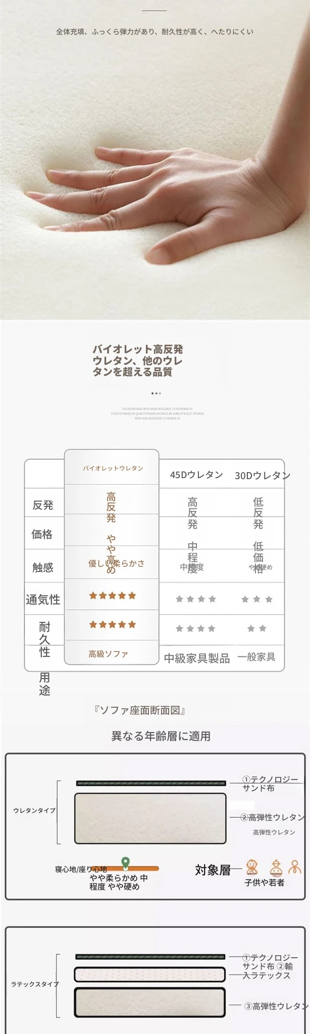 (トリプルタイプ)アームレスト付き1.8mラテックス+エコ紫バイオレットウレタン