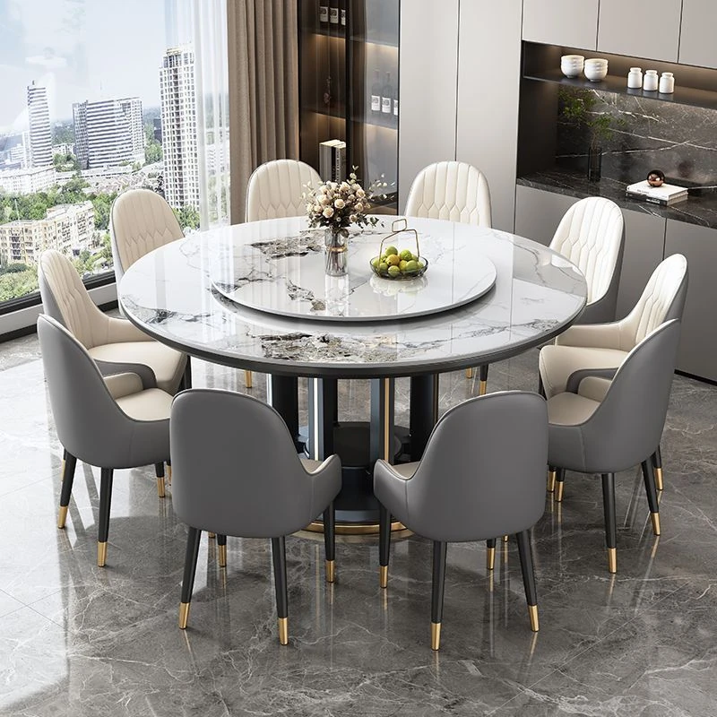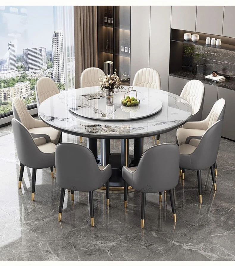 現代的なシンプルデザインのラウンドテーブル - 軽やかな贅沢感を演出する回転式ダイニングテーブル。省スペースで使いやすい、家庭用に最適な円形テーブルと椅子のセット。