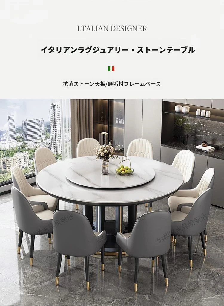 1.6メートルのダイニングテーブル+12椅子【100CM回転台】