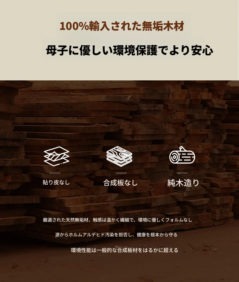 0.95mブナ材ナチュラルミルクホワイト950*(838-2080)*770mm