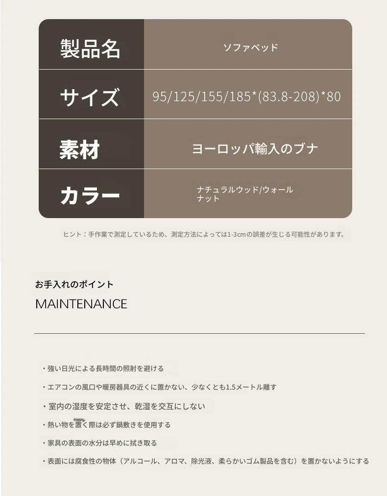 0.95mブナ材ウォールナットミルクホワイト950*(838-2080)*770mm