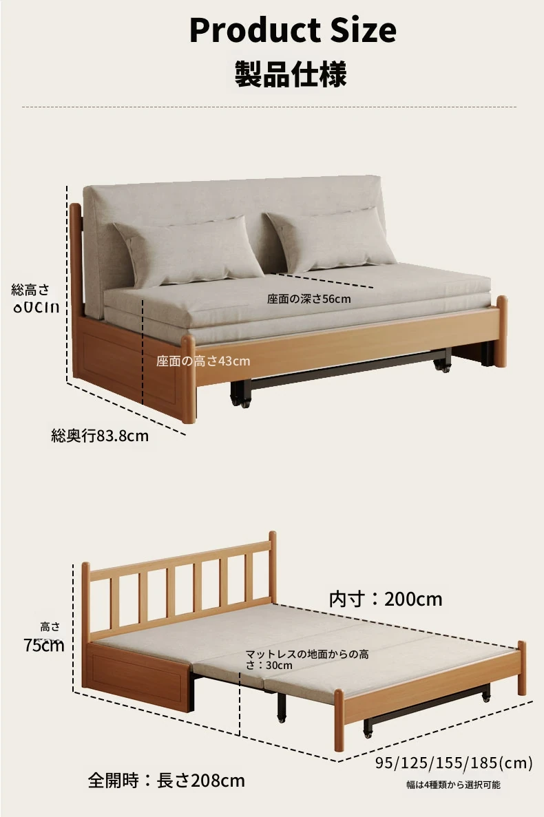 1.85mブナ材ナチュラルミルクホワイト1850*(838-2080)*770mm