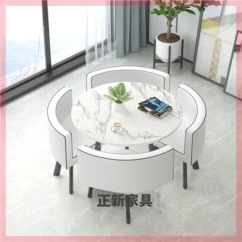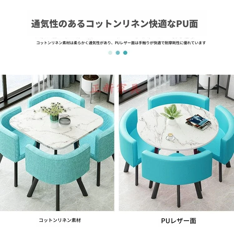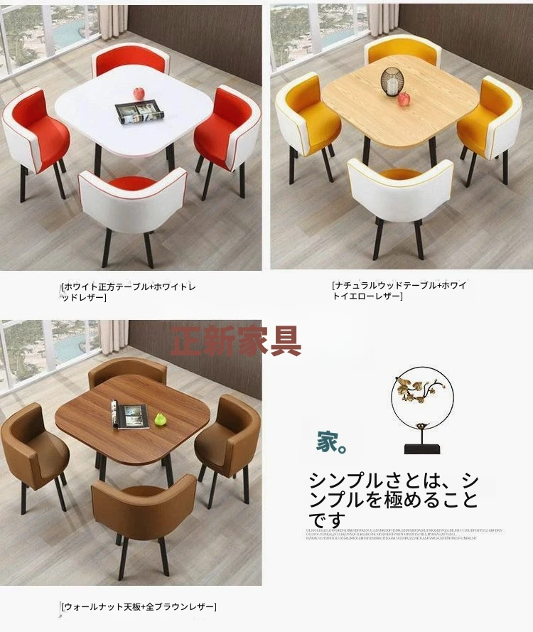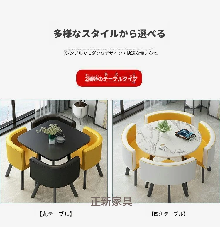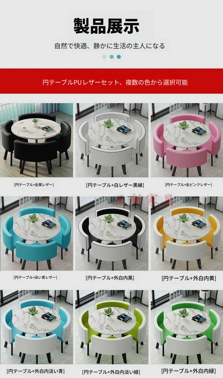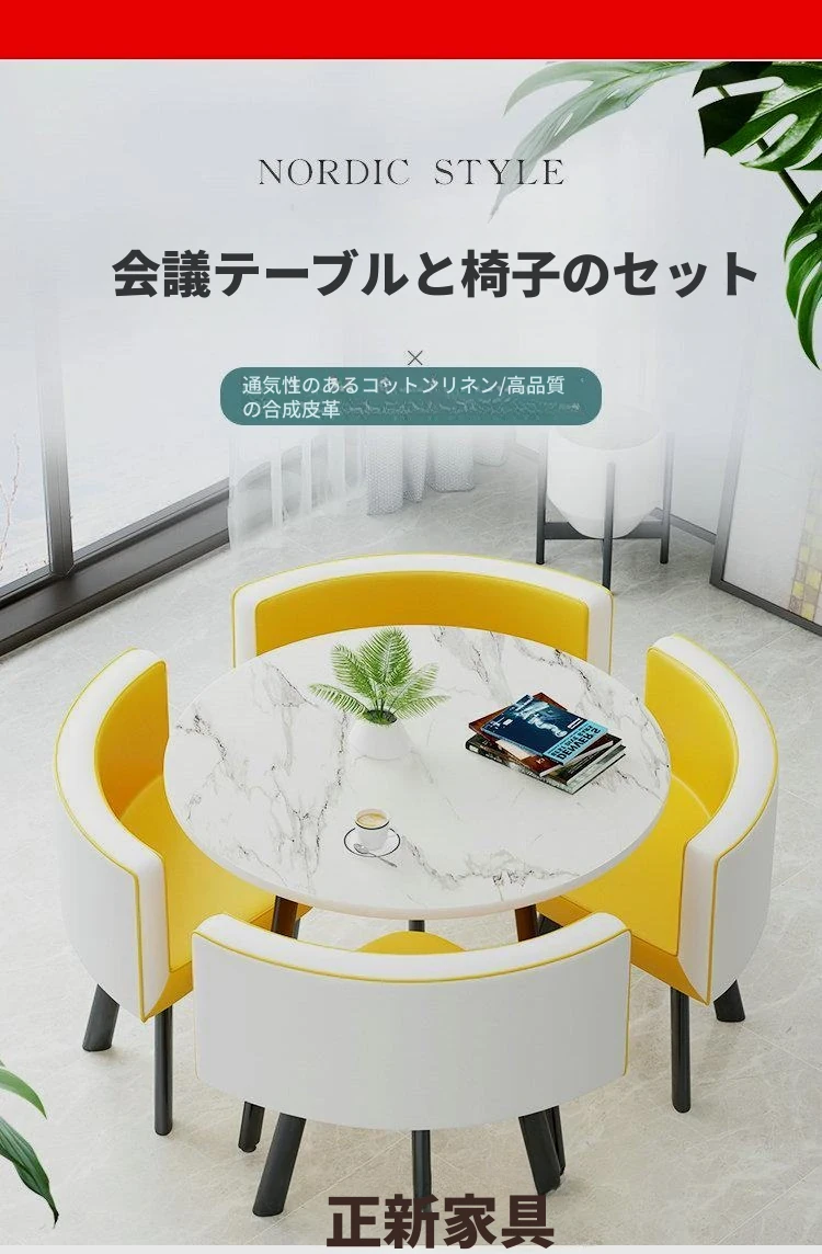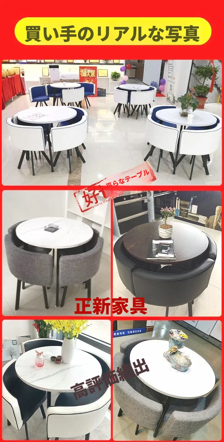 シンプルでモダンな接客用テーブル&チェアセット - リラックスできる休憩スペースに最適!北欧スタイルの小型ラウンドテーブルとダイニングテーブル、販売店やオフィスに最適なデザイン。おしゃれで機能的な空間を演出します!
