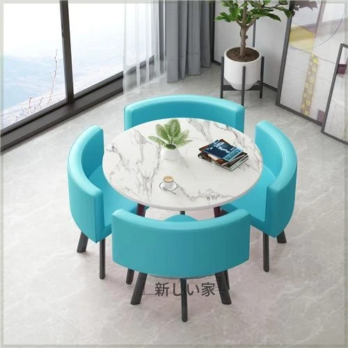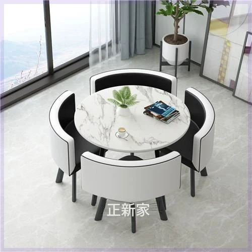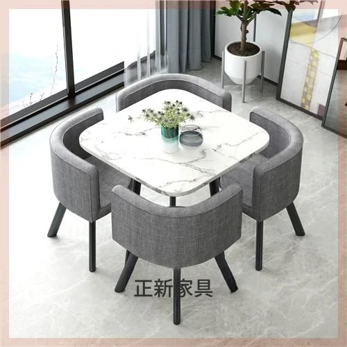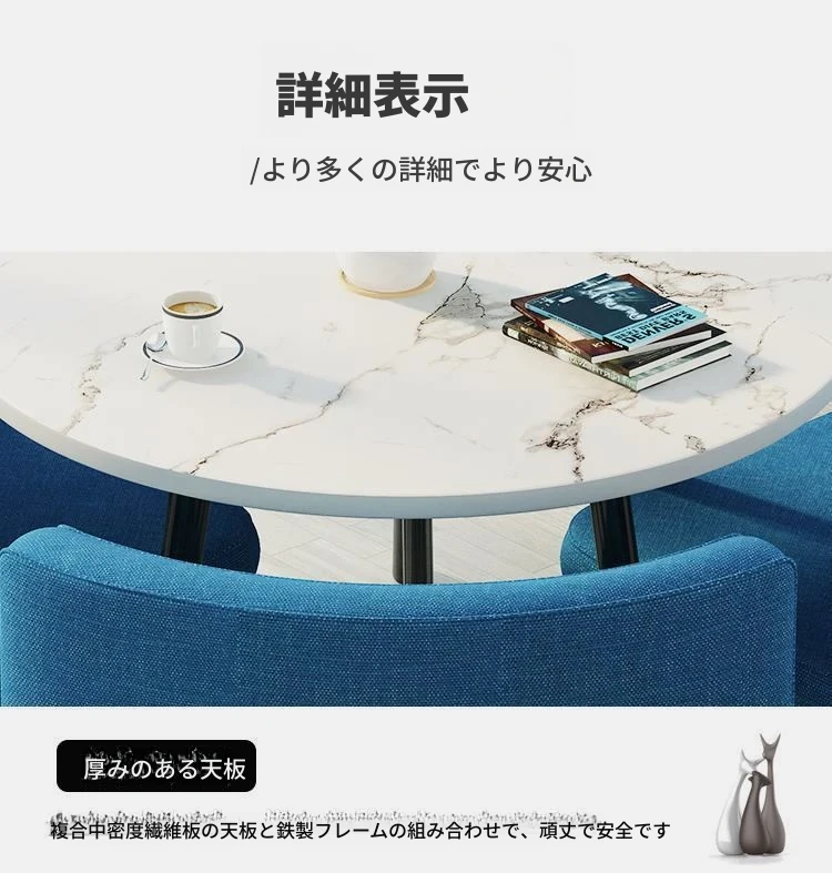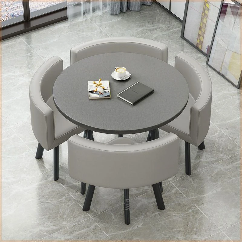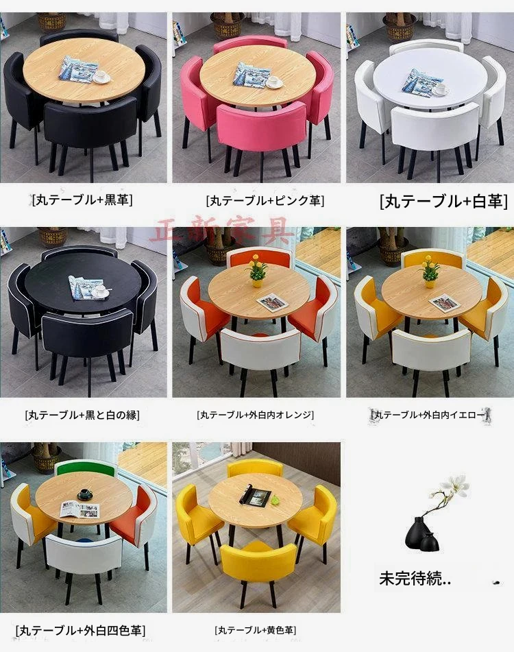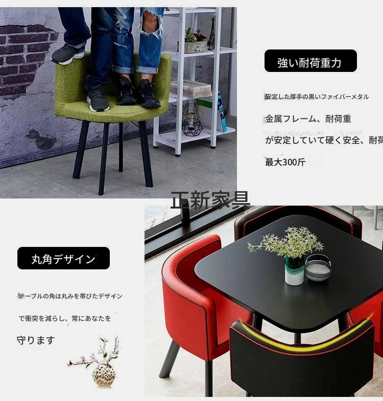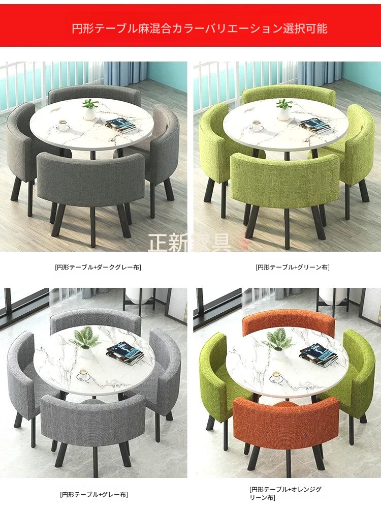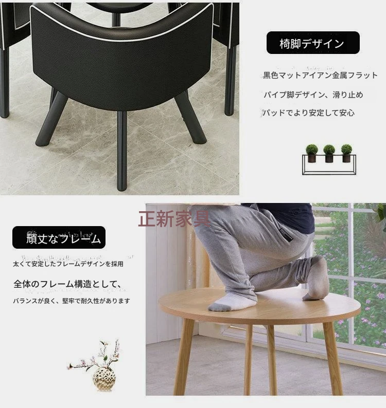 シンプルでモダンな接客用テーブル&チェアセット - リラックスできる休憩スペースに最適!北欧スタイルの小型ラウンドテーブルとダイニングテーブル、販売店やオフィスに最適なデザイン。おしゃれで機能的な空間を演出します!