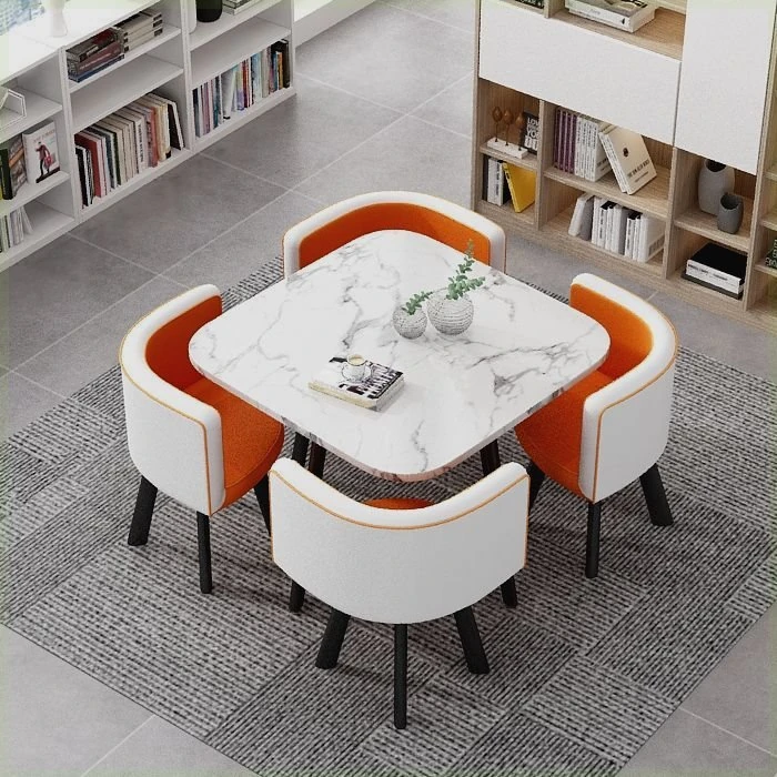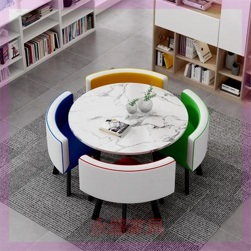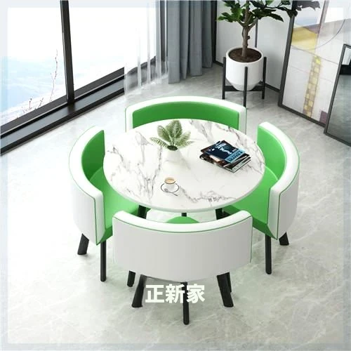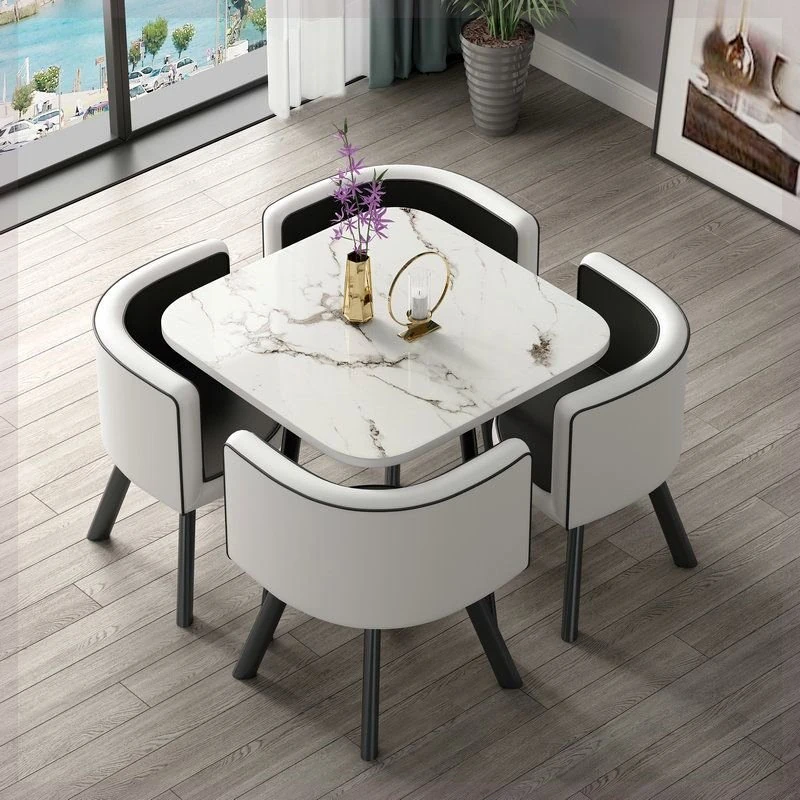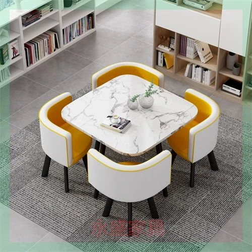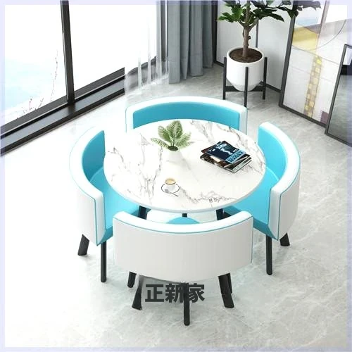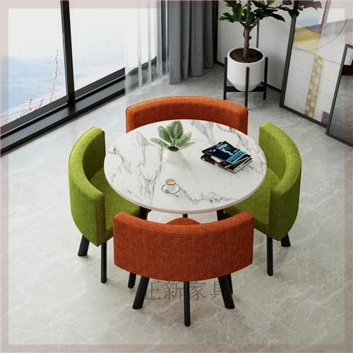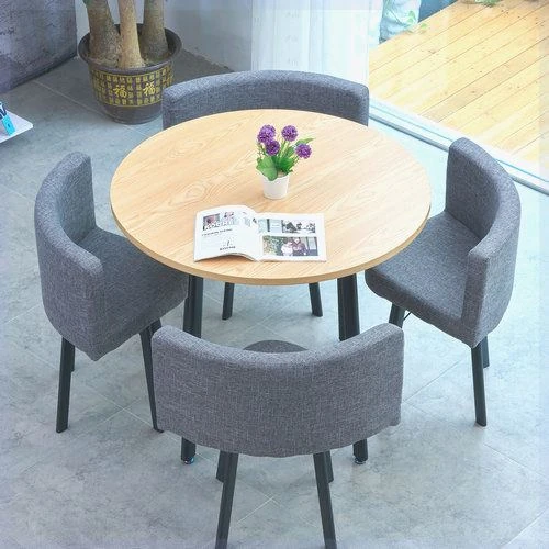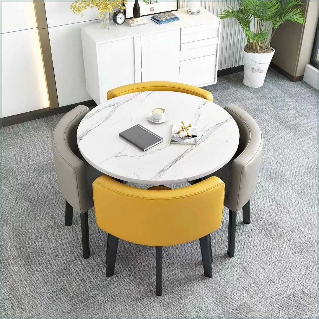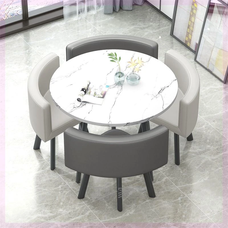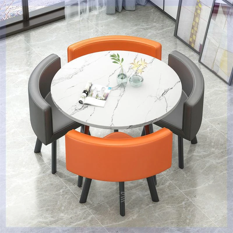 シンプルでモダンな接客用テーブル&チェアセット - リラックスできる休憩スペースに最適!北欧スタイルの小型ラウンドテーブルとダイニングテーブル、販売店やオフィスに最適なデザイン。おしゃれで機能的な空間を演出します!