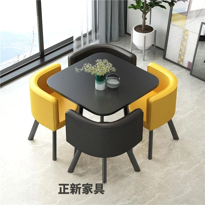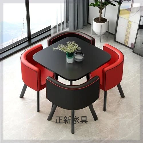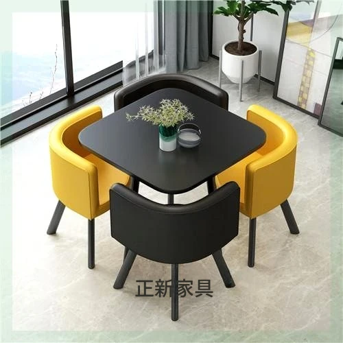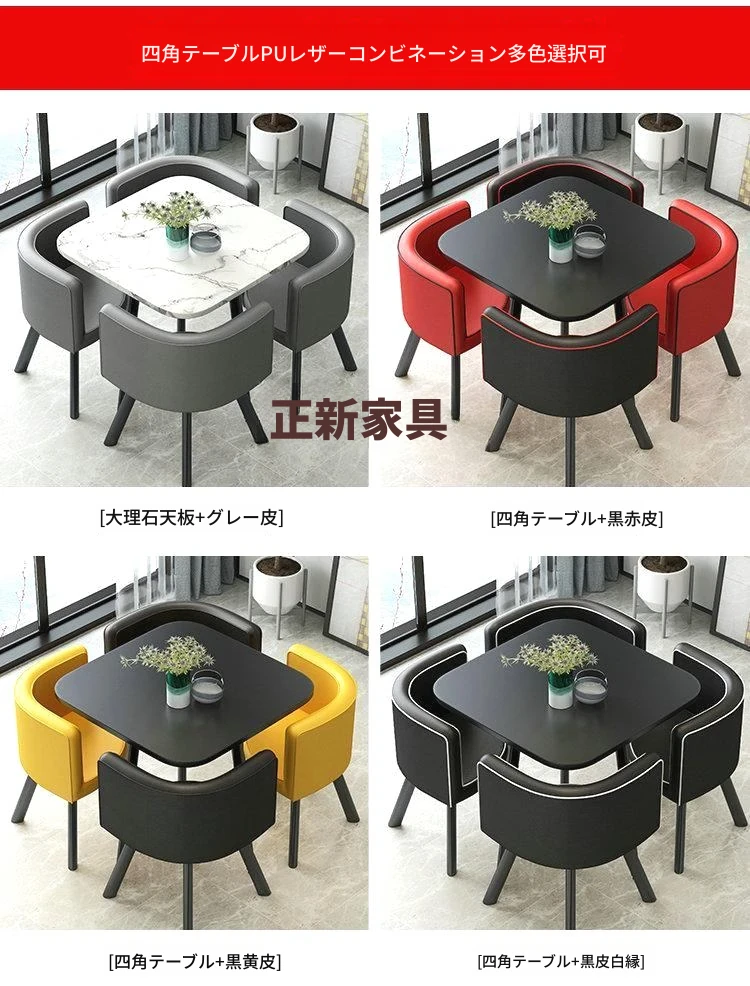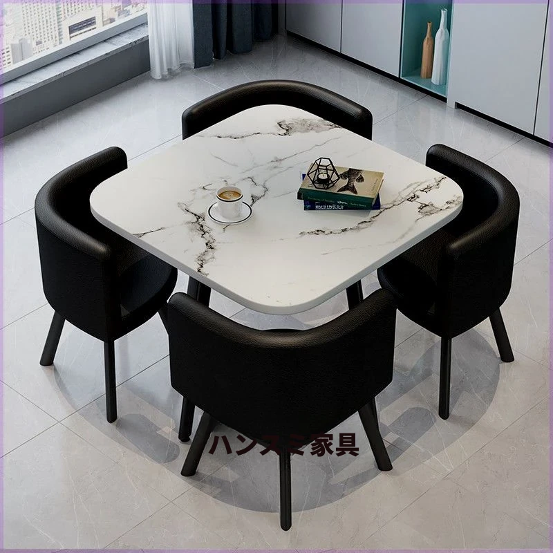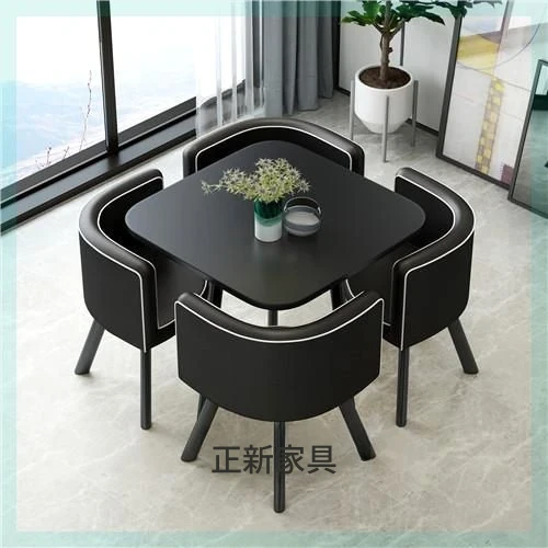 四角黒テーブル黒い白縁の皮椅子が熱売中
