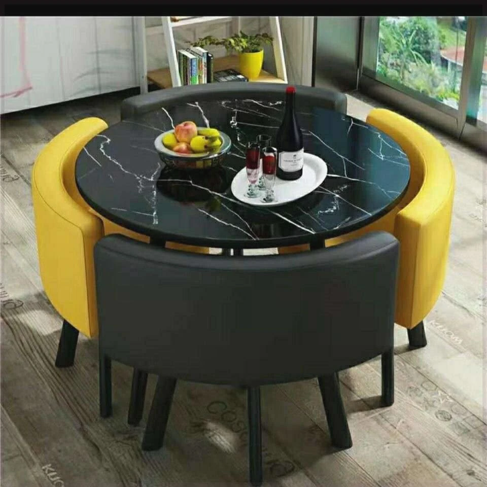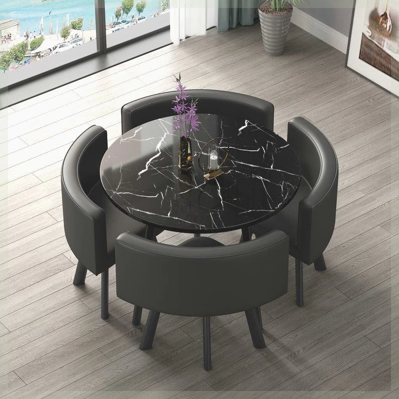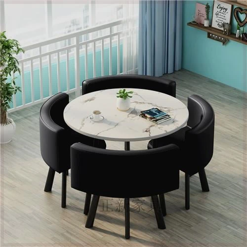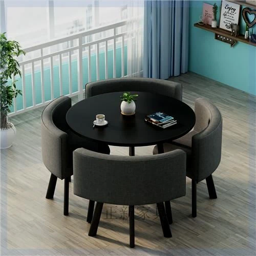 円形黒テーブル黒い白縁の皮椅子が熱売中