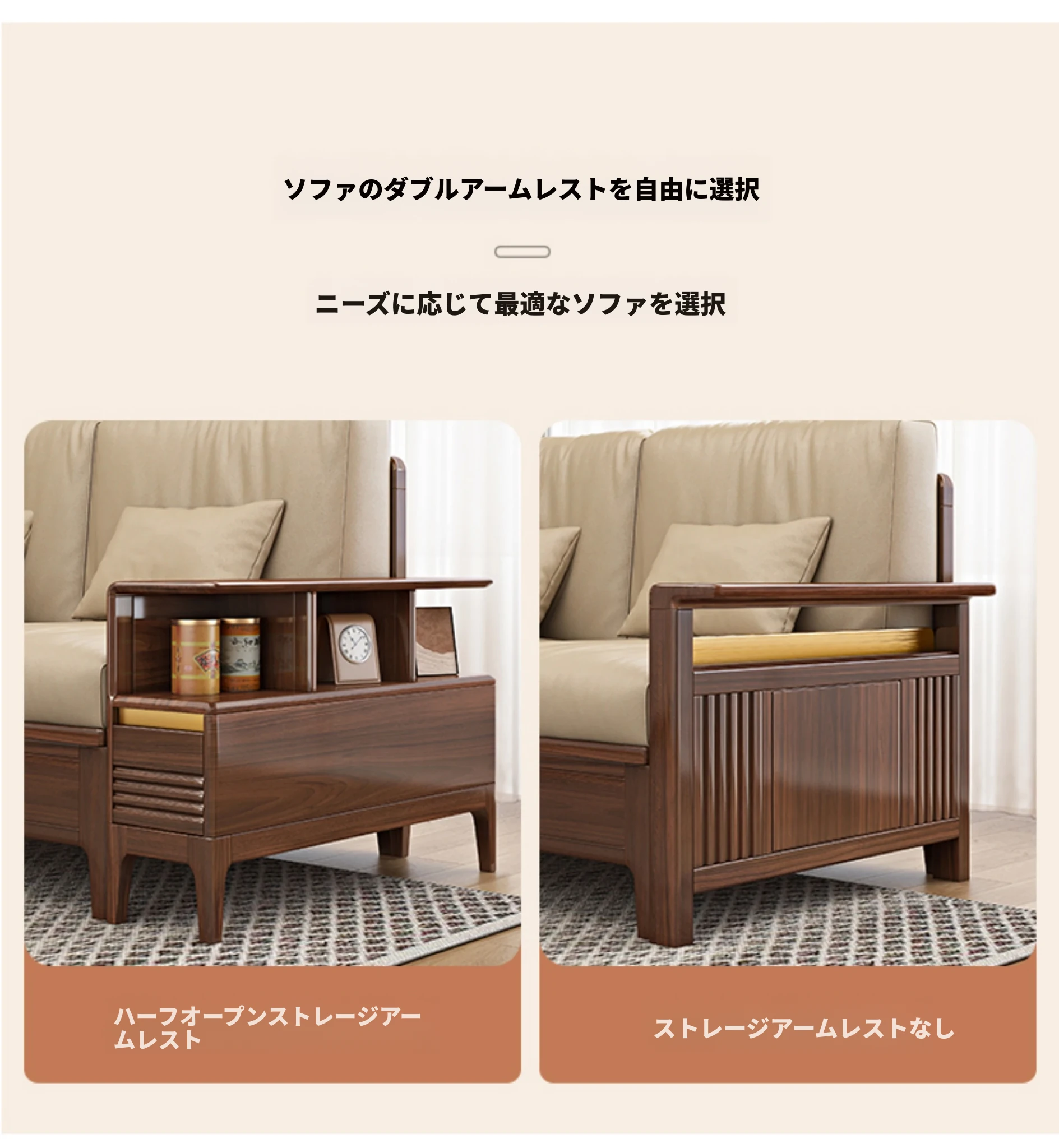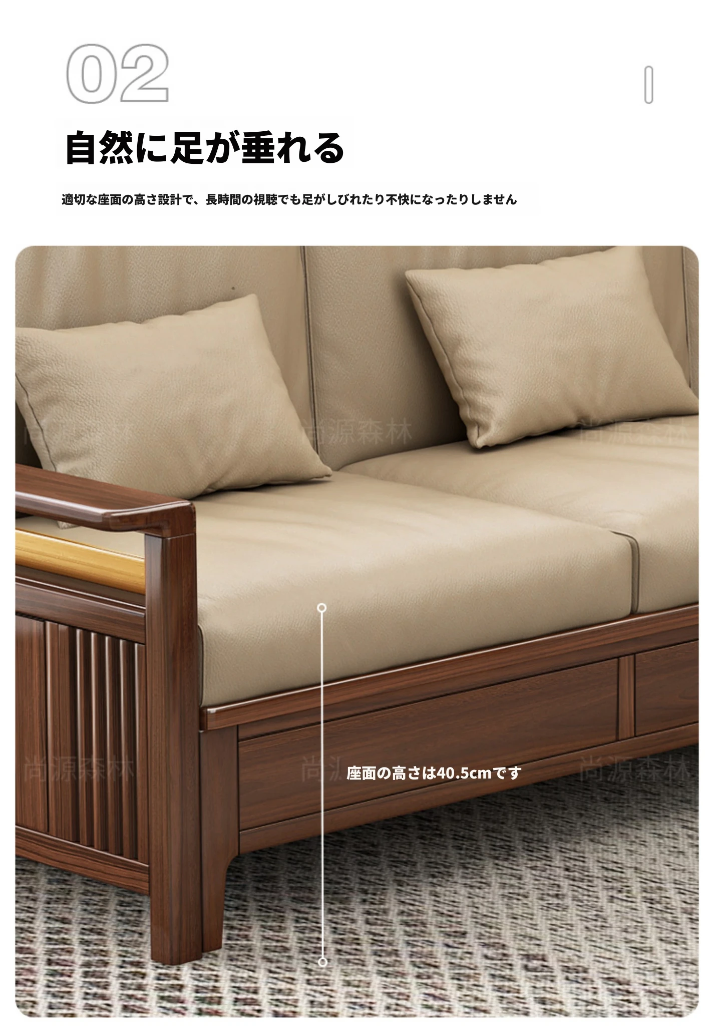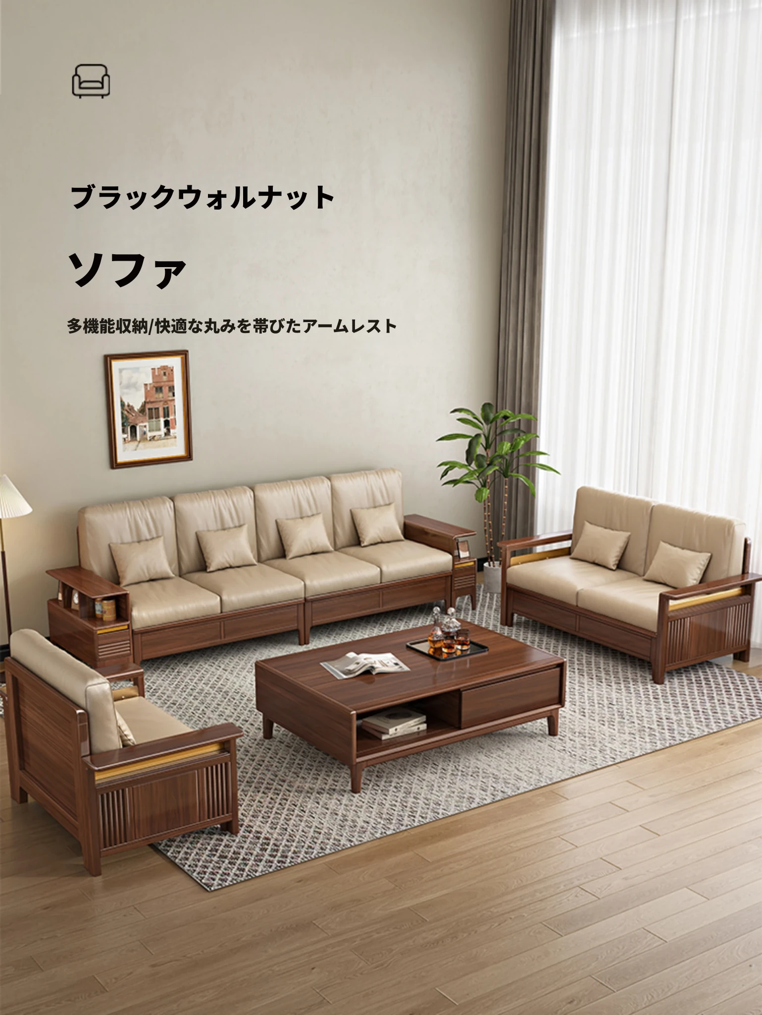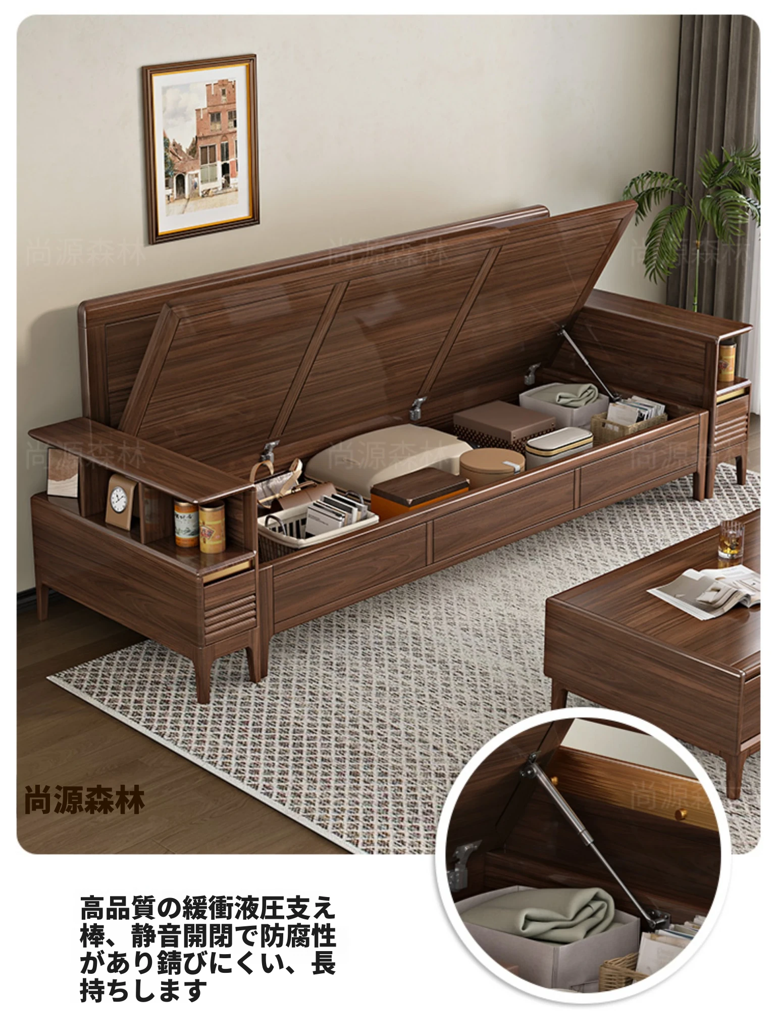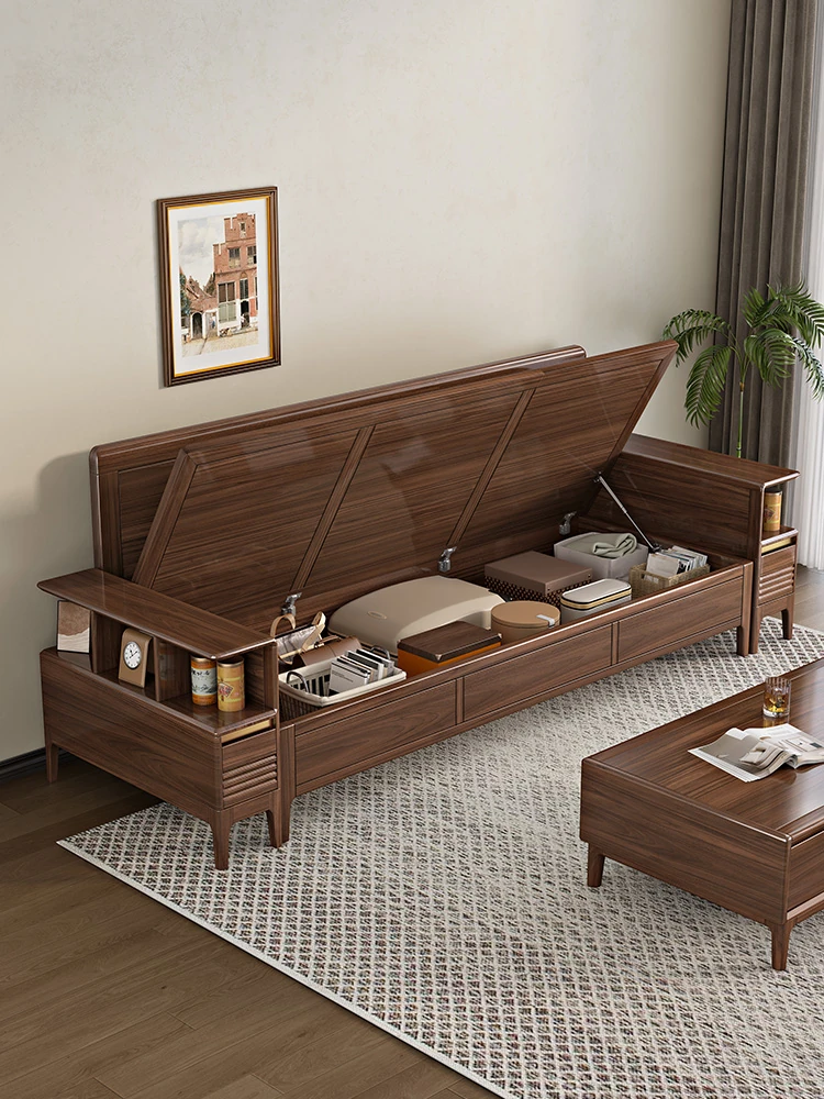 新中式デザインの高級ウォールナット無垢材ソファ - モダンでシンプル、冬夏両用、小さなスペースに最適!収納機能付きで、リビングをスタイリッシュに彩ります。