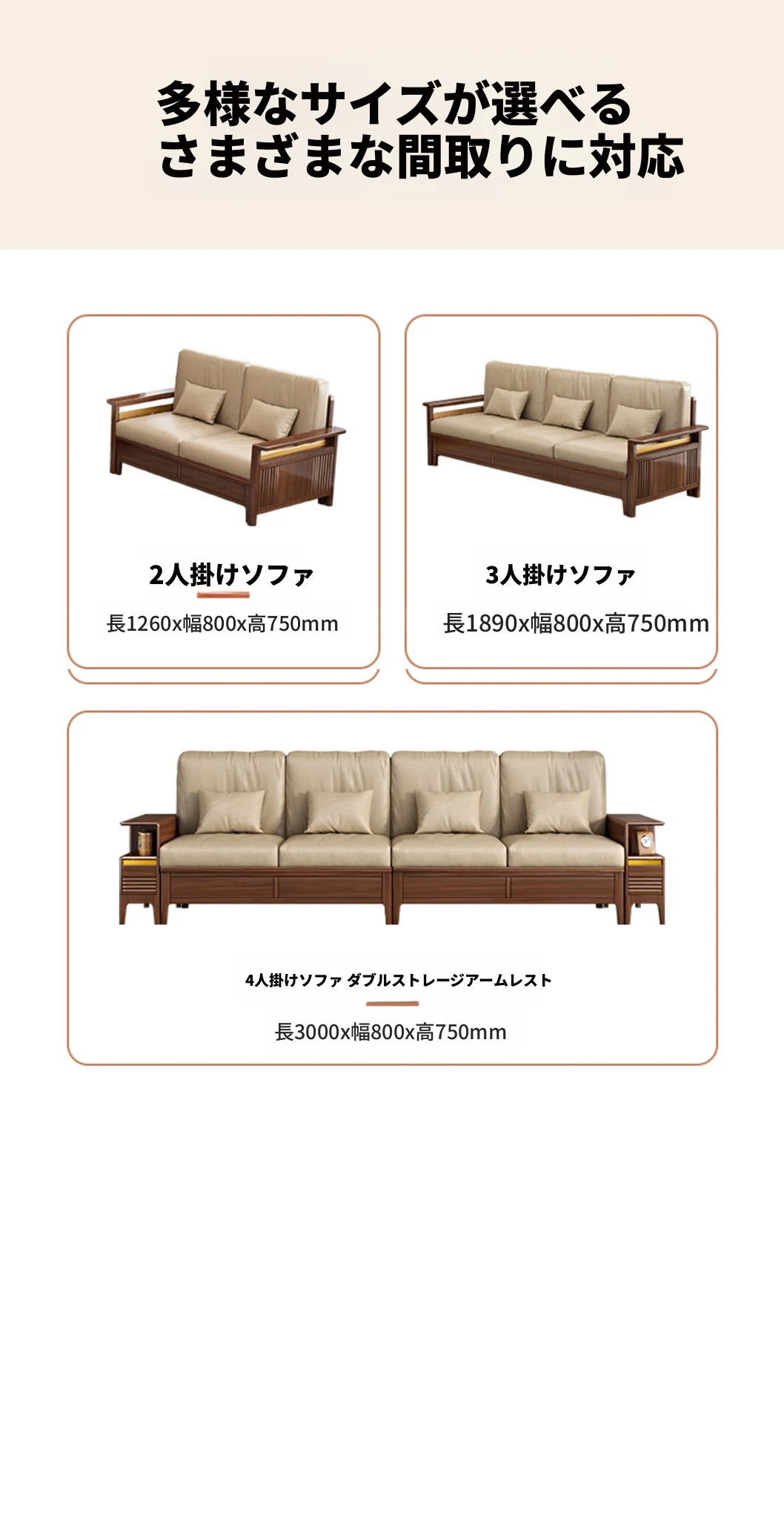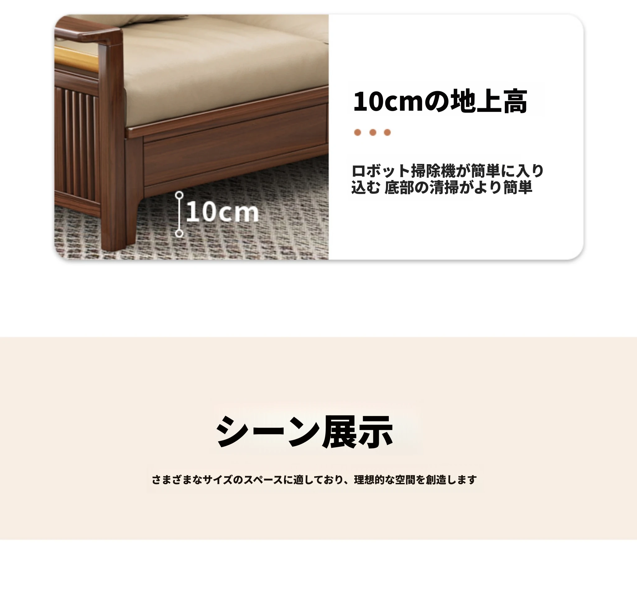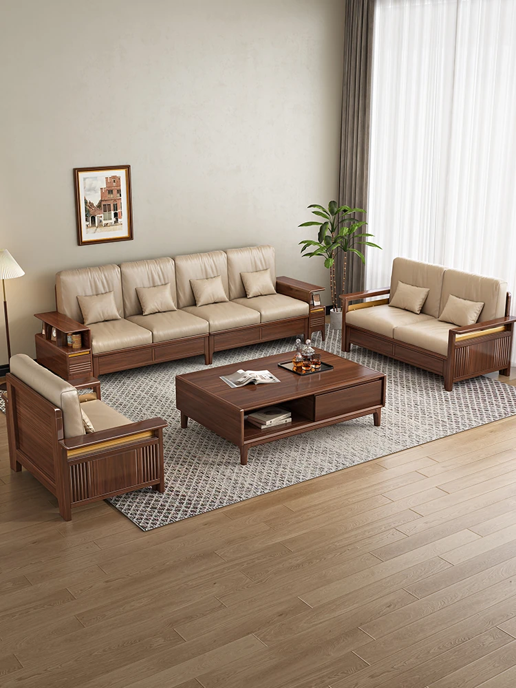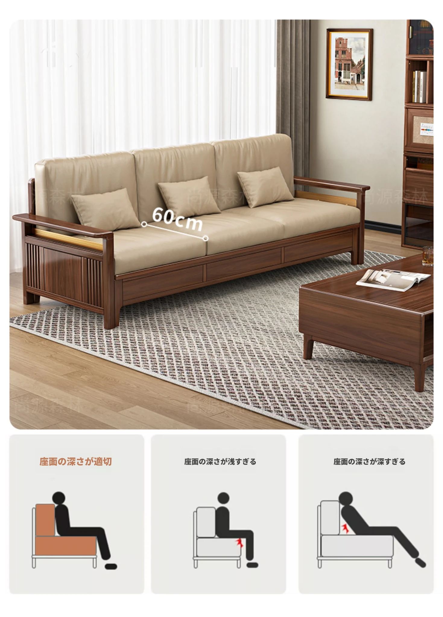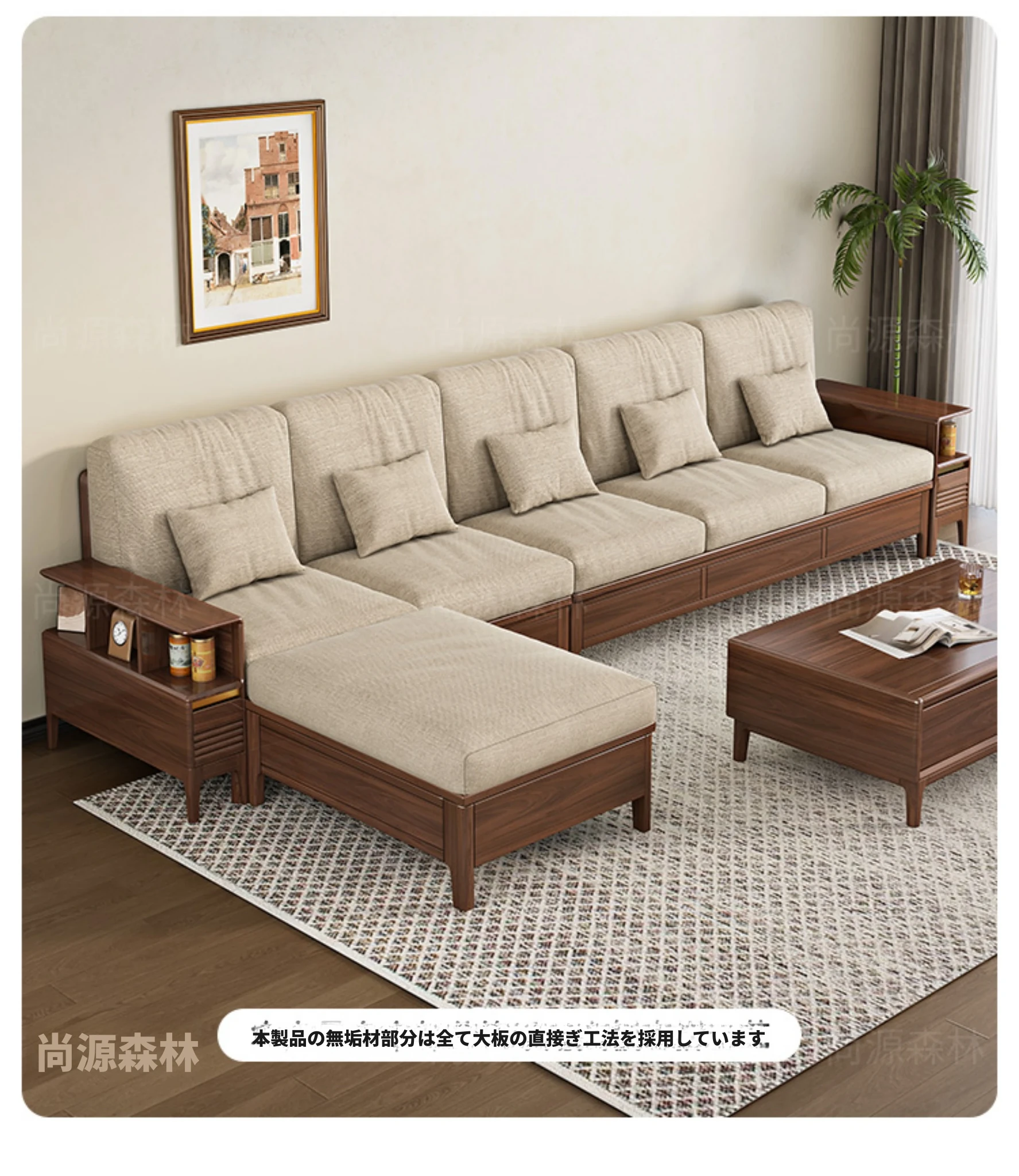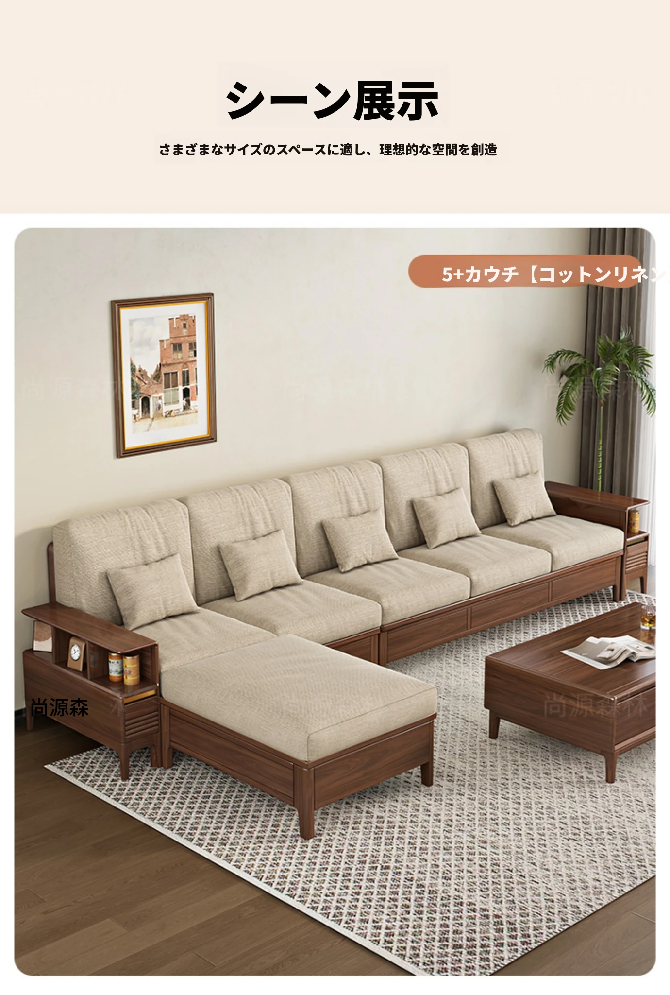 新中式デザインの高級ウォールナット無垢材ソファ - モダンでシンプル、冬夏両用、小さなスペースに最適!収納機能付きで、リビングをスタイリッシュに彩ります。