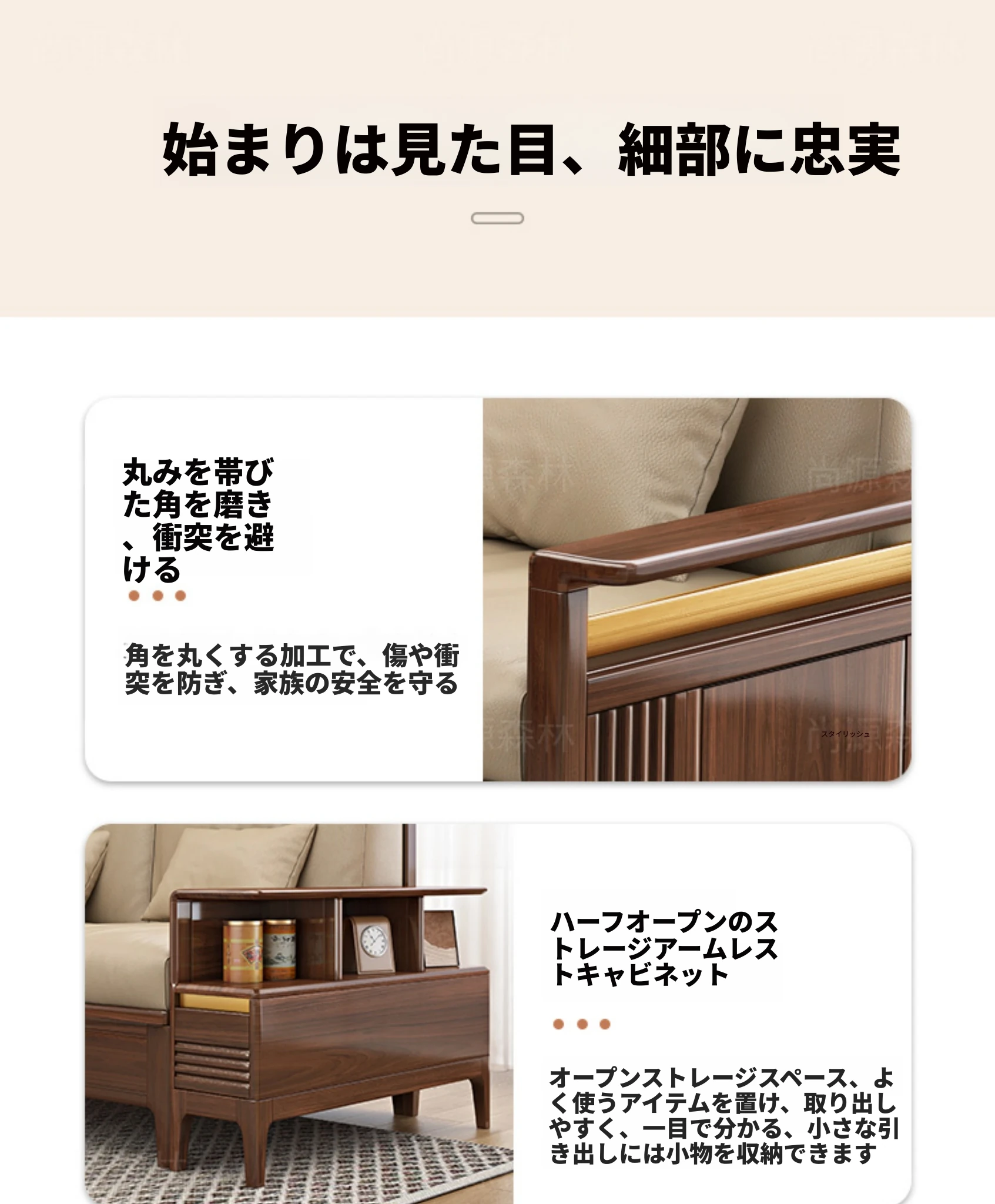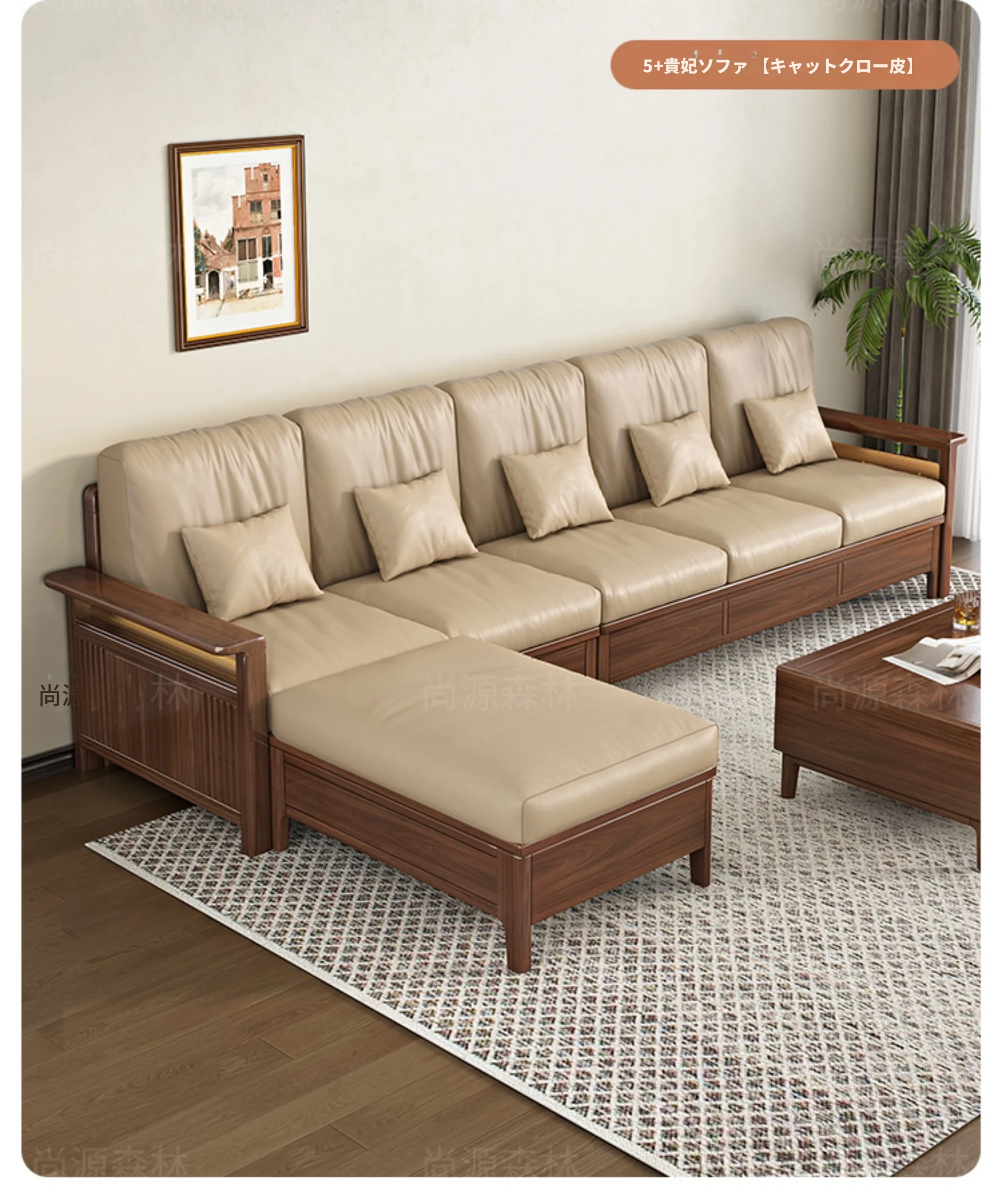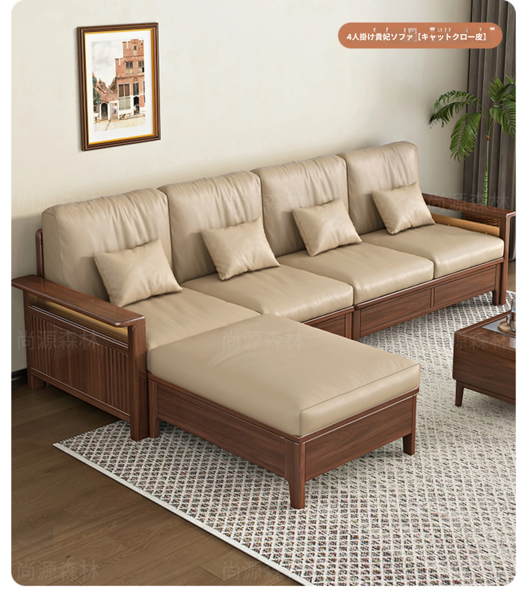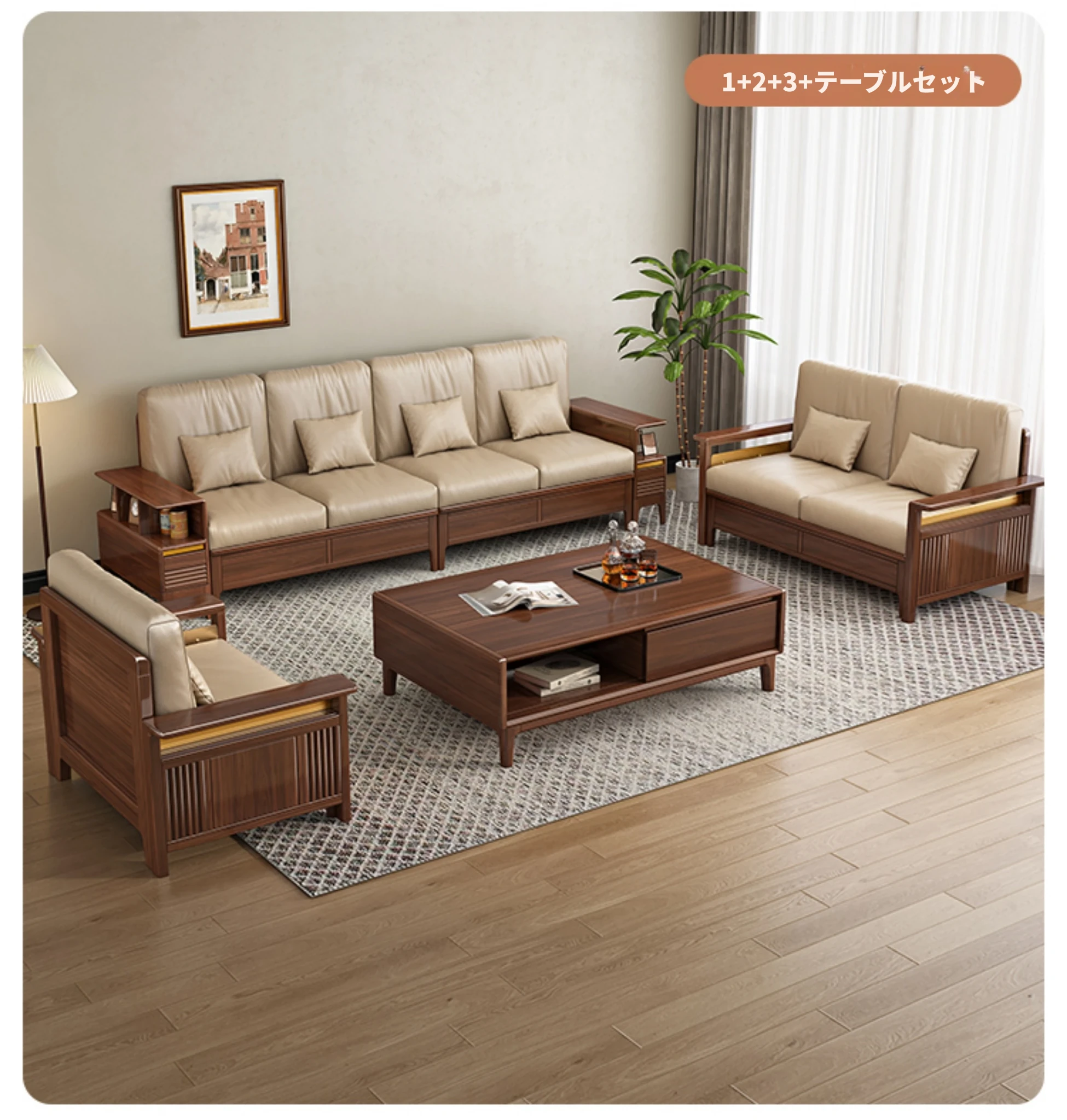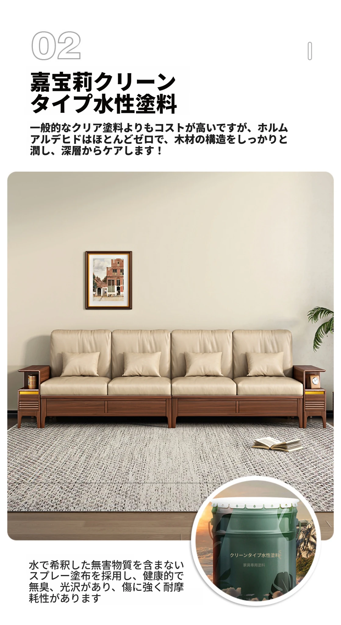 新中式デザインの高級ウォールナット無垢材ソファ - モダンでシンプル、冬夏両用、小さなスペースに最適!収納機能付きで、リビングをスタイリッシュに彩ります。