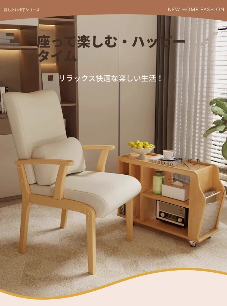 高品質な無垢材使用!モダン&シンプルな雲の形のリラックスチェア。高い背もたれで、老人をサポートし、心地良い座り心地を提供。リビングやバルコニーに最適な、スタイリッシュなアシストチェアです!