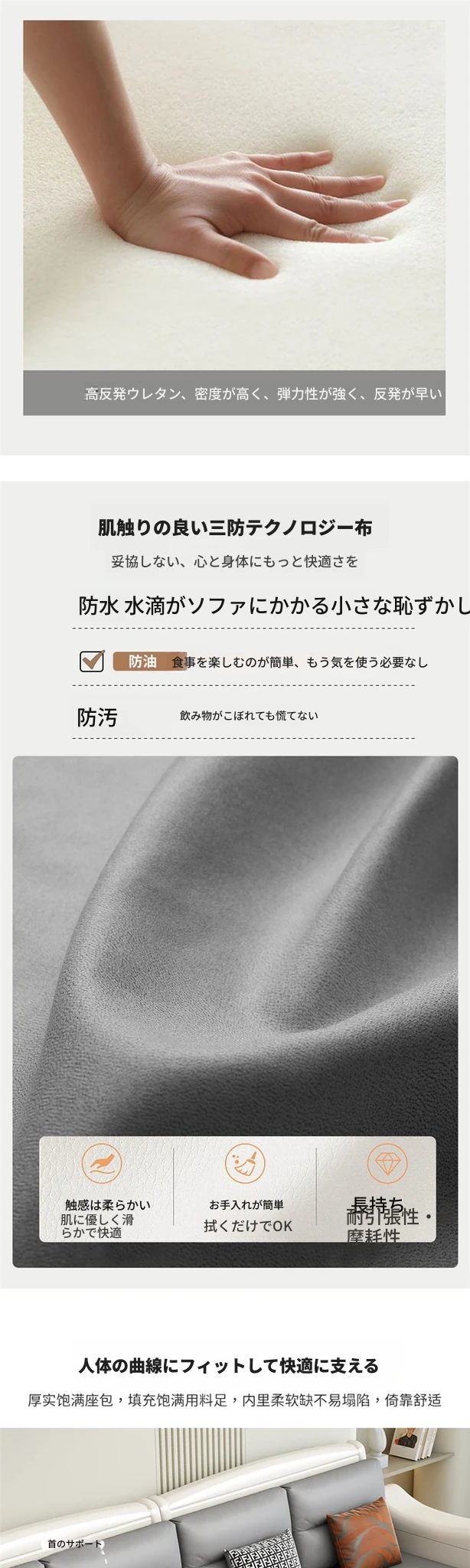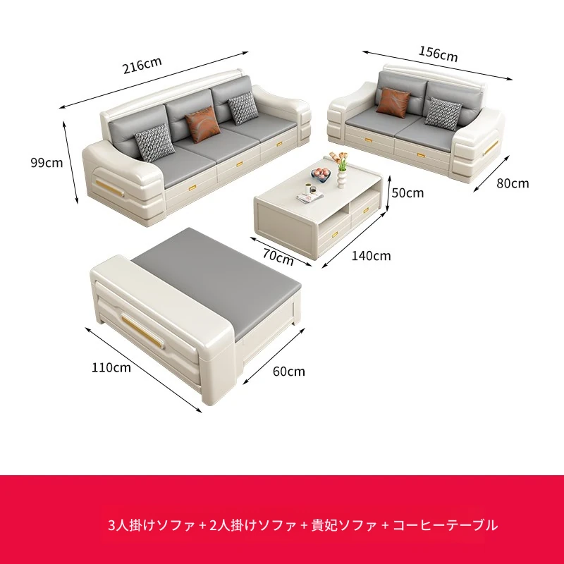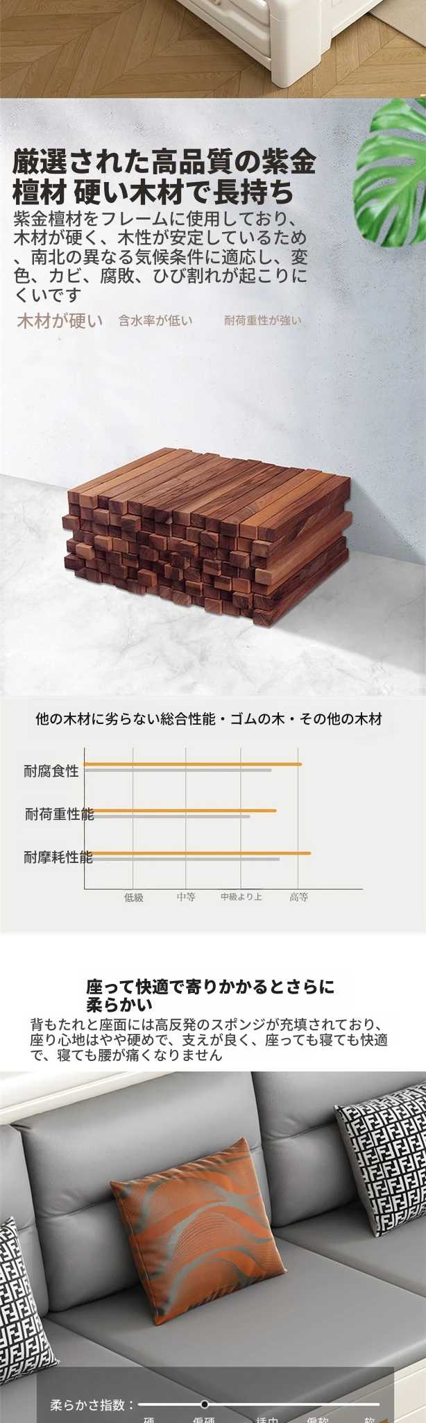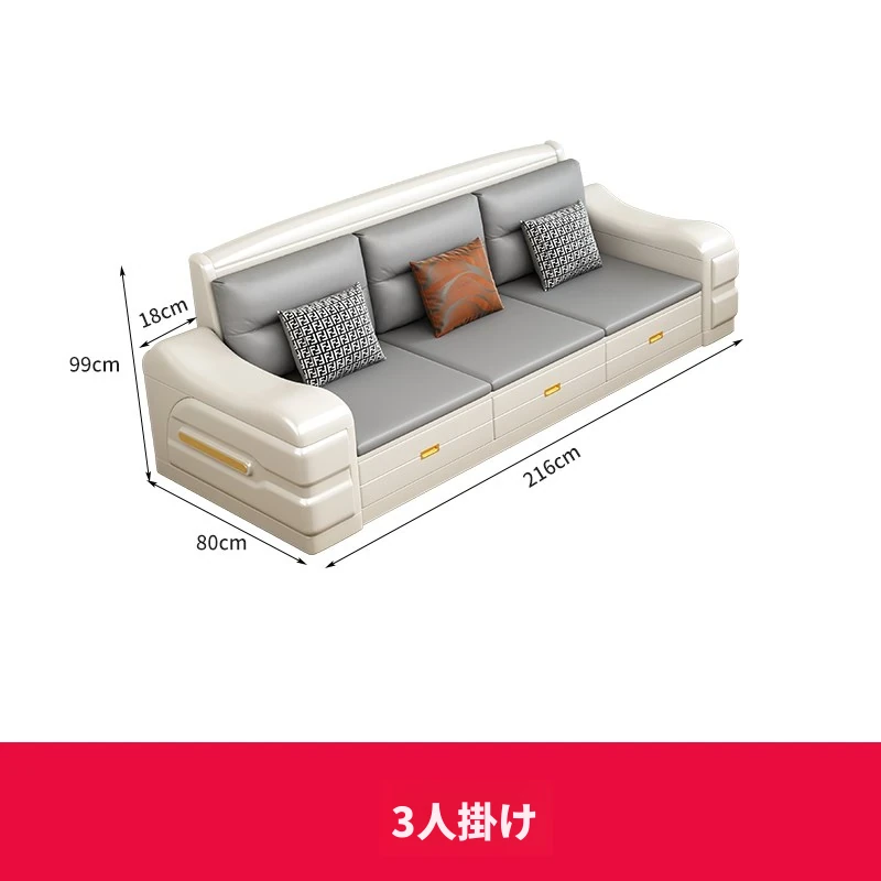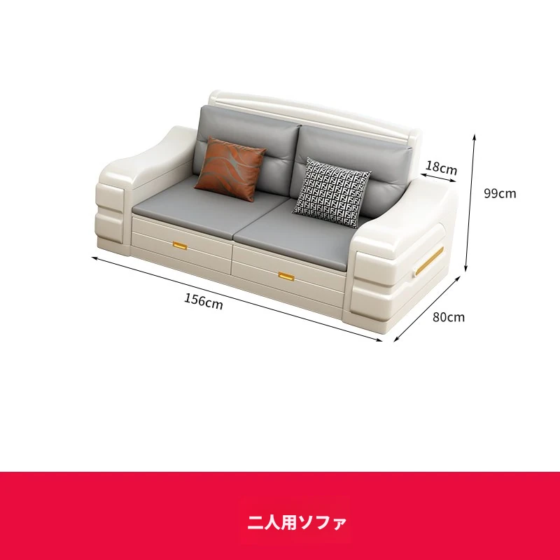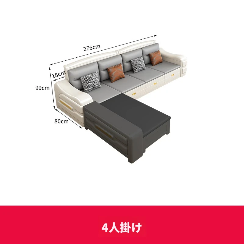 モダンデザインのウッドソファ|ホワイトファブリック|収納付き引き出し|冬夏両用のコーナーカウチ|リビングに最適なシンプルでスタイリッシュな一品!
