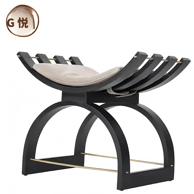 新中式スタイルの無垢材化粧台椅子 - モダンでシンプルなデザイン、リビングルームやホテルのロビー、別荘や民宿に最適なデザイナーズ家具。洗練された美しさと機能性を兼ね備えたアイテムです!