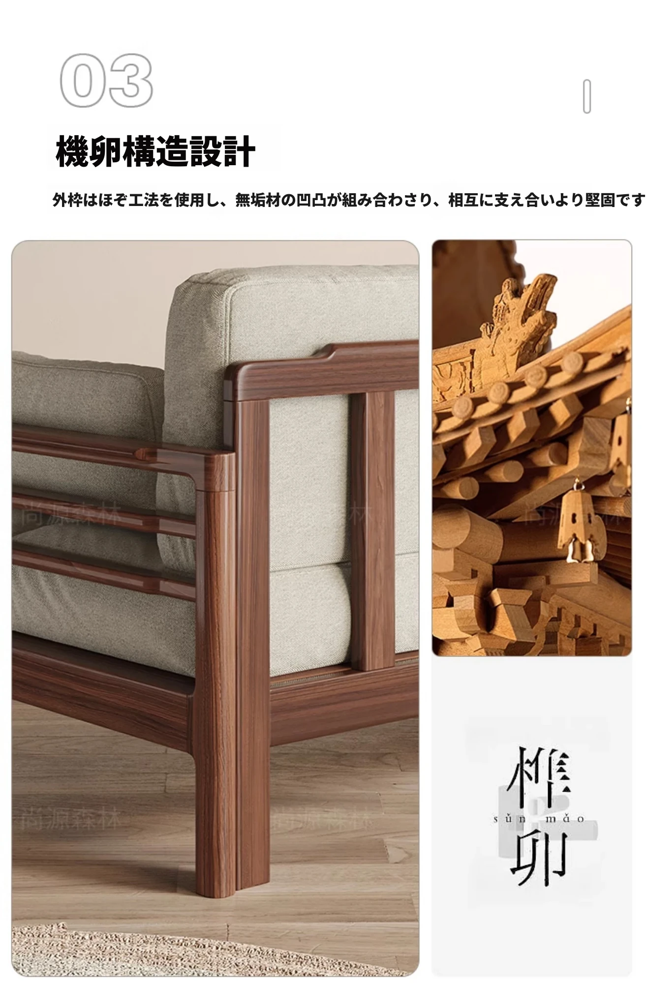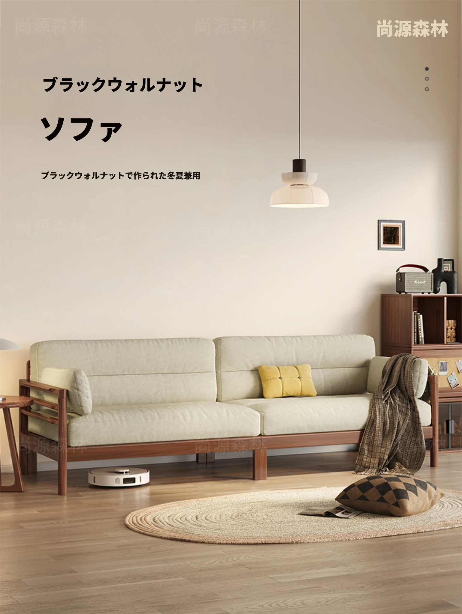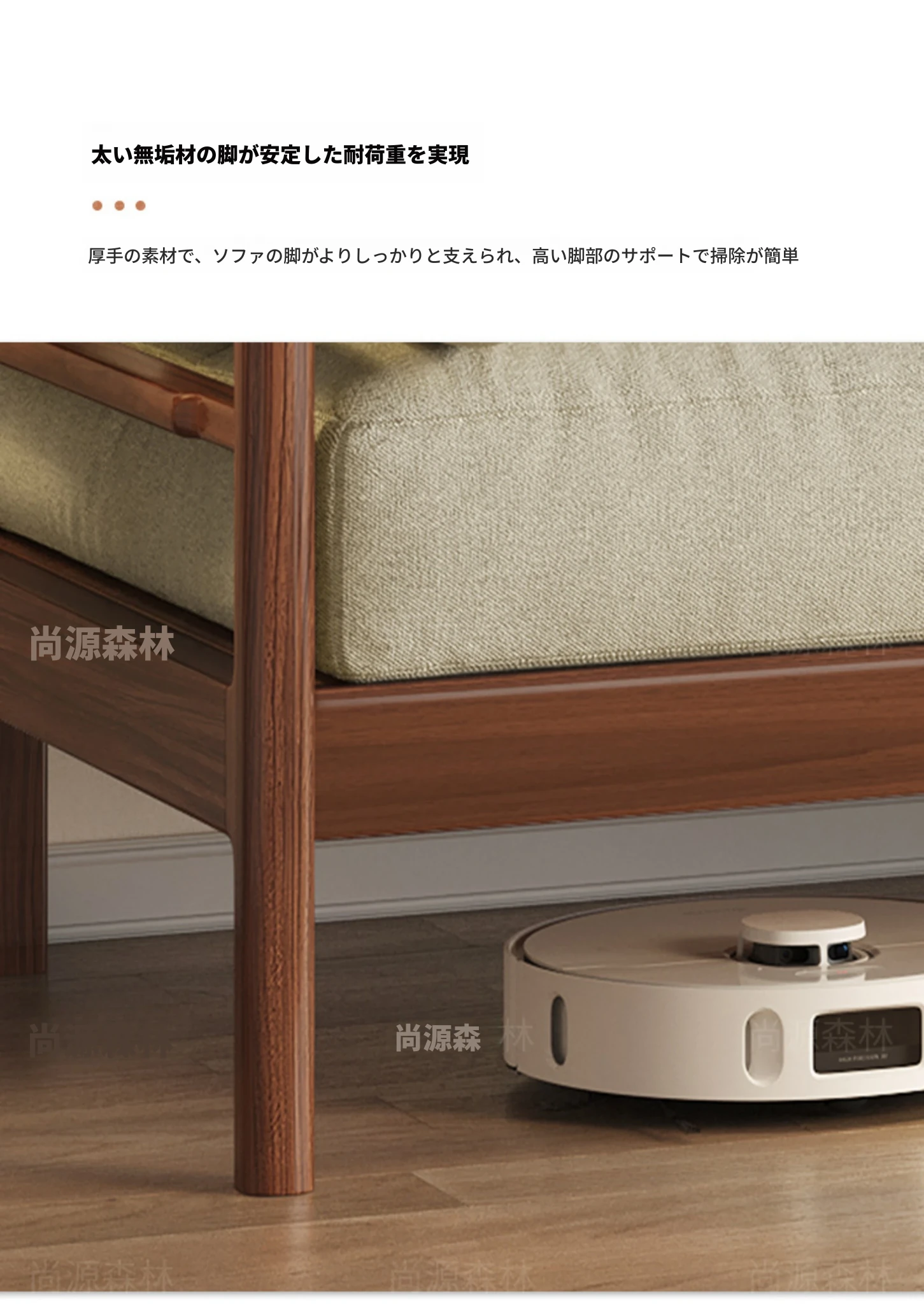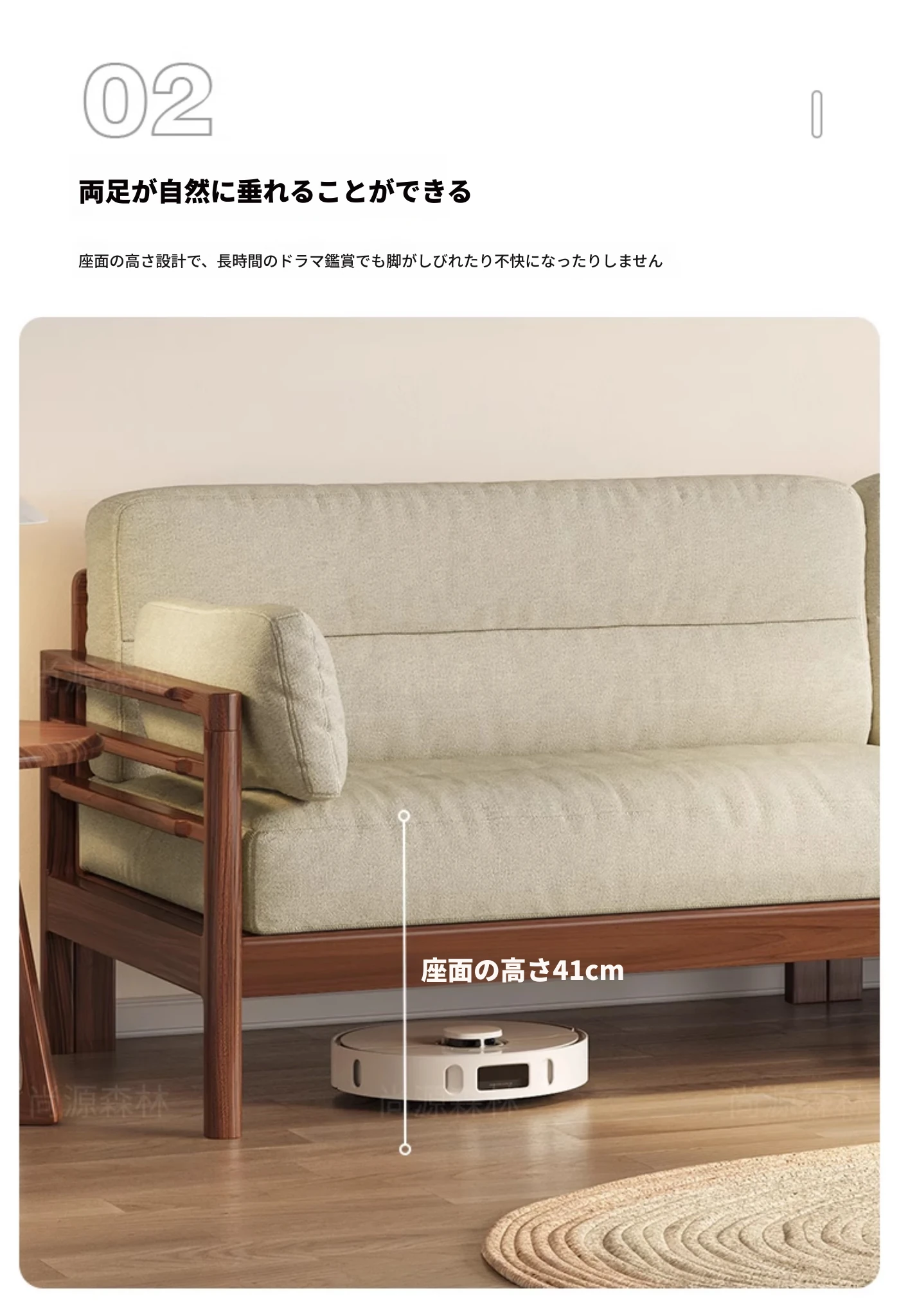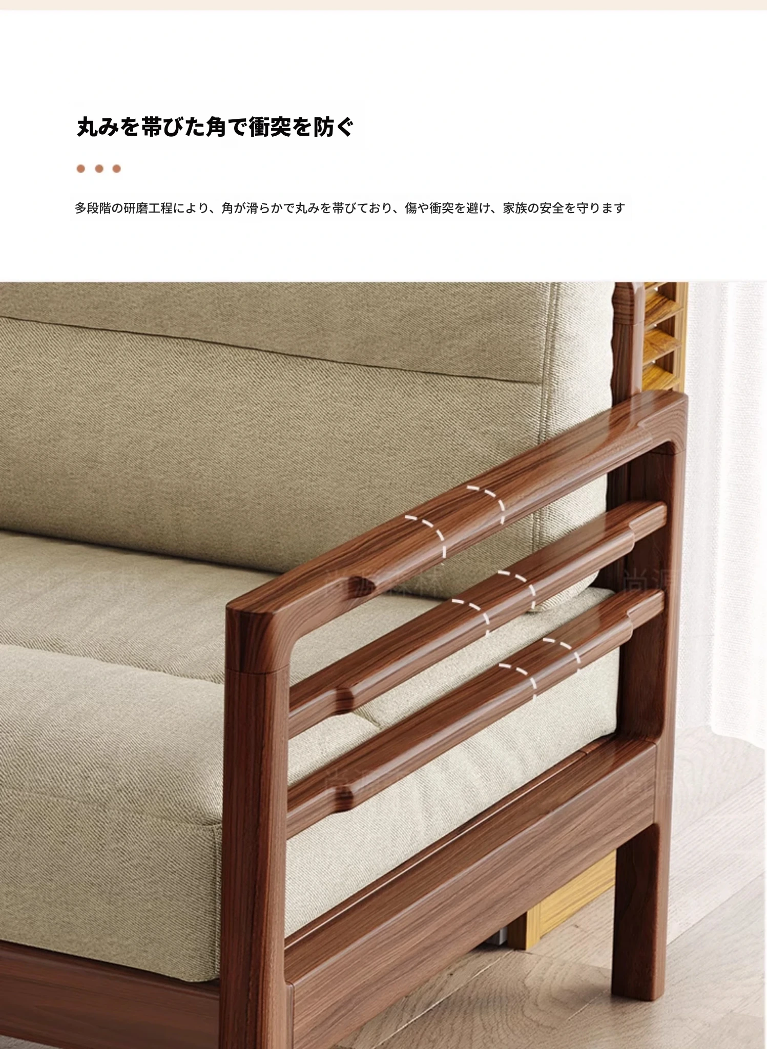 【ブラックウォールナット】1人用ソファ(コットン・リネン・クリームホワイト)