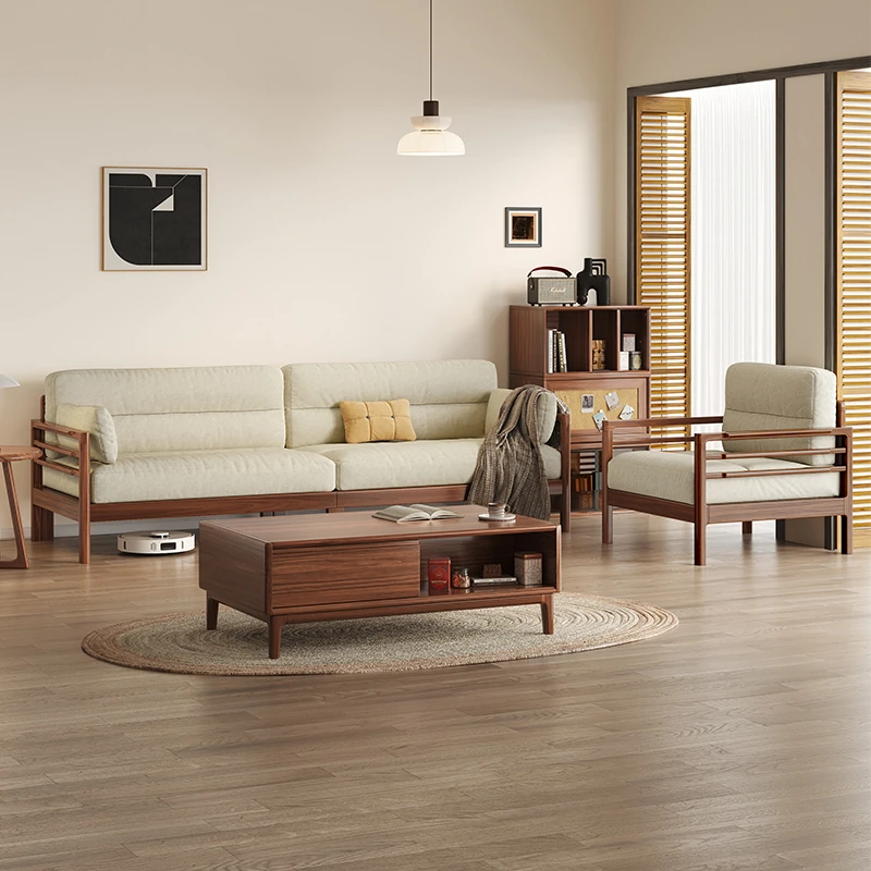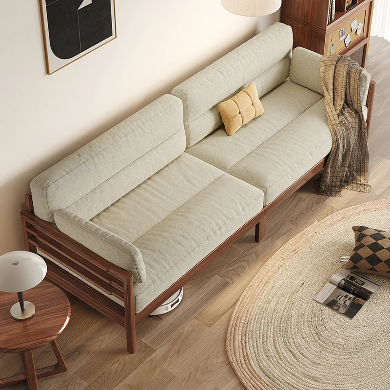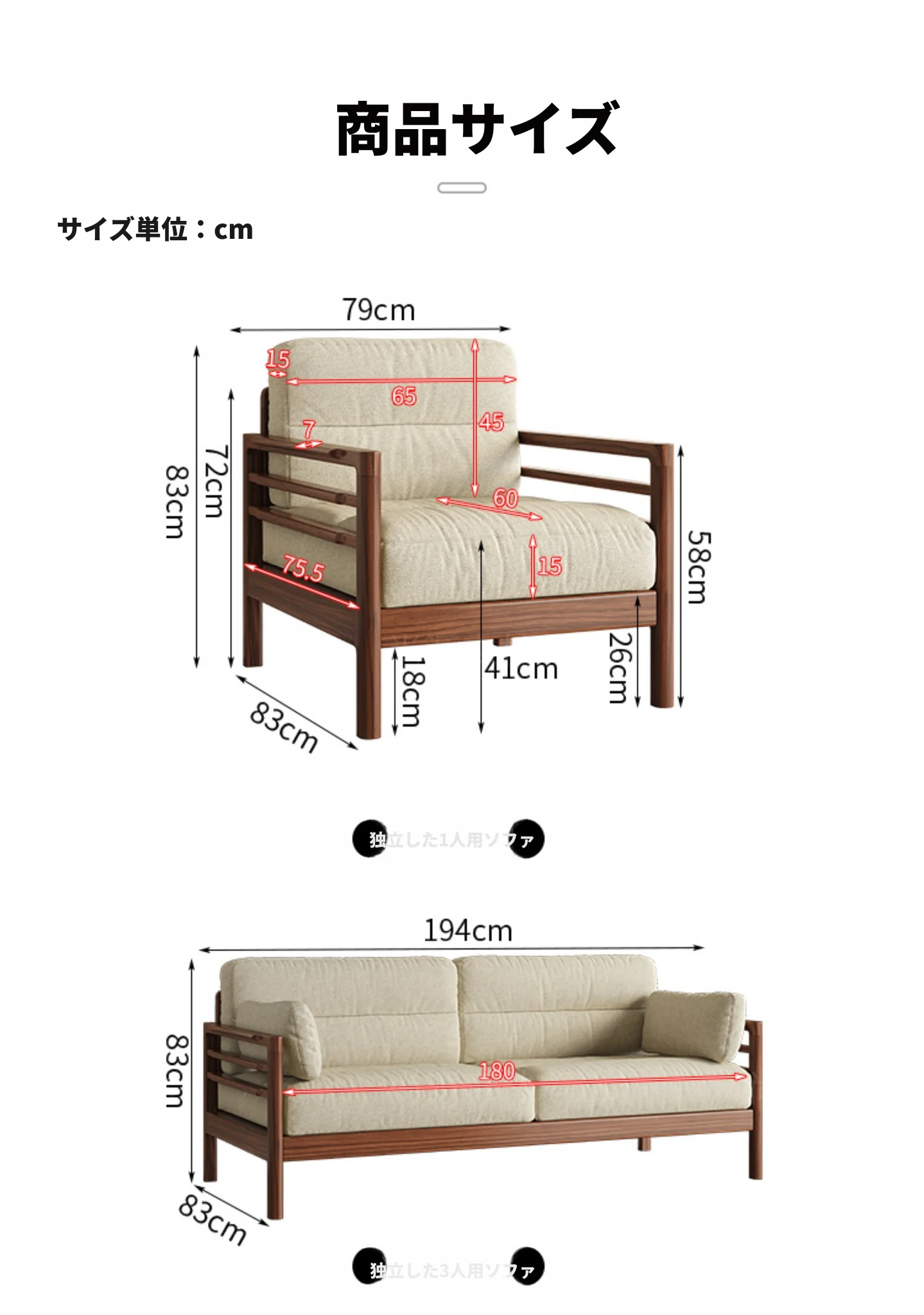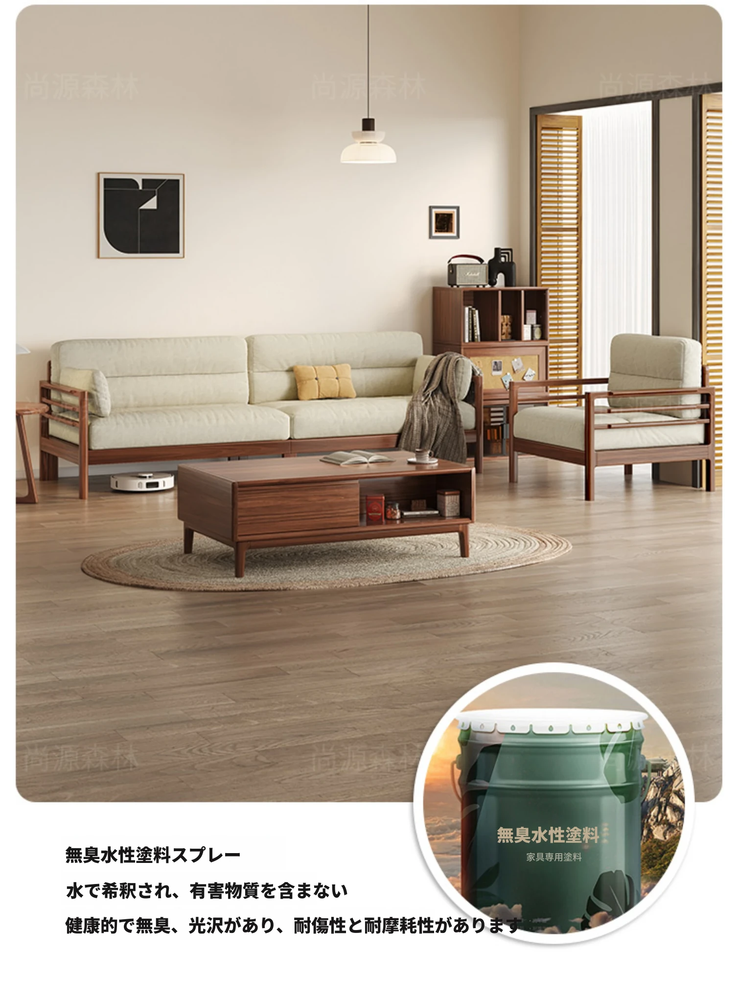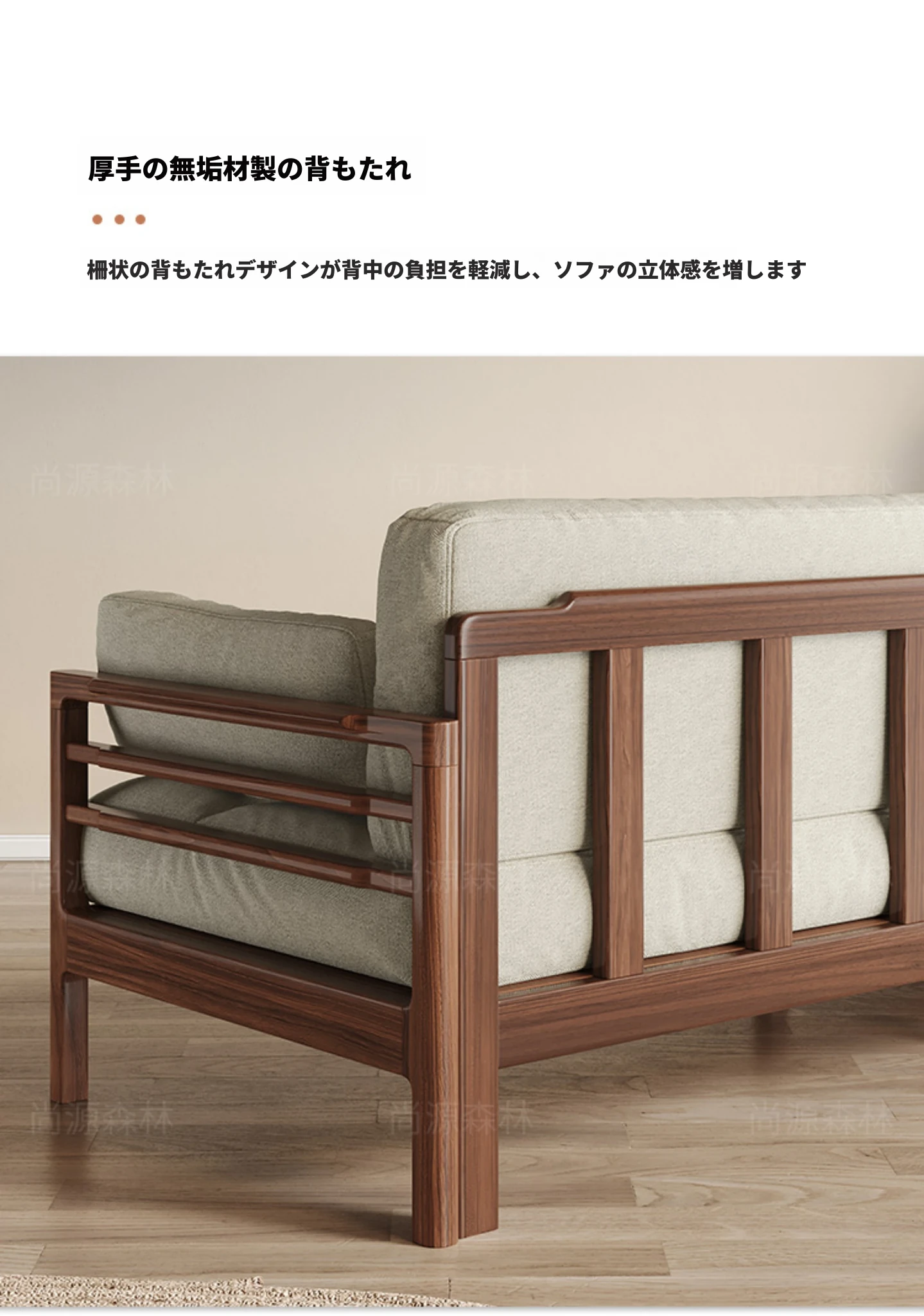 【ブラックウォールナット】1人用ソファ(コットン・リネン・クリームホワイト)