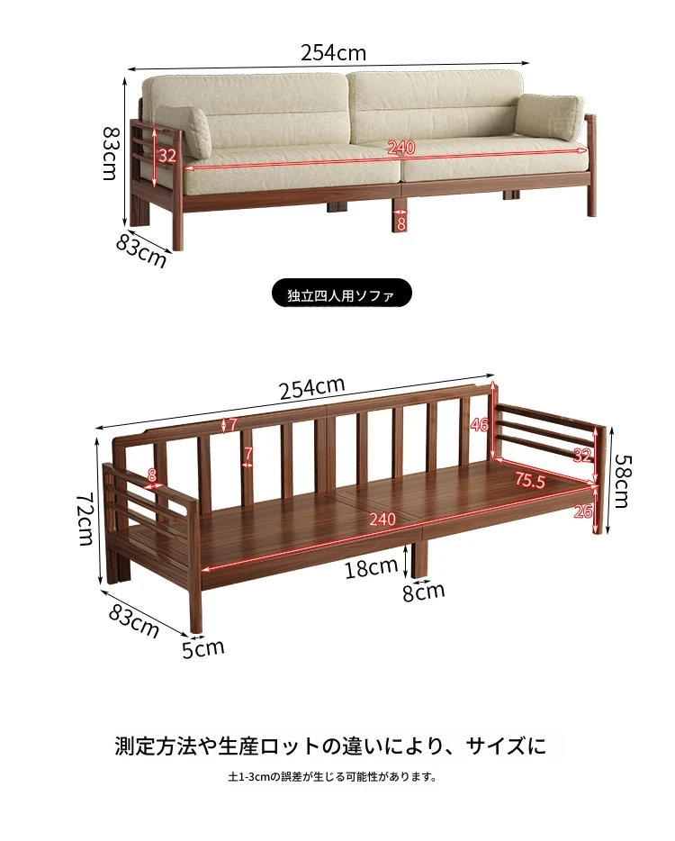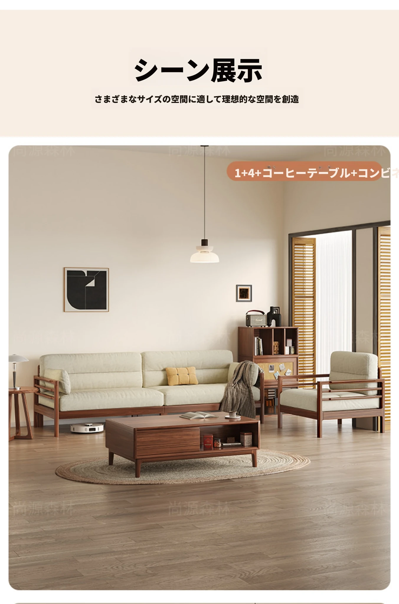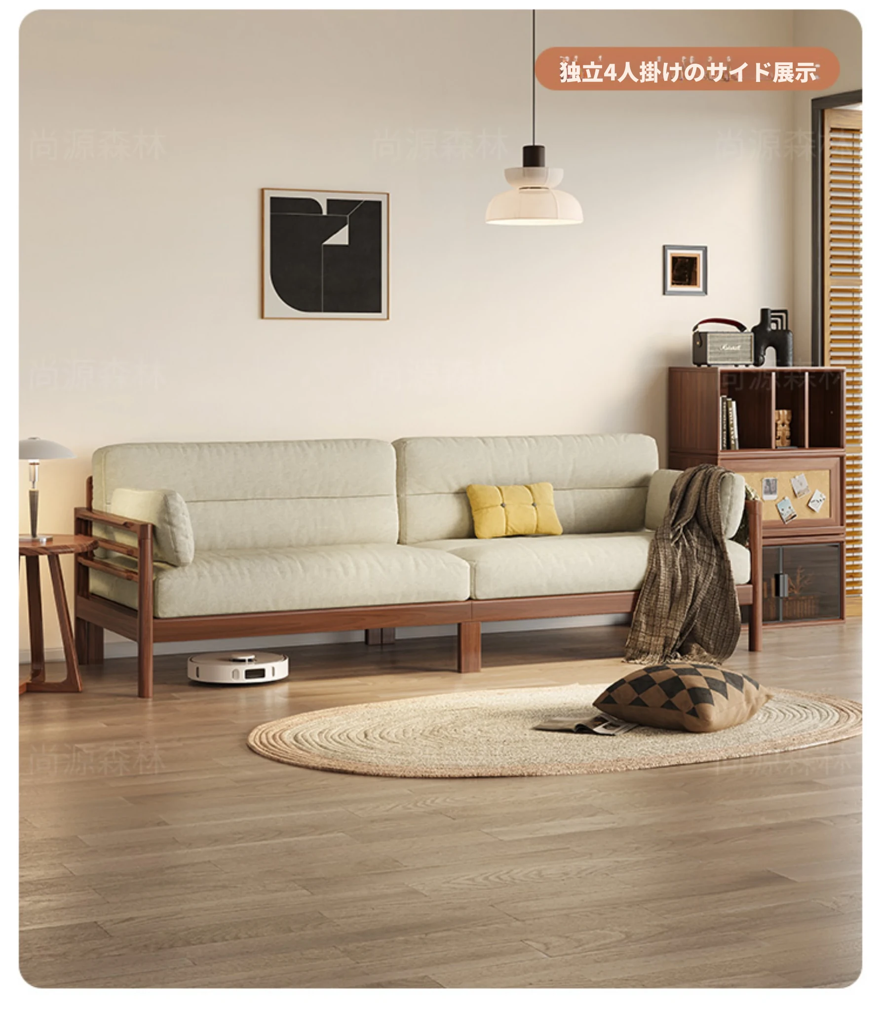 4人用ソファ(コットン・リネン・クリームホワイト)+アームレストクッション*2